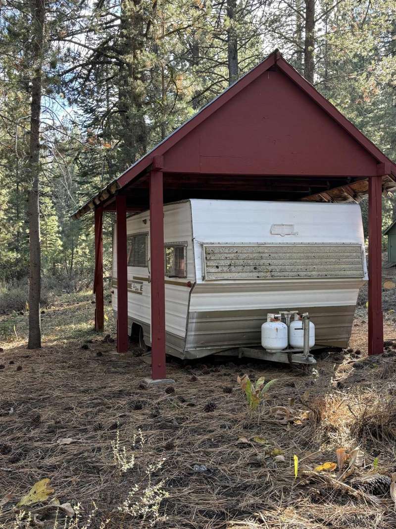 This is the perfect little get away spot for someone who enjoys camping and the outdoors. HOA plows the main Rd but you would need your own service if planning on staying during the winter. There are 2 Travel trailers on the property that are in good condition. Land is currently used as a vacation home. As per Nevada county there are no permanent structures allowed on the land. Buyer to confirm all regulations and uses with the county. The septic and well are shared with the lot to the right when facing the lot from Silverado way.
