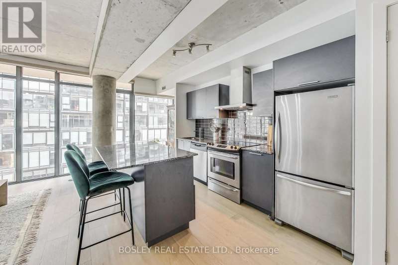 Welcome to Six50 King, an upscale, well-maintained building by FREED Developments in the vibrant heart of King West. This stylish loft features 9ft exposed concrete ceilings, creating a bright, spacious atmosphere. Offering approximately 695 sqft per floor plan, its thoughtfully designed and move-in-ready! The open-concept layout includes a modern kitchen with granite counters and stainless-steel appliances, perfect for entertaining. Located steps from everything King West has to offertop cafes, restaurants, nightlife, and entertainmentyou'll have the best of Toronto at your doorstep. The unit also includes parking and a locker for added convenience. Whether you're an urban professional or looking for a trendy city pied-à-terre, this loft combines style, functionality, and prime location. Dont miss this exceptional opportunity to live in one of Torontos hottest neighbourhoods!