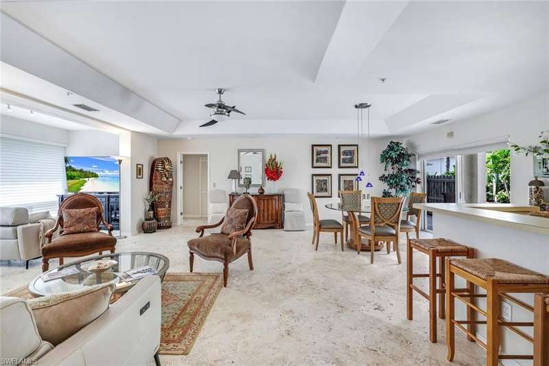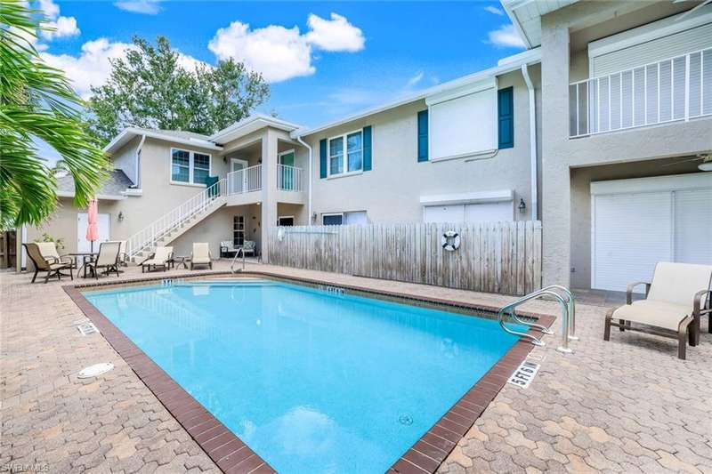 WALKING DISTANCE TO BEACH, 5TH AVE AND 3RD ST S!!! This 2-bedroom + den, 2-bath ground-floor condo is perfectly located in the heart of Olde Naples, just 2.5 blocks from the stunning 8th Avenue beach. You ll love the convenience of being just 3 blocks from 5th Avenue South and the 3rd Street South shopping and dining districts. With this prime location, you re truly within walking distance of everything Naples has to offer making a car optional for your stay. Part of a low-density property with only 4 units, this condo offers a peaceful and private retreat. The beautifully landscaped pool area, complete with a privacy fence, is perfect for enjoying sunny afternoons, poolside lunches, or evening drinks under the stars. Inside, you ll find a light-filled space with tasteful furnishings and an inviting layout, now featuring brand-new sofas for an updated and modern look. The open living and dining area leads to a fully equipped kitchen, making it easy to prepare meals and entertain. Th