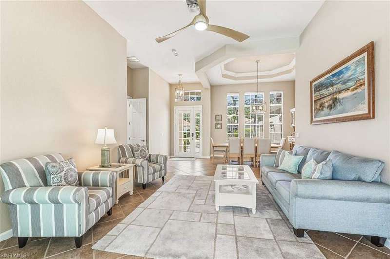 Immaculate and Move-In Ready! Discover this beautifully maintained 3-bedroom, 2-bath single-family home showcasing a variety of recent upgrades. Features include a new roof, impact-resistant sliding doors, newer stainless steel appliances, updated ceiling fans, new gutters, renovated bathrooms, and a rescreened pool cage. This property has been meticulously cared for and is presented in excellent condition, offering both comfort and elegance. The formal dining and living areas are combined with sliding doors leading to an outdoor covered lanai. The spacious family room is filled with natural light, highlighted by expansive windows that overlook the home's private heated pool and a relaxing lake view. The fully equipped kitchen offers the ideal space for culinary creativity, featuring modern appliances, an island, a breakfast bar, a walk-in pantry, and beautiful Quartz countertops. A well-designed split bedroom layout ensures privacy and comfort for both family members and guests. The generous primary suite boasts a stylish tray ceiling, a walk-in closet, and a beautifully finished, luxurious master bath complete with a soaking tub and separate shower, providing the perfect retreat for relaxation. Enjoy year-round relaxation on the expansive lanai, complete with a heated pool, newly installed lighting, and a screened pool cage. Additionally, enjoy peace of mind with hurricane shutters on all doors and windows, providing comfort and security. Residents of the Hawthorne community enjoy excellent amenities, including two pools, spas, tennis courts, pickleball, a fitness center, and inviting community rooms. The Hawthorne, a gated community, is perfectly located in the heart of Bonita Springs, just minutes from River Park, restaurants, the Shangri-La Resort, the famous Wonder Gardens, Coconut Shopping, beaches, and only 20 minutes to the International Airport. Don't miss this incredible opportunity to own a turnkey, beautiful pool home in sunny Florida!