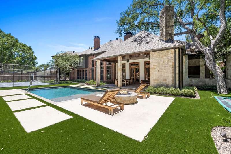 **PRICE IMPROVEMENT** This home has been updated from head to toe. New hardwood floors throughout, paint, countertops, designer light fixtures. A brand new kitchen including Taj Mahal quartzite, custom copper hood, new appliances, and new cabinets. Primary bath completely updated into spa like bath including steam shower and infrared sauna. 1 study or lounge downstairs and second study or library upstairs. Even with all the amazing updates inside, the backyard is the show stopper! New pool, firepit, fireplace, spool, outdoor grill, in ground trampoline, AND sport court. There is no other property like this!