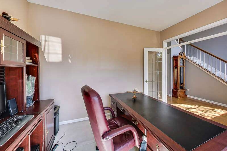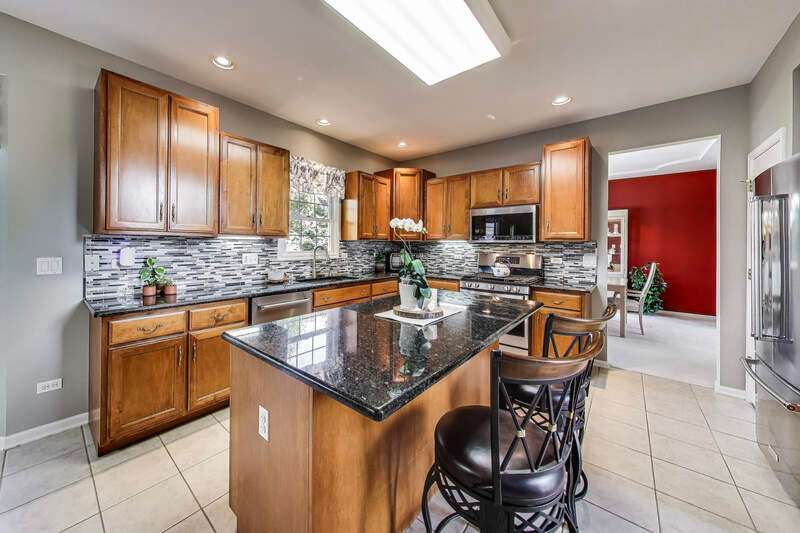 Step into this impressive 4-bedroom, 2.5-bath meticulously maintained home, where soaring 9-foot ceilings and a striking two-story foyer create an immediate sense of elegance and space. With just over 3100 sq ft above grade the main level is designed for both comfort and style, showcasing a bright living room with a picturesque bay window, a formal dining room ideal for entertaining, and a versatile office or den to suit your needs. At the heart of the home, the chef's kitchen shines with stainless steel appliances, granite countertops, a coveted pantry, and a spacious center island perfect for meal prep or casual seating. A separate dining nook offers a cozy setting for everyday meals, while the open flow into the vaulted family room-with skylights streaming in natural light and views of the tree-lined backyard-creates the perfect space to gather. Upstairs, retreat to four generously sized bedrooms, including a luxurious primary suite with abundant closet space and a private bath designed for relaxation. The 2.5-car attached garage provides convenience and storage, while the unfinished basement offers endless opportunities for customization. Ideally located with easy access to Hwy 55, this home beautifully blends style, functionality, and comfort-perfect for today's modern lifestyle.Roof: 15 years, HVAC: 10 years Appliances: 2-3 years. No Saturday showings. No exceptions.