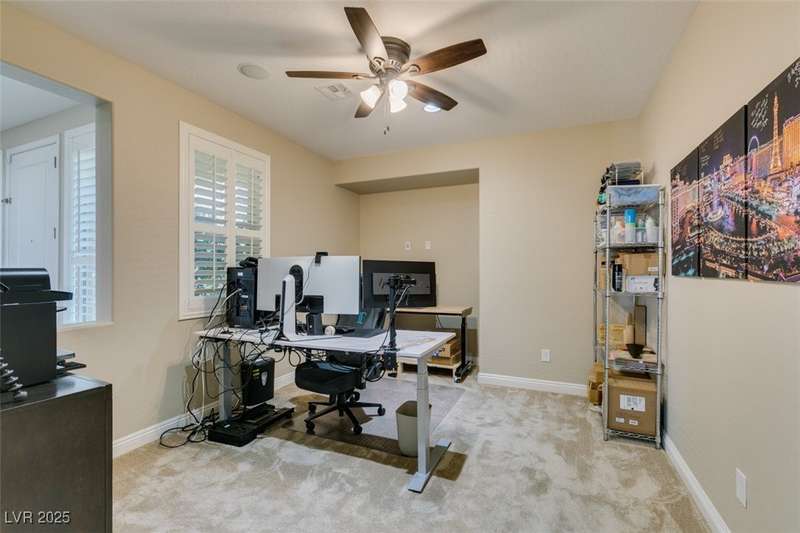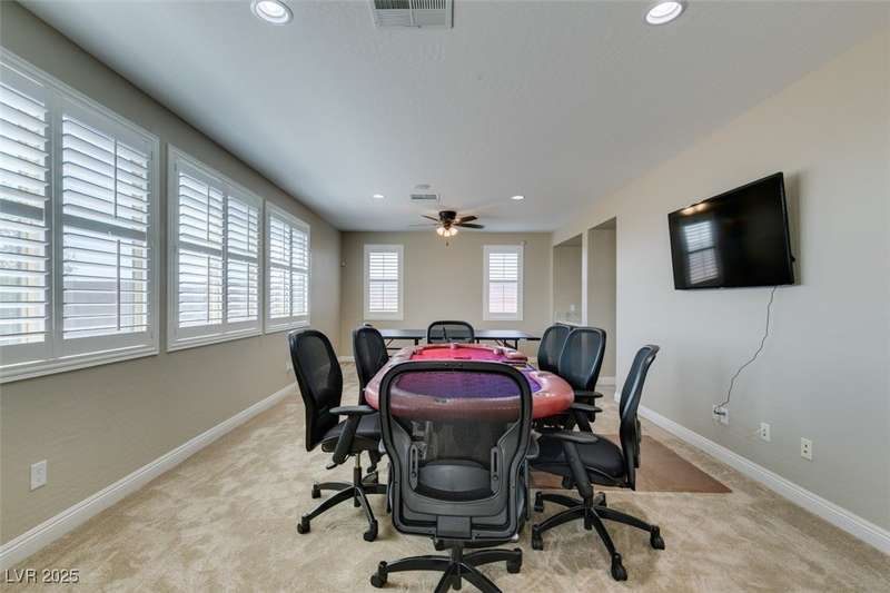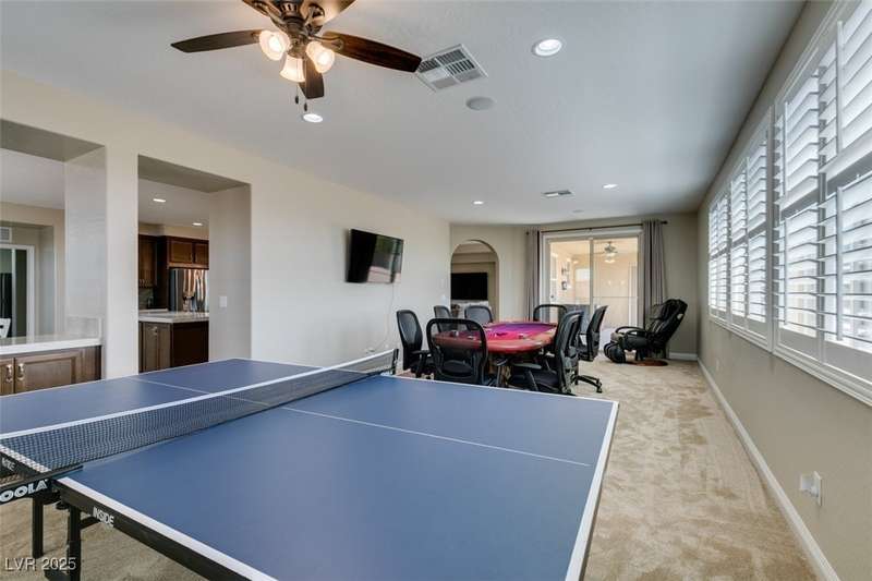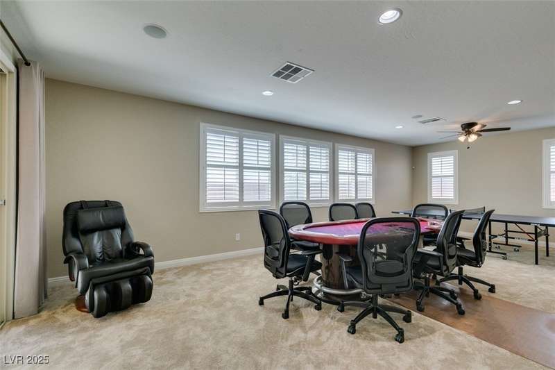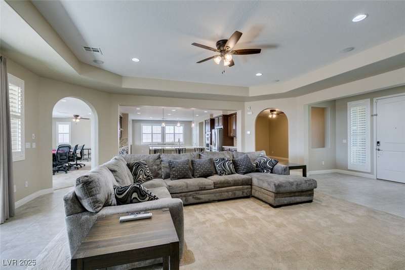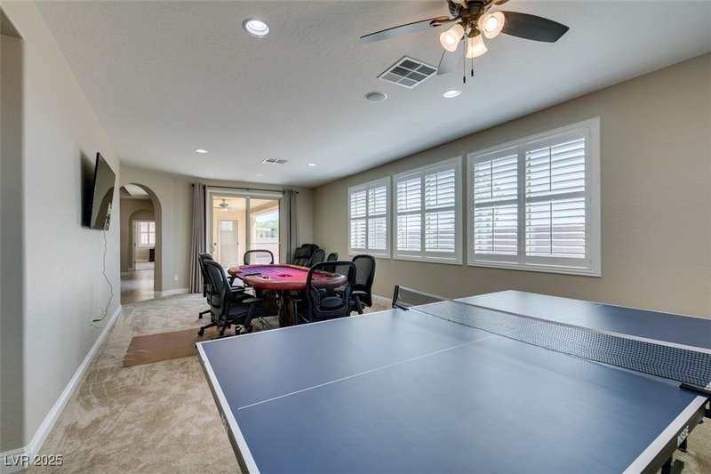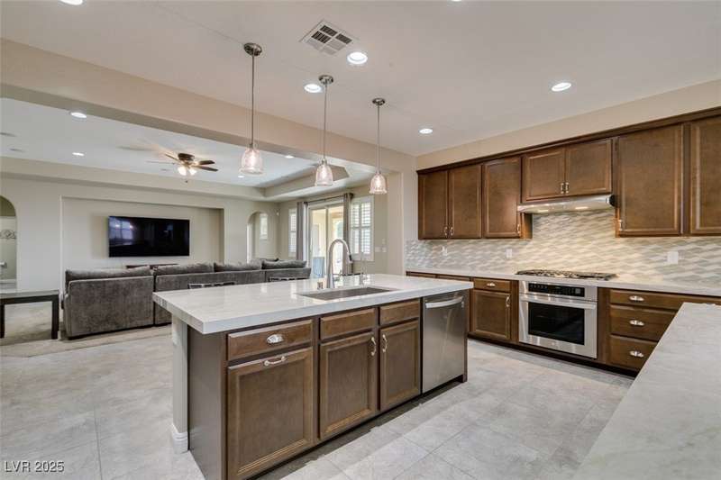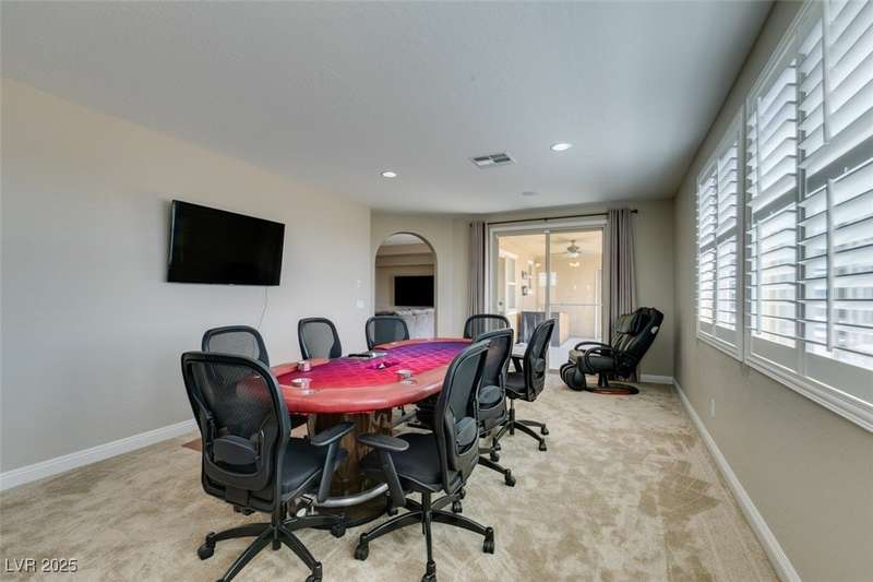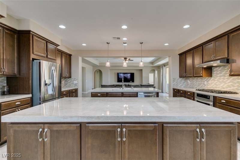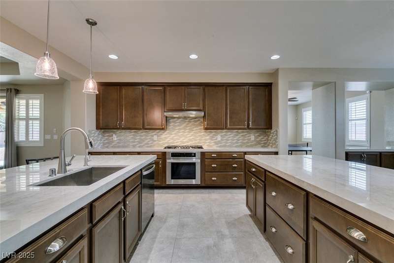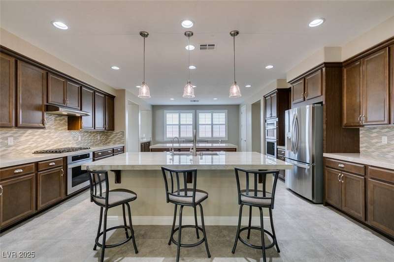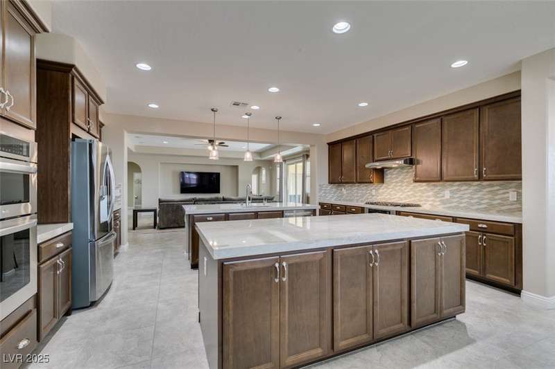 CHEF'S KITCHEN WITH DOUBLE ISLANDS | CUL-DE-SAC | SINGLE STORY | Space, style, and comfort all on a generous 13,939 sq ft lot. With 3,888 sq ft of thoughtfully designed living space, this residence is perfect for both everyday living and entertaining. Enjoy plush carpeting (2022) and plantation shutters throughout, enhancing the home’s warm, inviting feel. The chef’s kitchen—fully renovated in 2022—features double islands, stainless steel appliances, a walk-in pantry, and a breakfast nook. A spacious family/game room provides plenty of options, while the covered patio and expansive backyard create a private outdoor retreat. Additional features include a dedicated home office or den, formal dining room, and separated living areas that offer a balance of openness and privacy. Ideally located near Durango Station Casino and premier shopping and dining. A rare opportunity to own a move-in ready home!