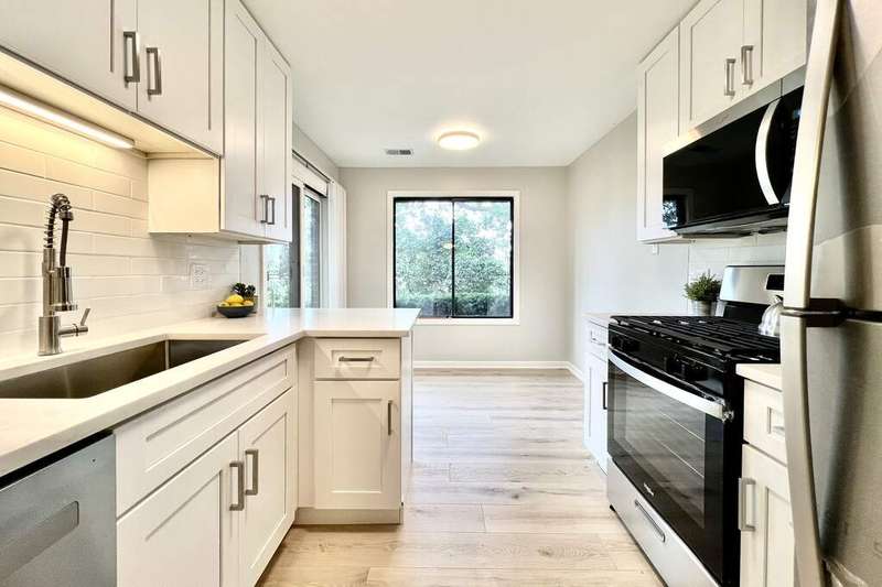 Coming Soon! Tastefully Remodeled 2 BR / 2 Bath End-Unit Coach home in Kingsbrooke! No Stairs on this Wide open floor plan beginning with a Nice Sized Foyer, separate Dining Room & Living Room with 8 Foot Sliding Glass Door that leads to Large private patio & huge outdoor space. Fully Gutted Kitchen includes All Solid 42" White Shaker Cabinetry, Quartz Counter Tops, All Stainless steel appliances, Vinyl Plank Floors, Lighting, Breakfast Bar & Seating Area with Sliding glass door for Patio / Grilling Access. Fully Remodeled Bath with White Shaker Vanity, Quartz Countertop, Subway Tile Tub Surround and Porcelain Tile Flooring. Newly Carpeted Primary Suite features huge En-Suite offering Vinyl Plank Floors, Grey Vanity with Quartz Counter Tops, Walk-in closet, and Ceramic Tile Stand-Up Shower. Good Sized 2nd Bedroom with Ample Closet Space. Laundry in unit for ultimate convenience, Attached garage for added security, New Hot Water Heater & Recently Upgraded HVAC to add the the list.