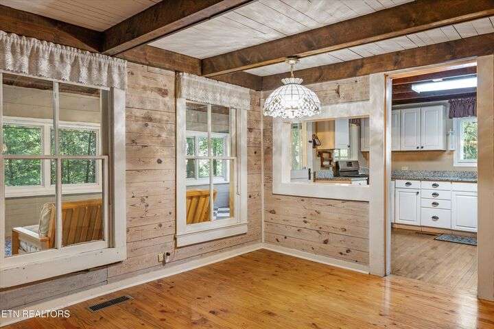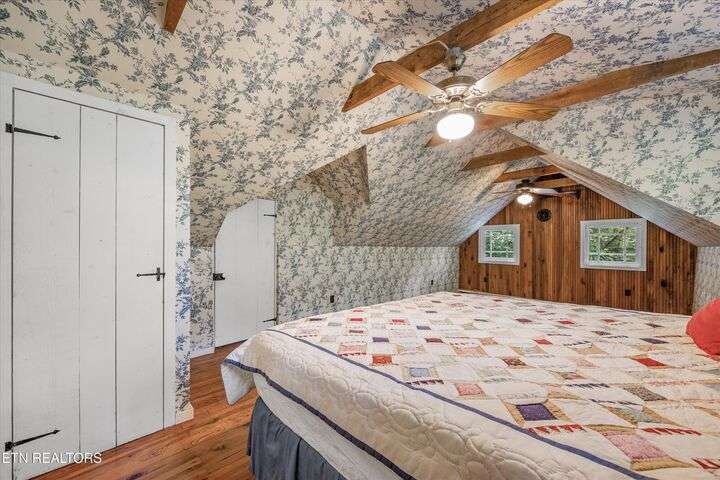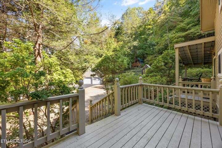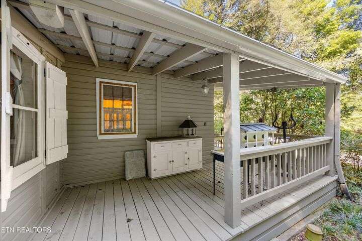 Step into a piece of East Tennessee history with this beautifully preserved property once owned by the Tipton family, one of the region's earliest and most influential settlers. Nestled on just over two private acres surrounded by mature trees, this inviting two-bedroom, two-bath cabin-style home offers a unique blend of rustic character and modern comfort—perfect for a family getaway, peaceful full-time residence, or distinctive short-term rental. The home features a cozy living room with fireplace, a functional kitchen with newer cabinetry and countertops, and a primary suite with its own full bath. Timeless details, including original flooring, antique light fixtures, and warm wood accents, give this home a sense of authenticity that's hard to find. Outside, the property invites you to slow down and enjoy nature. Meandering garden paths, two charming she-sheds for gardening or hobbies, and a spacious patio with a large outdoor fireplace create the ideal setting for entertaining or quiet reflection. The detached two-car garage with loft provides additional space for storage or a workshop, all designed to complement the home's character. Located in Townsend, just minutes from Pigeon Forge, Gatlinburg, and the Great Smoky Mountains, this property offers both tranquility and convenience. Experience the charm of historic roots paired with the serenity of modern mountain living—schedule your private showing today. PRICED BELOW APPRAISAL!