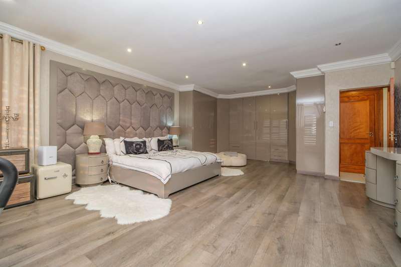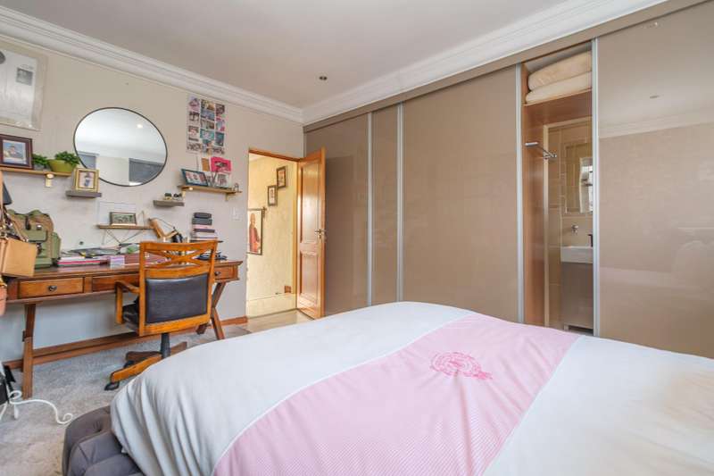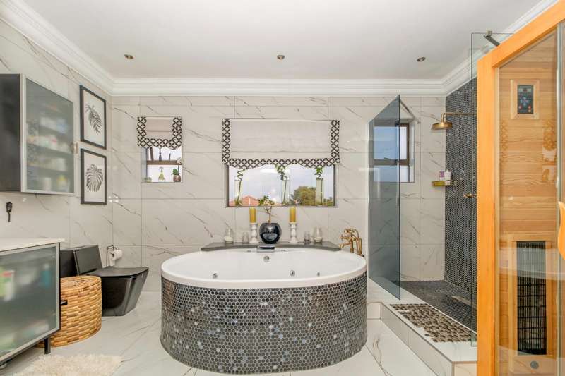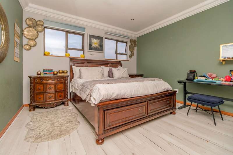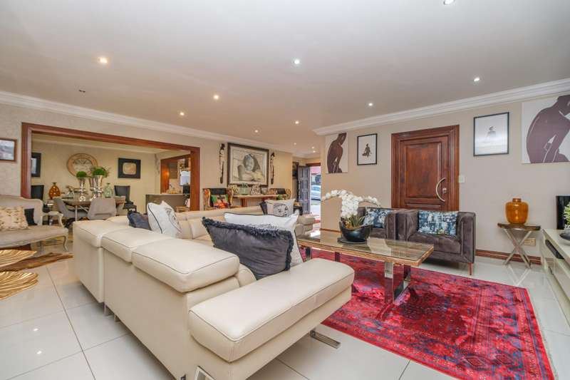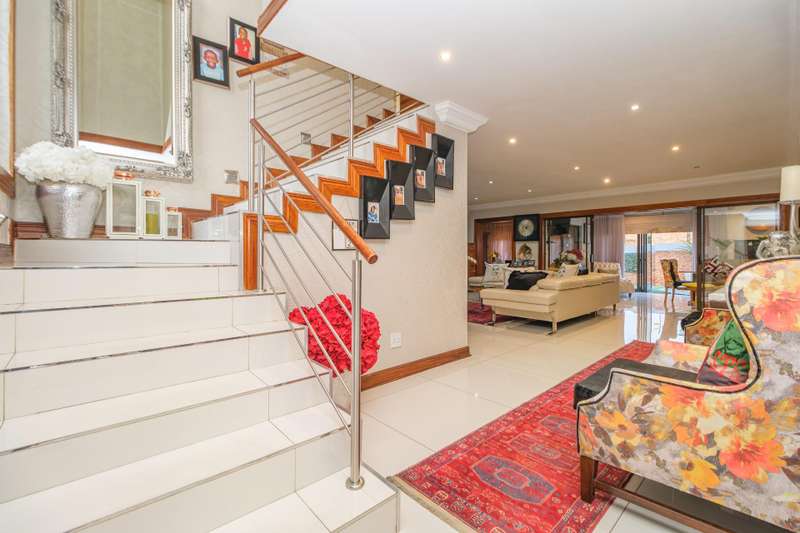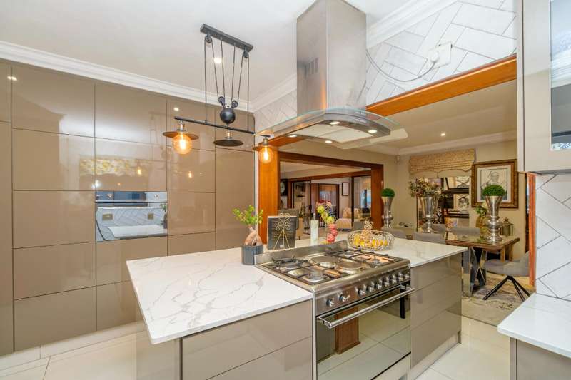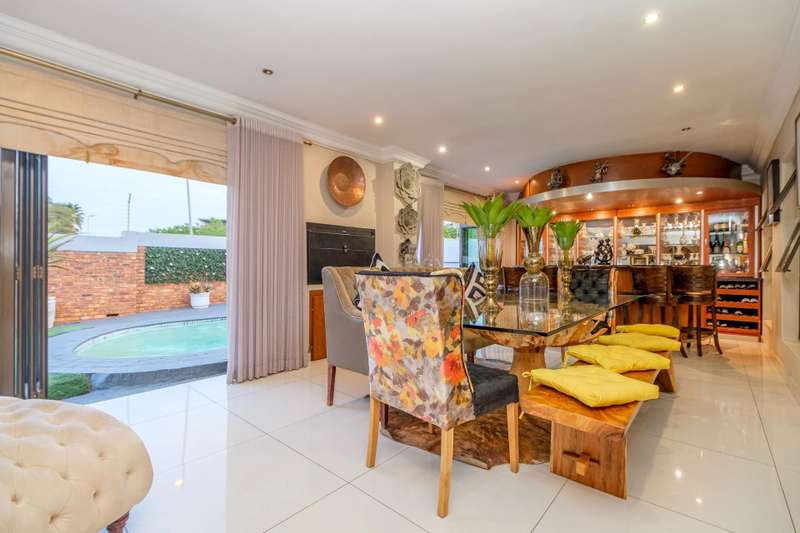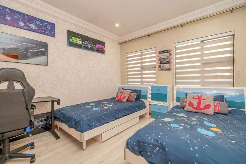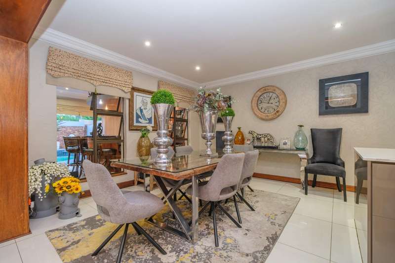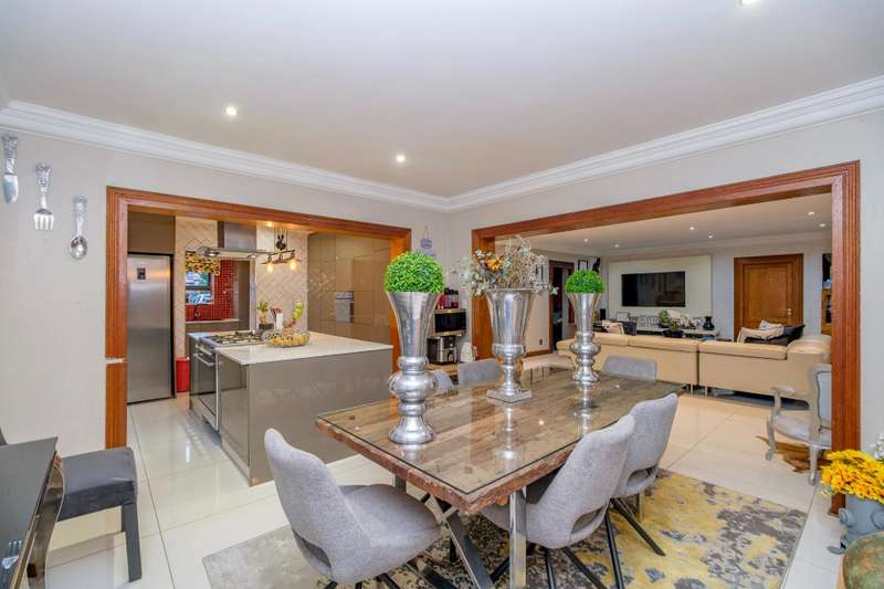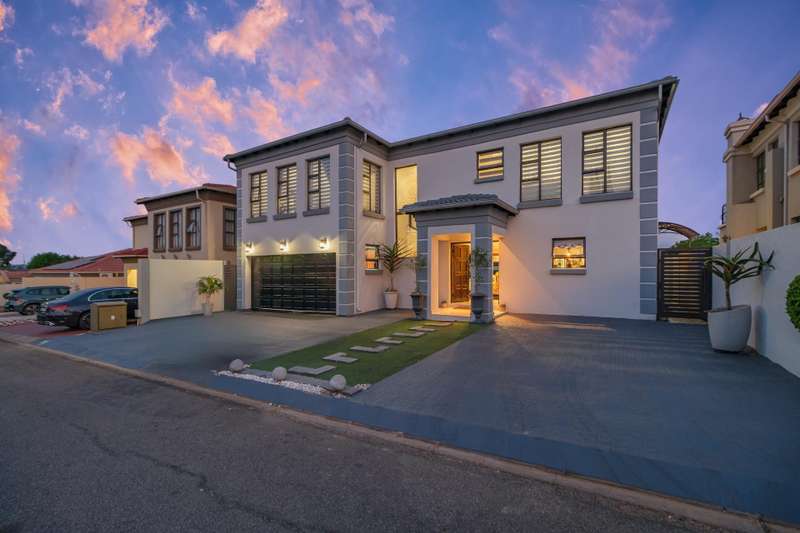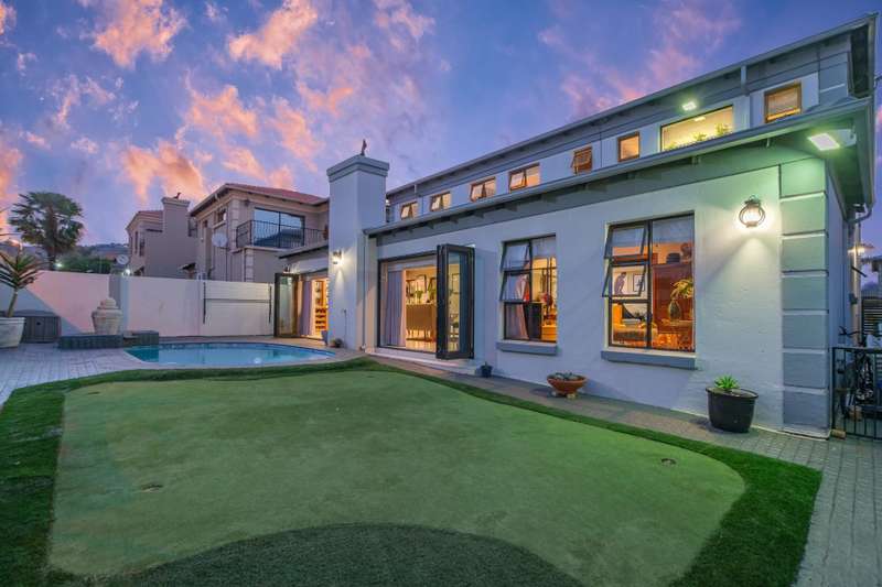 Welcome to this immaculate double-storey home in the sought-after Willowbrook Estate, offering the perfect balance of modern luxury and family comfort. This spacious residence presents five well-appointed bedrooms. The main suite includes a full en suite bathroom, two bedrooms share a full bathroom, a third bedroom has its own en suite with shower and toilet, and a convenient guest suite is located downstairs, also complete with an en suite. The ground floor is designed for effortless living and entertaining, beginning with a welcoming entrance hall that flows into an open plan TV room, a separate lounge and a dining area. The modern kitchen, complemented by a separate scullery, is ideal for family cooking and gatherings. The living spaces extend to an enclosed patio with a built-in braai and bar, where stacking doors open out to the garden. This outdoor haven features a sparkling swimming pool and a putting green, perfect for golf enthusiasts and relaxed weekends at home. Additional highlights include a tiled double garage with direct access into the home, extra parking for three vehicles, and a solar system for energy efficiency. Combining style, comfort and convenience, this home is an excellent choice for families seeking secure estate living.