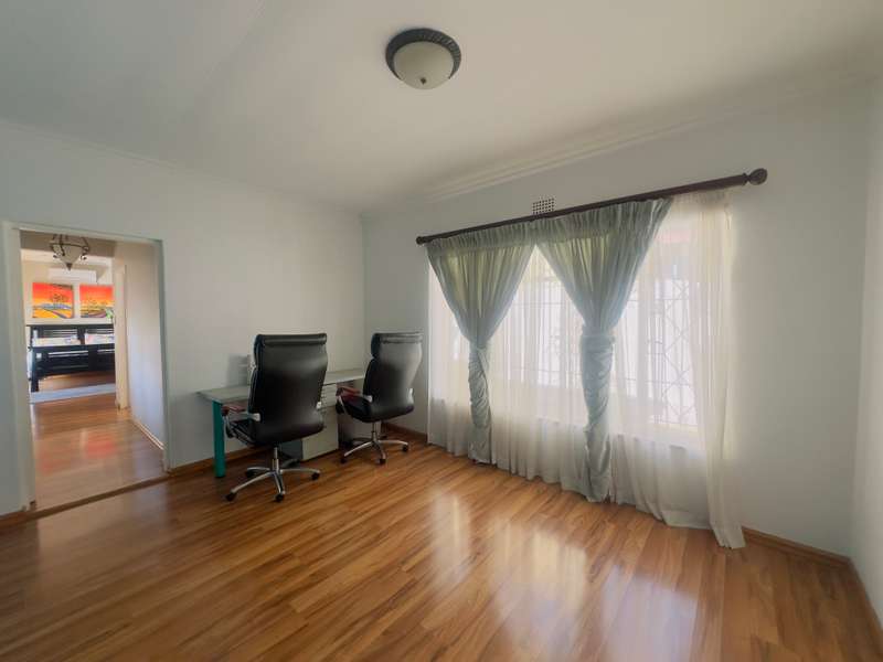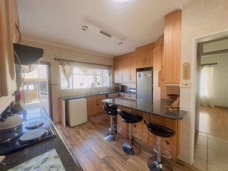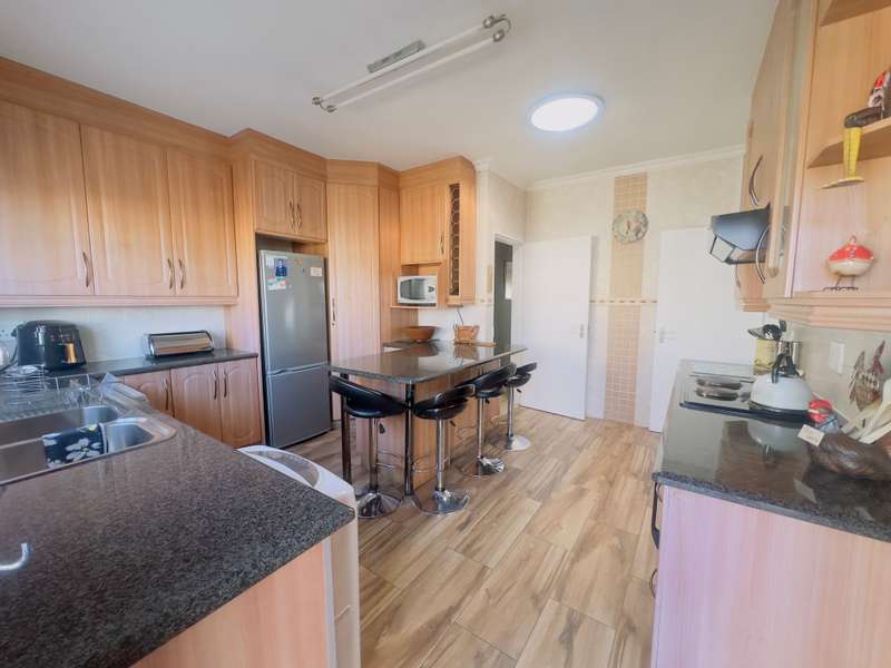 This well-cared-for and generously sized home is located in the highly sought-after suburb of South Crest. Designed for secure and comfortable family living, it also boasts fantastic features for entertaining. Key Features: • 3 Spacious Bedrooms – All equipped with built-in wardrobes and stylish laminated flooring • Main Bedroom – Includes air conditioning and a modern en-suite bathroom for added comfort • Study or Nursery – A versatile space perfect for remote work or growing families • 3 Contemporary Bathrooms – Two of which are en-suite, offering convenience and privacy • Open-Plan Lounge – Featuring a cozy fireplace, perfect for relaxing evenings • Tiled Dining Area – Seamlessly connected to the lounge in an open-plan layout • Well-Appointed Kitchen – Offers ample cupboard space, a breakfast nook, and fittings for both a washing machine and dishwasher • Double Automated Garage – Plus a separate carport and paved driveway for additional parking • High Boundary Walls – Ensure excellent privacy and security Perfect for Entertaining: Enjoy year-round entertaining in the large enclosed lapa, complete with a built-in bar, built-in braai, guest toilet, and basin—ideal for hosting friends and family. Prime Location: Conveniently located close to major roads, top schools, and essential amenities. Optional Solar System: The property includes a solar power system on a monthly rental basis. The new owner can choose to continue the rental or have it removed.