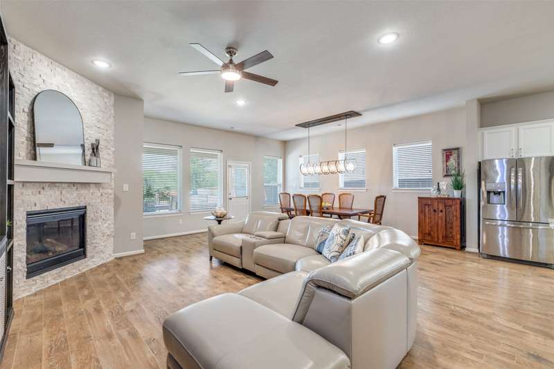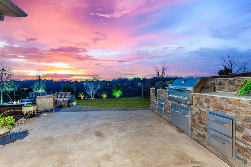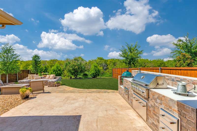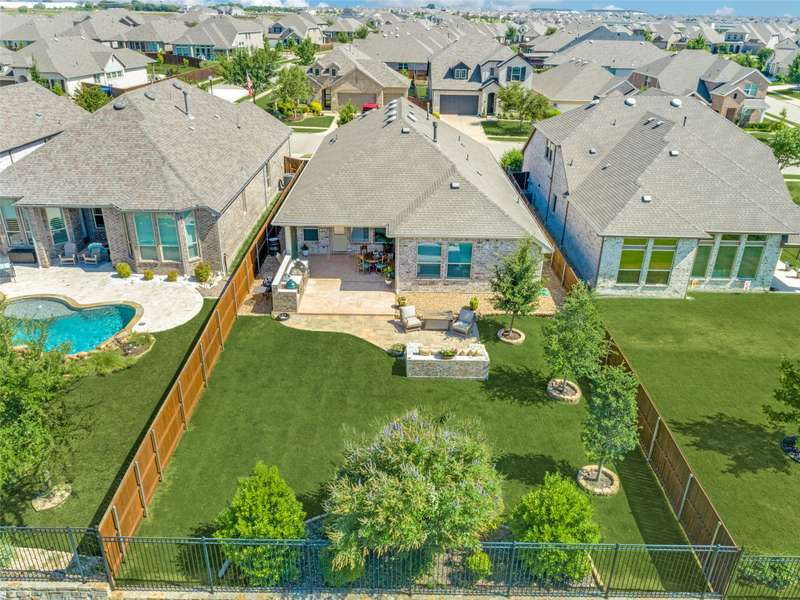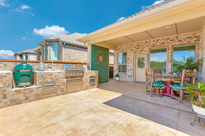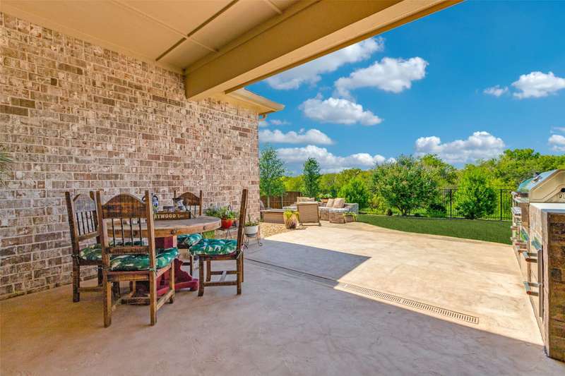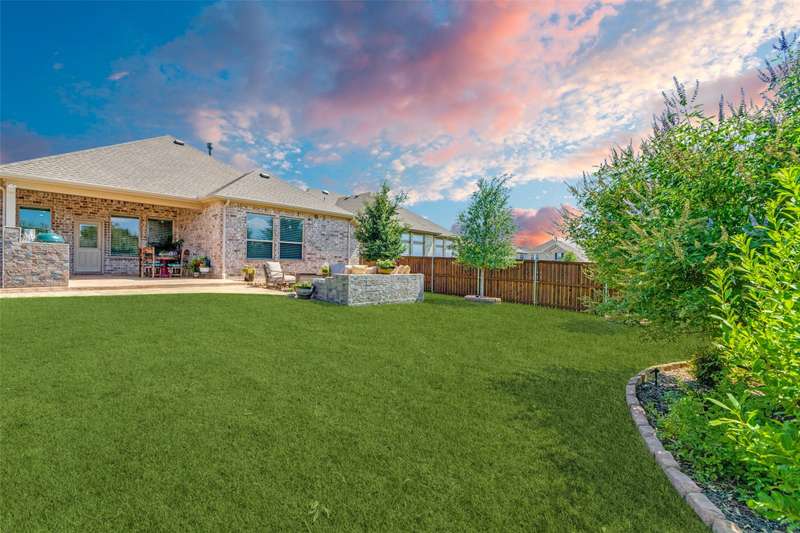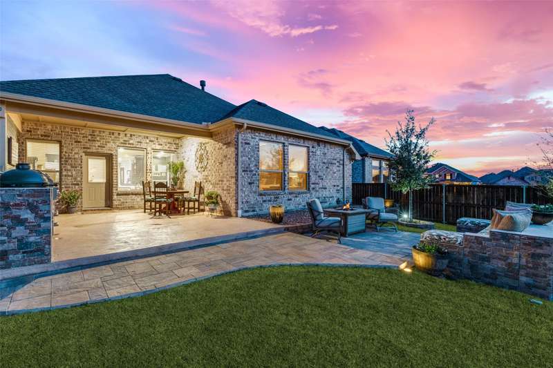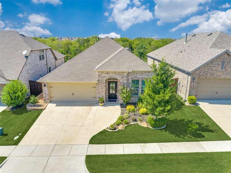 An incredible opportunity in this NEW price range! This beautiful home featuring views of a gorgeous greenbelt is better than ever with fresh paint and stylish updated lighting throughout! From the moment you welcome guests through the front door, youll be impressed by the thoughtful upgrades and open-concept design that seamlessly blends comfort and style! Enjoy expansive views of the nature preserve from nearly every room, with sunlight pouring in over rich flooring and designer finishes. The chefs kitchen is an entertainers dream, featuring quartz countertops, stainless steel appliances, a gas cooktop, a massive island, and abundant storage. Unique custom upgrades include family room and Mud room built-ins, accent walls, epoxy garage flooring, elevate this home beyond the ordinary. Step outside to a perfectly landscaped backyard with crushed rock on all sides and an extended patio complete with a custom-built outdoor kitchenideal for evening gatherings under Texas cotton candy skies. The serene owners retreat offers a spa-like atmosphere, while each space in the home has been curated for everyday living and effortless entertaining. Nestled in sought-after Sandbrock Ranch, youll enjoy resort-style amenities including nature trails, a fitness center, clubhouse, pool, dog parks, and an on-site elementary school.Investor restrictions help maintain community integrity and pride of ownership. With easy access to 380, the Outer Loop, DNT, 423, and endless dining and shopping, this is a rare find you wont want to miss!