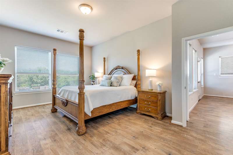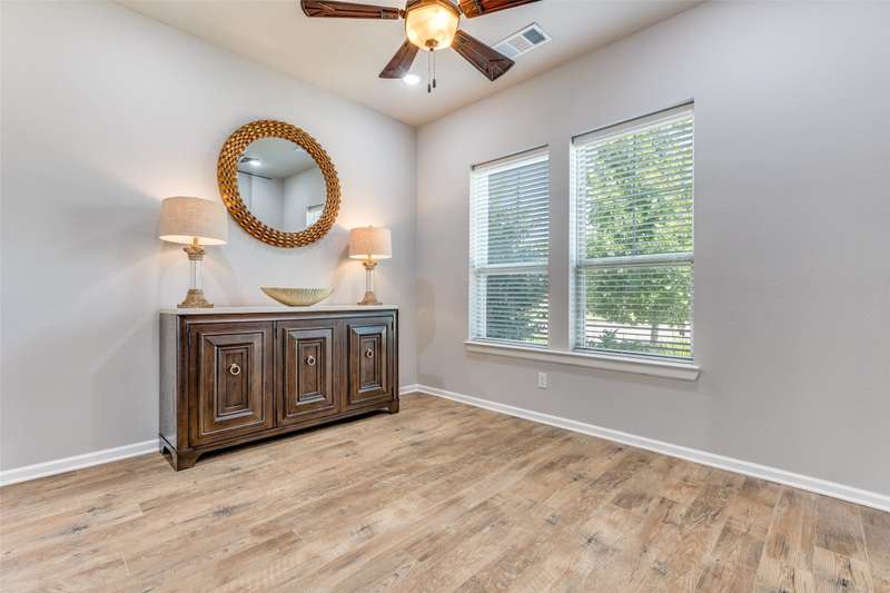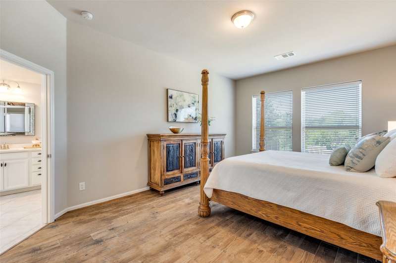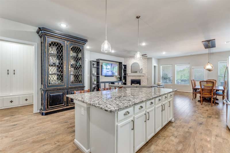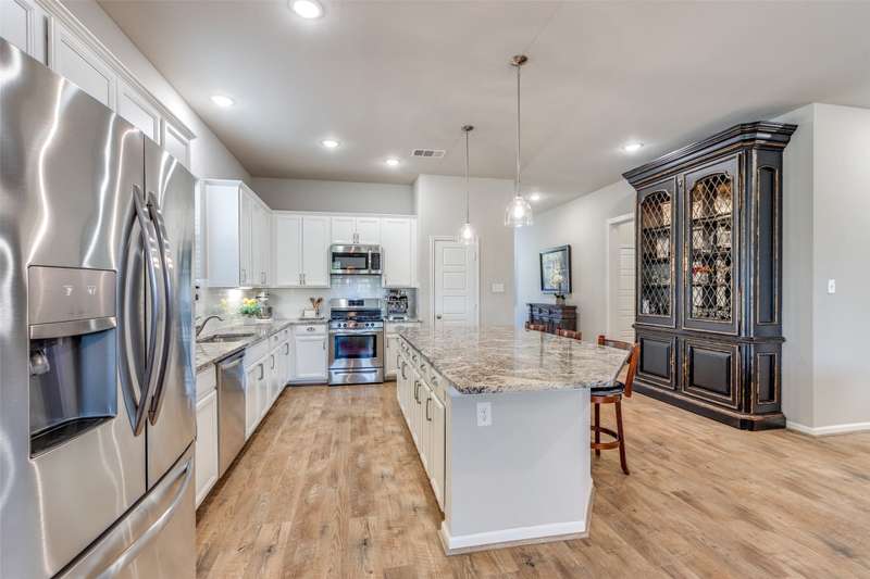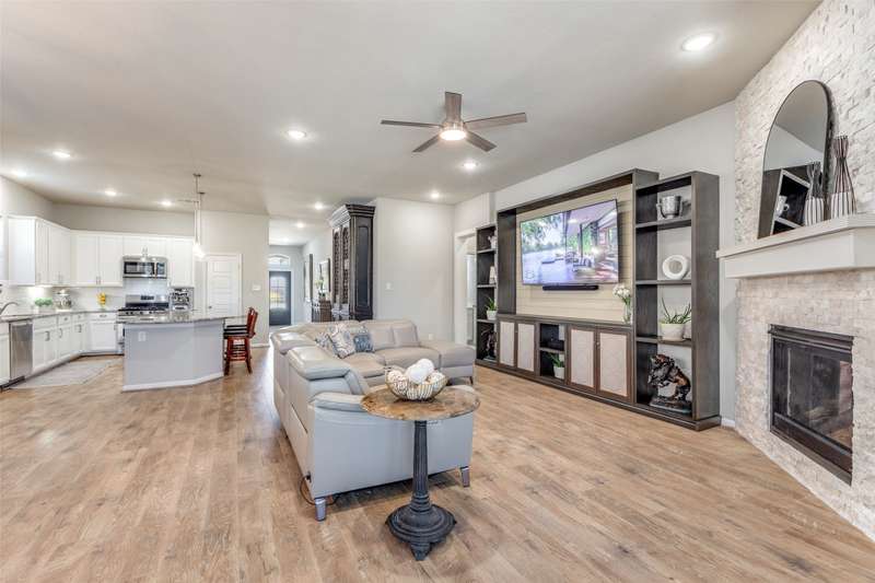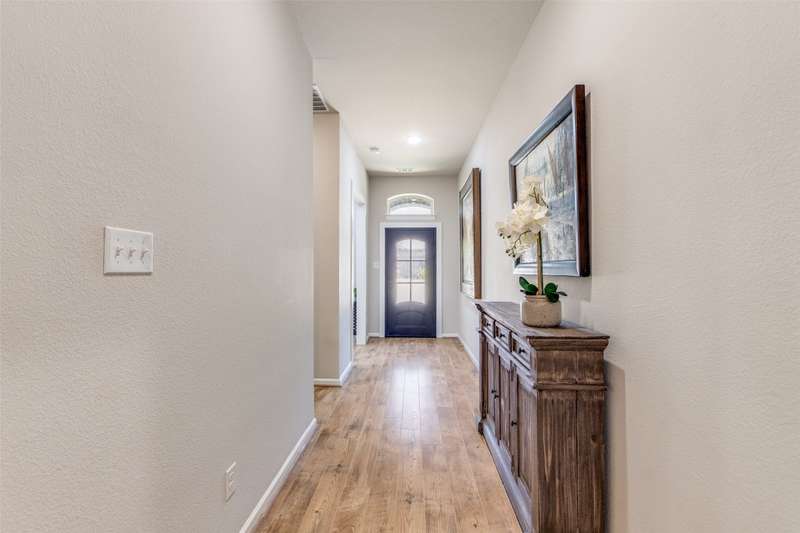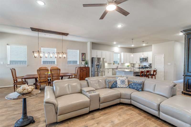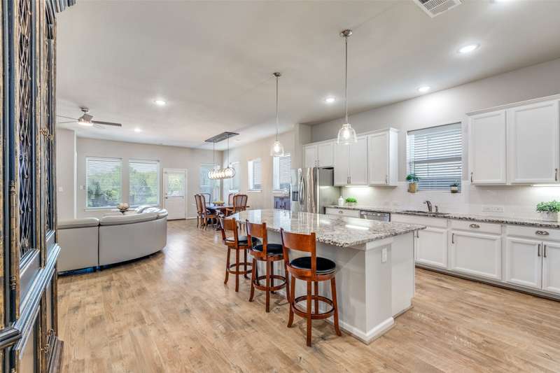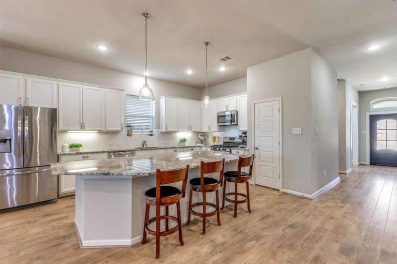 An incredible opportunity in this NEW price range! This beautiful home featuring views of a gorgeous greenbelt is better than ever with fresh paint and stylish updated lighting throughout! From the moment you welcome guests through the front door, youll be impressed by the thoughtful upgrades and open-concept design that seamlessly blends comfort and style! Enjoy expansive views of the nature preserve from nearly every room, with sunlight pouring in over rich flooring and designer finishes. The chefs kitchen is an entertainers dream, featuring quartz countertops, stainless steel appliances, a gas cooktop, a massive island, and abundant storage. Unique custom upgrades include family room and Mud room built-ins, accent walls, epoxy garage flooring, elevate this home beyond the ordinary. Step outside to a perfectly landscaped backyard with crushed rock on all sides and an extended patio complete with a custom-built outdoor kitchenideal for evening gatherings under Texas cotton candy skies. The serene owners retreat offers a spa-like atmosphere, while each space in the home has been curated for everyday living and effortless entertaining. Nestled in sought-after Sandbrock Ranch, youll enjoy resort-style amenities including nature trails, a fitness center, clubhouse, pool, dog parks, and an on-site elementary school.Investor restrictions help maintain community integrity and pride of ownership. With easy access to 380, the Outer Loop, DNT, 423, and endless dining and shopping, this is a rare find you wont want to miss!