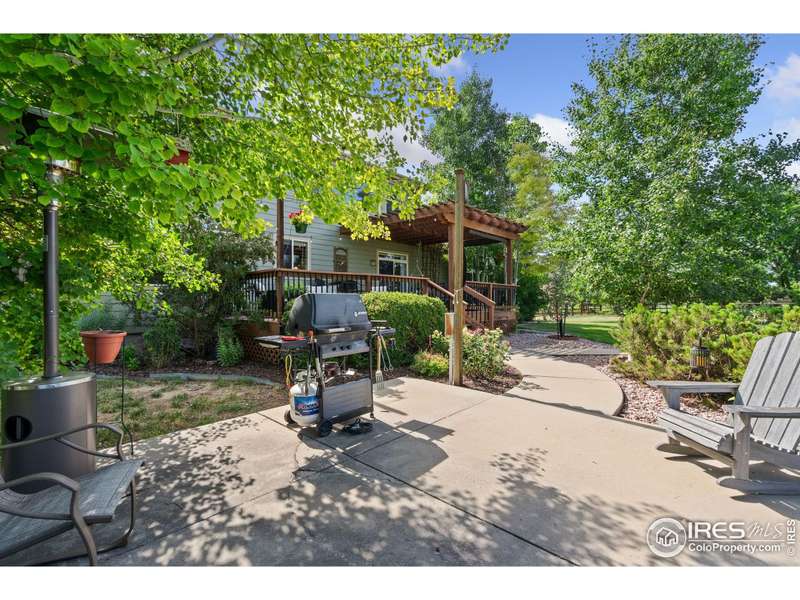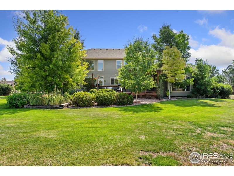 Welcome home to this beautifully appointed two-story in the highly sought-after Steeplechase subdivision! Perfectly situated on a rare 2-acre equestrian lot within Windsor city limits, this property offers incredible mountain views, room for up to two horses, and the ability to build an outbuilding-bring your toys, there's space to spread out and enjoy! A newly seal-coated circle driveway and irrigated mature landscaping-with over 50 trees-elevate the curb appeal and functionality of this already impressive property. The charming home features a wraparound front porch, vaulted ceilings, and a thoughtfully designed layout filled with natural light and custom details throughout. The main level offers a formal living room, a dining room with a butler's pantry, and a spacious island kitchen with double wall ovens. Sliding doors off the kitchen lead to the expansive back deck-complete with a pergola-making it ideal for outdoor entertaining. The stunning two-story family room boasts a gas fireplace and soaring ceilings, creating a warm and inviting space to gather. Upstairs, the primary suite features double-door entry, a cozy double-sided fireplace, and a spacious layout. Two additional bedrooms share a full bath, while a fourth bedroom includes a private en-suite. The finished basement offers a fifth bedroom and additional space to customize to your needs. Additional highlights include a large utility/mudroom, curved staircase, oversized 3-car garage, newer AC (July 2022), new furnace (Jan 2024) and water heater, and NO Metro Tax. Enjoy the convenience of being close to shopping, restaurants, golf courses, and I-25 - all while having the space and freedom of country living.