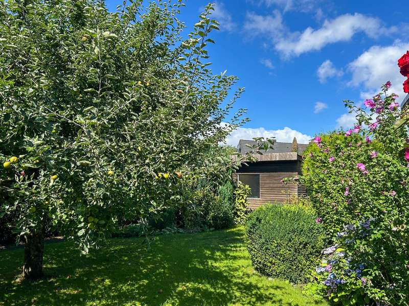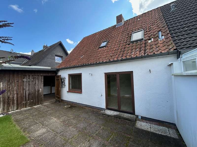 If you are looking for a house to which you can still add your own personal touch, then this offer is just right for you. The property was built in 1937 in a quiet residential area and has been rented out in recent years. Now that the tenants have moved out, the house is for sale and is waiting to be given a new lease of life by the new owner. On the first floor there is a timeless shower & bath with window, a large functional fitted kitchen and the light-flooded living area with access to the beautiful garden. A solid wooden staircase leads to the top floor, which has 2.5 rooms that can be used as a bedroom, dressing room or study. The small partial cellar offers space for tools or storage. A particular highlight of this property is the large outdoor area, which can be easily accessed via the living area. You will then be standing on a terrace, which you still have a free hand in designing. Colorful flower pots, fairy lights or comfortable lounge furniture - here you can give free rein to your creativity and create your own personal outdoor retreat. From the terrace, you can also access the attached shed from the carport, where there is space for garden tools and other items. The sunny plot has an unobstructed view to the southwest. The garden is easy to maintain and offers plenty of space to realize your own personal garden dreams. From a vegetable garden to a children's playground to a garden pond or swimming pool, almost anything is possible here. There is a further garden shed in the rear garden area. A large carport completes the offer of this property. Further parking spaces are available in the immediate vicinity, ensuring a relaxed parking situation. Energy-efficient refurbishment / modernization of the property is recommended: Facade & roof insulation, renewal of electrics and water pipes, partial renewal of windows. The offer is aimed at owner-occupiers or investors who appreciate living in a quiet location in Eckernförde. Are you curious? We look forward to hearing from you.