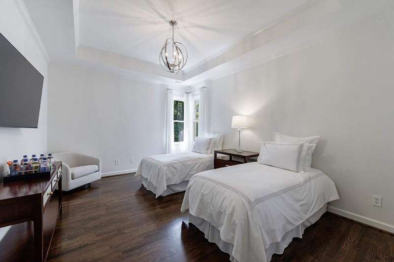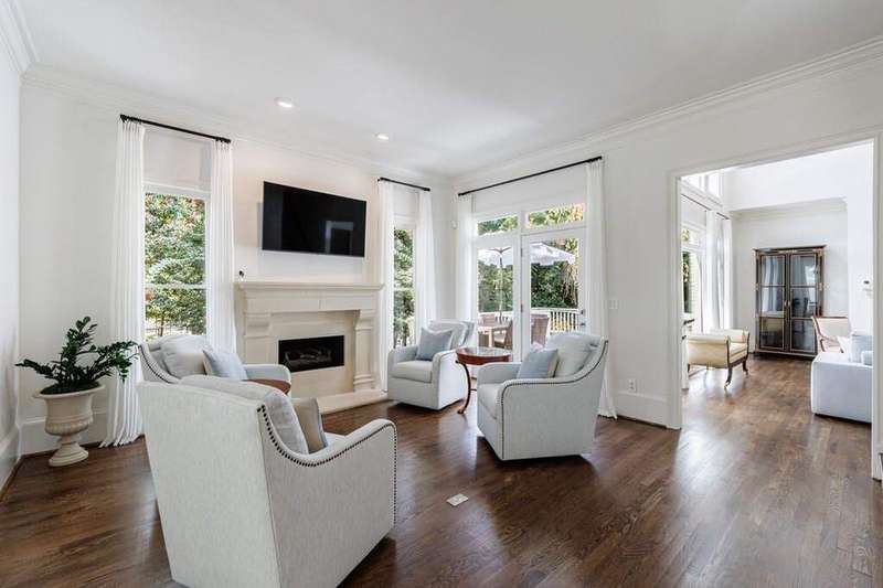 **This property has a separate street off of Peachtree Dunwoody allowing for additional parking and easy access in and out of the driveway.** Thoughtfully renovated North Buckhead home has left no detail untouched, upgrades include: new exterior and interior paint, completely renovated kitchen, newly renovated bathrooms, new light fixtures, new fireplace surrounds, new grass etc. The light filled entry foyer welcomes you to a grand staircase and dramatic two story foyer. Large formal dining room sits in the front of the house and large living room with wet bar and fireplace sits in the back of the house and overlooks the backyard. Kitchen is light and airy with marble counters and matching island, Viking appliances and opens to the breakfast room and keeping room with fireplace. Laundry room is conveniently located off of the 3 car garage. Admired oversized primary suite on main has sitting room with fireplace. Completely renovated primary bathroom has dual vanities, separate soaking tub and shower. Large walk-in closet sits in the back of suite. Handsome office sits in the front of the house but could also be used as a library or playroom. Upper level staircase leads to 3 bedrooms all with en-suits baths. Terrace level truly has it all and could be used as a in-law suite or au-pair suite with separate driveway and one car garage as well as 2 bedrooms and 2 full baths, kitchenette and living space. Basement level also includes wine cellar and additional storage room with access to the level backyard.