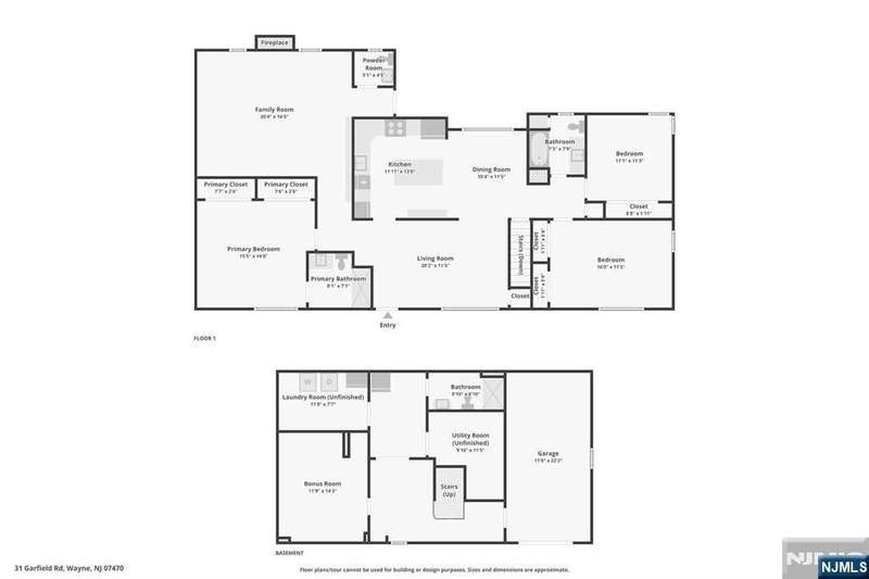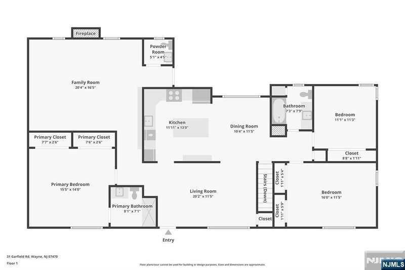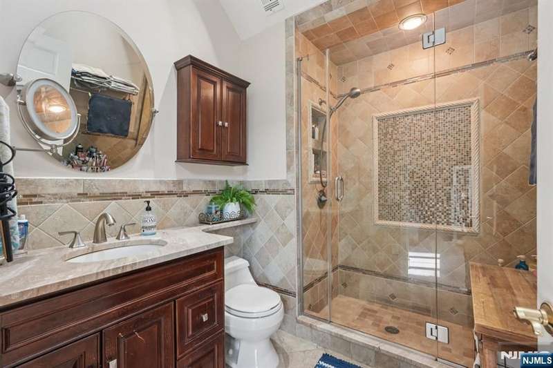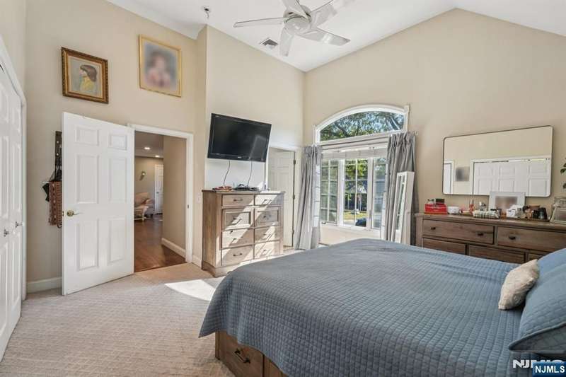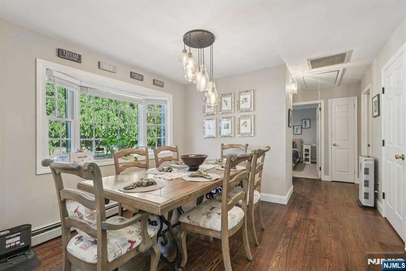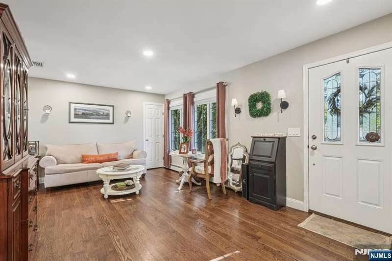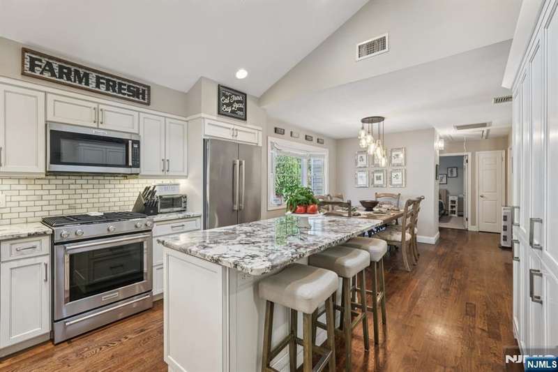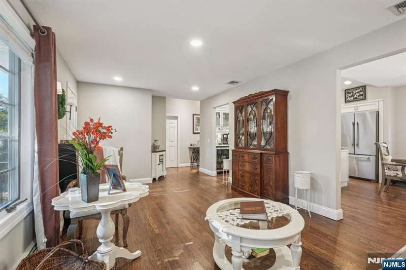 Welcome home to this beautifully maintained 3 bedroom, 3.5 bathroom Expanded Ranch nestled on a wooded lot in the heart of Wayne. Thoughtfully designed for easy one-floor living, this home offers a bright and inviting atmosphere throughout. Step into the spacious living room featuring large windows that fill the space with natural light. A wide cased opening leads into the elegant dining room, perfect for intimate dinners or entertaining. The eat-in kitchen is the heart of the home, boasting custom cabinetry, marble countertops, stylish backsplash, stainless steel appliances, a center island with barstool seating, skylights, and a custom pantry for ample storage. Seamlessly connected, the generous family room impresses with vaulted ceilings, large windows, skylights, and a cozy fireplace, creating the ideal space for relaxation and conversation. The primary bedroom features a large closet and en suite. Two additional bedrooms and two full baths and powder room provide comfort and convenience. The full, partially finished basement offers a versatile den, full bathroom, laundry, storage and garage access. Enjoy indoor-outdoor living with a rear patio and deck, perfect for grilling, al fresco dining, and entertaining, overlooking the spacious yard for gardening, play, or relaxation. A 1-car attached garage and ample driveway parking complete this home. Conveniently located near NYC transportation, shopping, and dining, this residence combines comfort, style, and function.