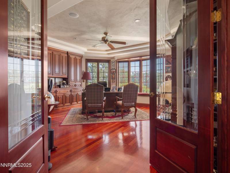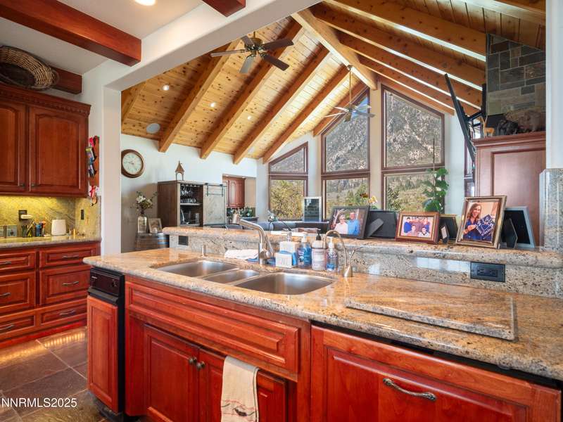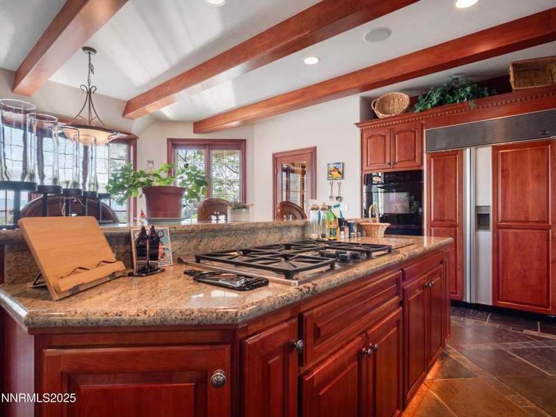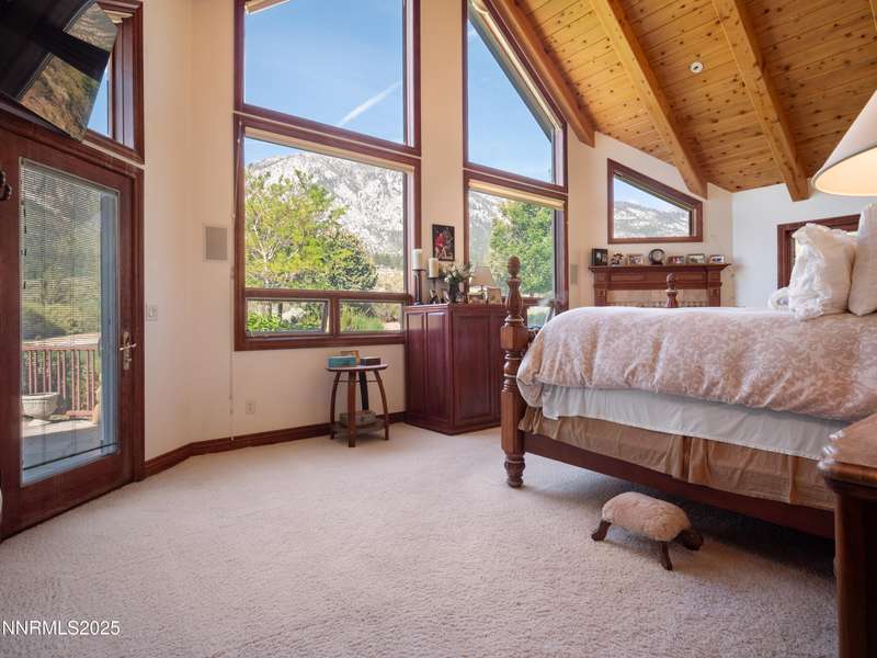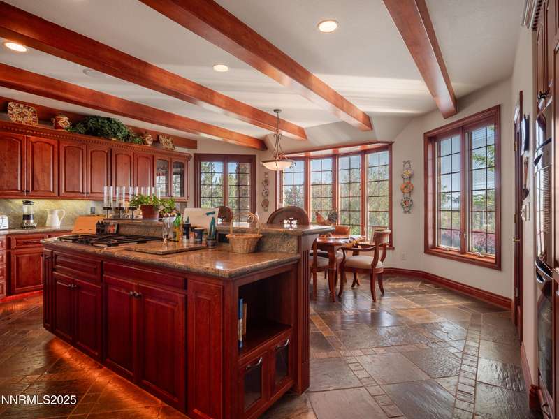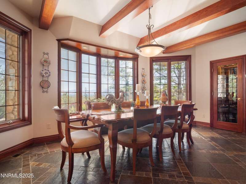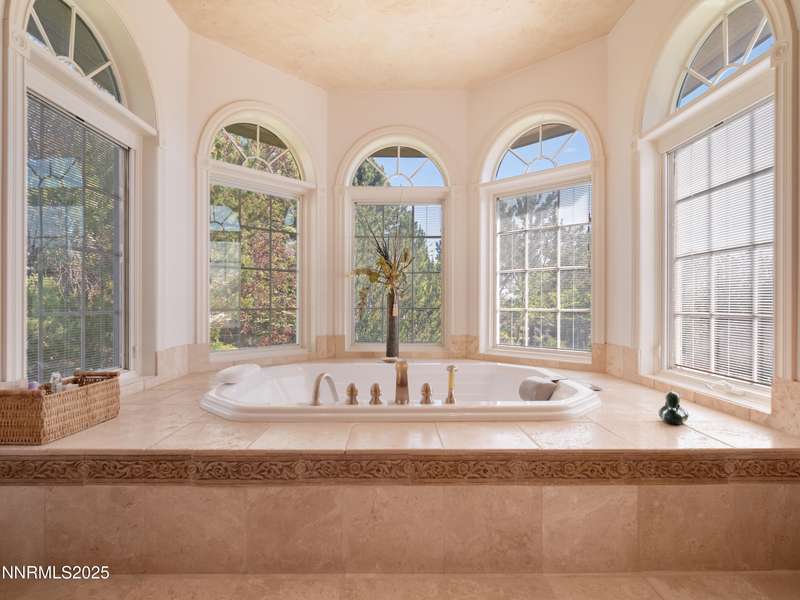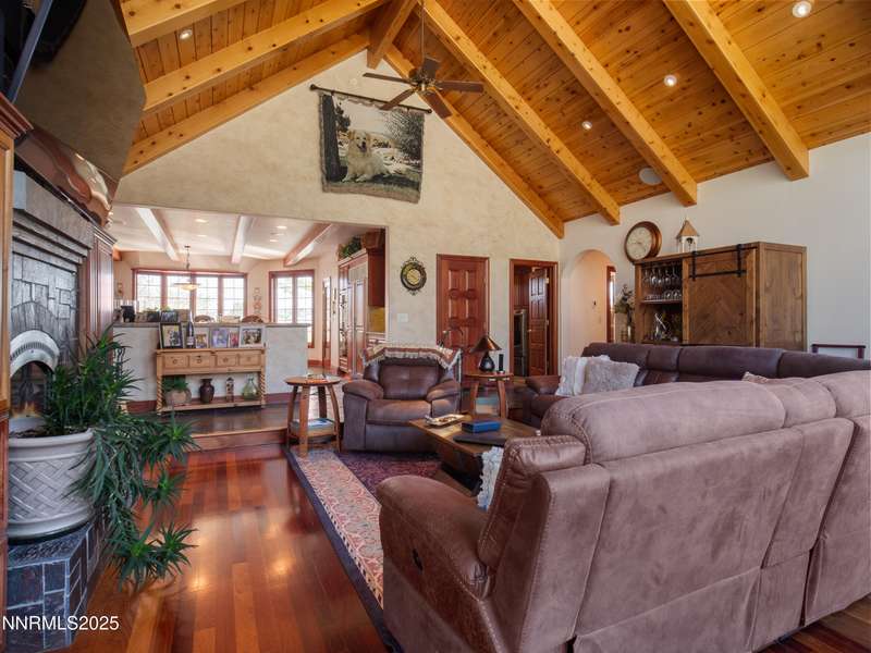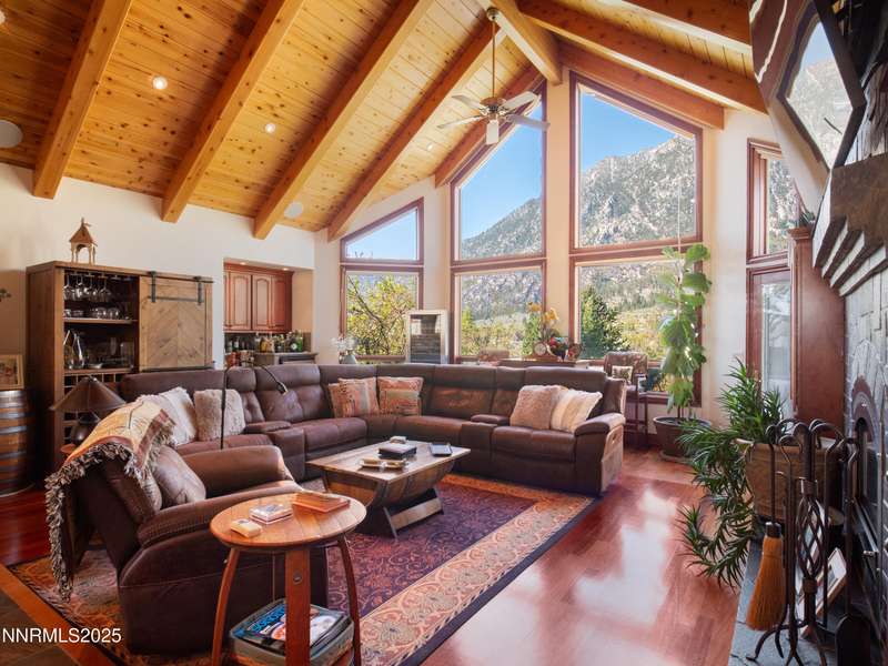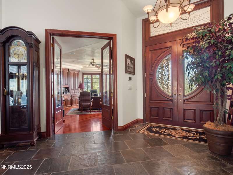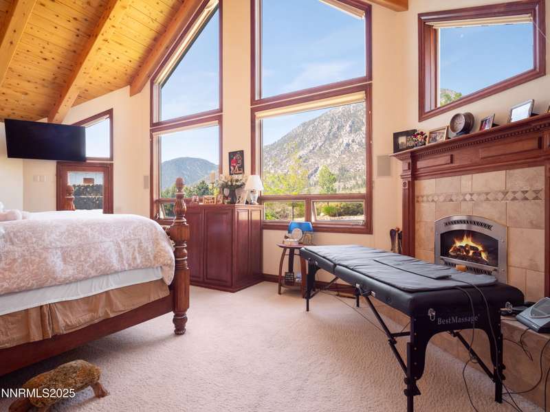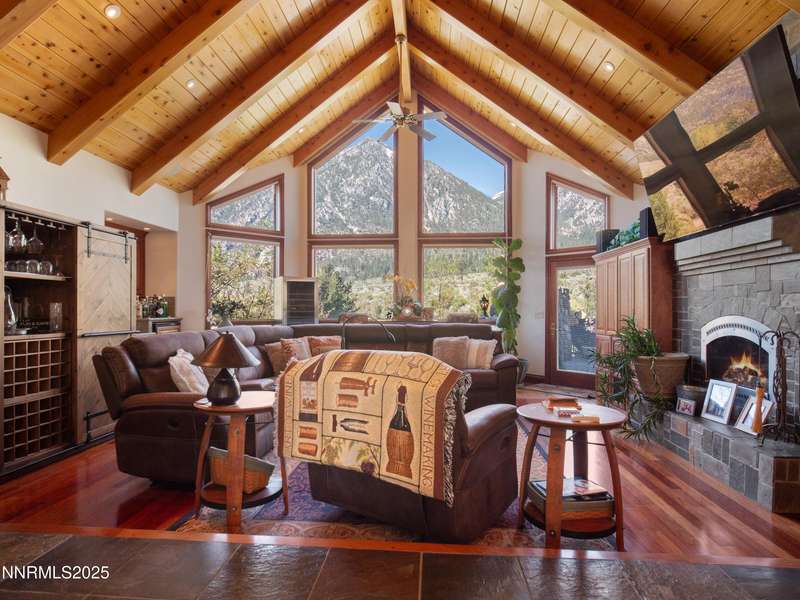 Custom estate nestled on two gated, private professionally-landscaped acres adjacent to dedicated open space with unobstructed panoramic views of Jobs Peak and the valley below. Thoughtfully designed personal home of a locally renowned custom home builder with no expense spared and no detail overlooked. This home is an architectural masterpiece with a split floorplan that seamlessly blends luxury, privacy, comfort, and smart technology featuring exquisite materials such as travertine, slate, marble, cherry and mahogany throughout. Luxury Pella low-E windows with integrated blinds, solid wood doors and trim, soaring vaulted ceilings and five fireplaces throughout the home - four gas fireplaces inside and a commanding wood-burning fireplace on the expansive rear patio. The gourmet Kitchen boasts custom cherry cabinetry, slate flooring, granite slab countertops, and top-of-the-line appliances including Sub-Zero refrigerator, Bosch dishwasher, and Dacor gas cooktop. It also features double ovens, built-in microwave, trash compactor, large kitchen island, walk-in pantry, and under-cabinet and toekick lighting. The luxurious great room is crowned by beautiful cedar tongue-and-groove cathedral ceilings with exposed beams, an Extraordinaire gas fireplaces with floor-to-ceiling slate hearth, a full wet bar, warm Brazilian cherry floors and breathtaking mountain views. The primary suite is a private sanctuary with vaulted cedar ceilings and beams, personal fireplace with travertine hearth and cherry mantle, spacious walk-in closet and a spa-like bathroom featuring heated travertine flooring, jetted two-person tub, skylit double-height ceilings, walk-in shower with 8 shower heads, double vanity with travertine slab countertops, and touchless toekick lighting The office is perfect for remote work with custom mahogany built-in cabinetry, gas fireplace with granite hearth and solid wood and glass double entry doors The roughly 1,300sf finished basement with half bath is perfect for a "man-cave" "she-shed" workshop, personal gym or private wine cellar. The meticulously maintained grounds offer luxurious outdoor living with a private rear paver patio with breathtaking views of Jobs Peak, a built-in Viking barbecue, wood-burning fireplace, 10,000+ sq/ft paver stone driveway, 24-ft lighted flagpole, full automatic irrigation system, lush lawn, mature trees, and walking trails. Additional features of the home include: whole-home Generac generator, 3-car oversized garage with brand new double acrylic painted floor (Aug 2024), 3 storage racks, Lift Master openers, and 2 EV charging stations, iPhone-controlled smart thermostat, integrated stereo system inside and out, Smart video-gated driveway entry, central vacuum, monitored security and smoke detection systems, Dual-zone high-efficiency gas furnaces (new in Feb 2024), two high-efficiency water heaters (new in Nov 2023), Dual-zone A/C, recirculating hot water, water softener, water softener, and new tile roof (Sept 2023)