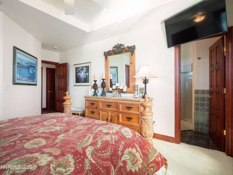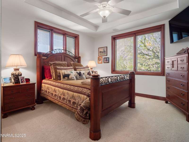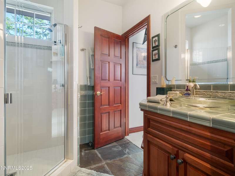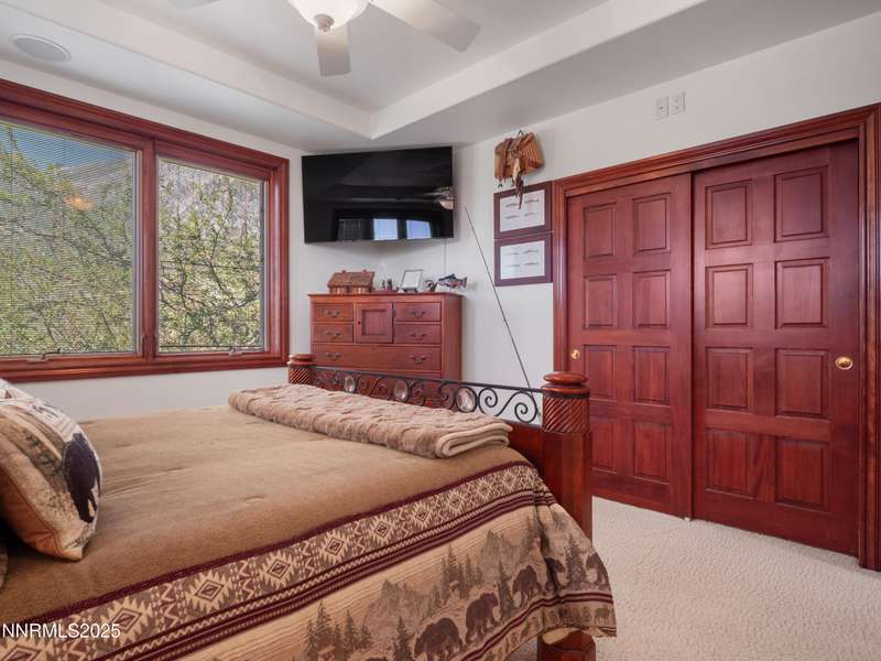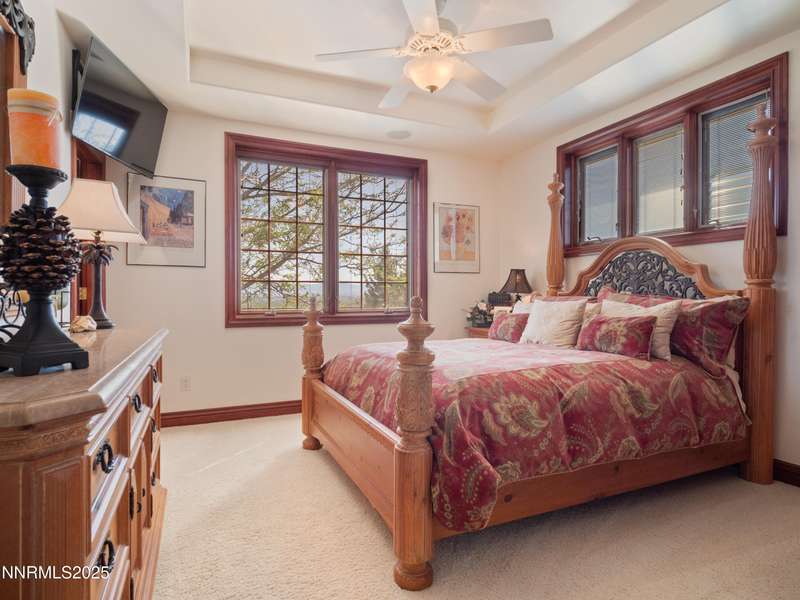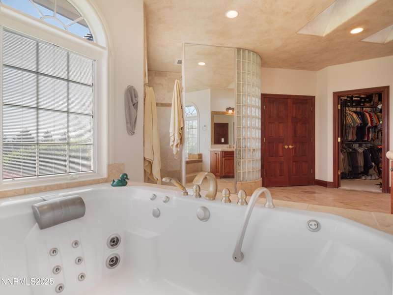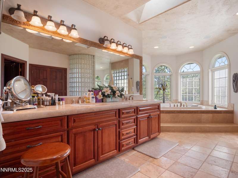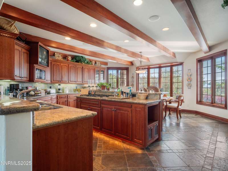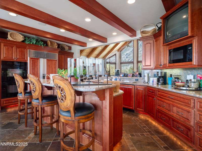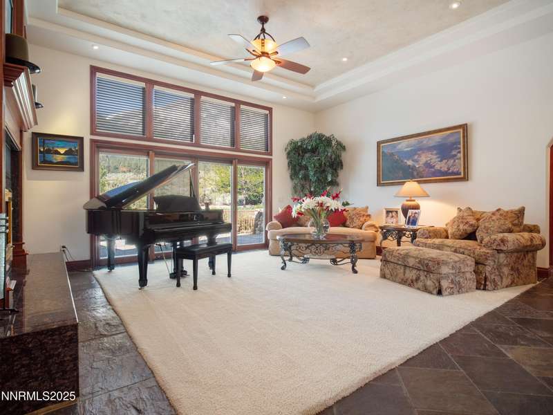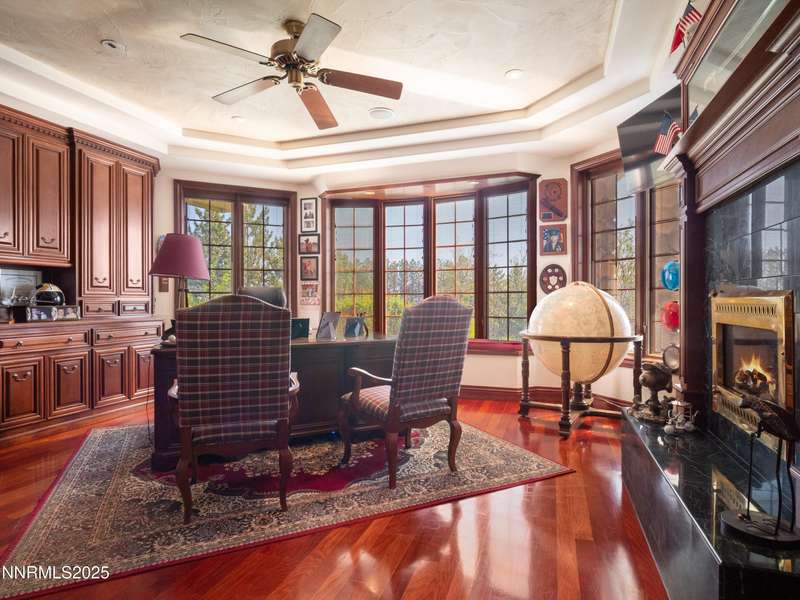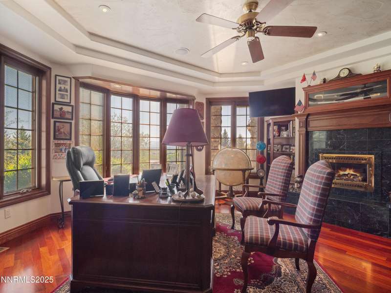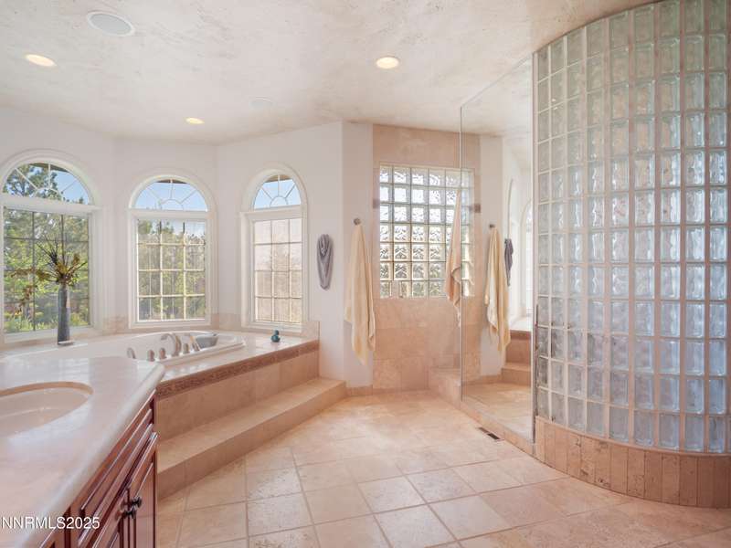 Custom estate nestled on two gated, private professionally-landscaped acres adjacent to dedicated open space with unobstructed panoramic views of Jobs Peak and the valley below. Thoughtfully designed personal home of a locally renowned custom home builder with no expense spared and no detail overlooked. This home is an architectural masterpiece with a split floorplan that seamlessly blends luxury, privacy, comfort, and smart technology featuring exquisite materials such as travertine, slate, marble, cherry and mahogany throughout. Luxury Pella low-E windows with integrated blinds, solid wood doors and trim, soaring vaulted ceilings and five fireplaces throughout the home - four gas fireplaces inside and a commanding wood-burning fireplace on the expansive rear patio. The gourmet Kitchen boasts custom cherry cabinetry, slate flooring, granite slab countertops, and top-of-the-line appliances including Sub-Zero refrigerator, Bosch dishwasher, and Dacor gas cooktop. It also features double ovens, built-in microwave, trash compactor, large kitchen island, walk-in pantry, and under-cabinet and toekick lighting. The luxurious great room is crowned by beautiful cedar tongue-and-groove cathedral ceilings with exposed beams, an Extraordinaire gas fireplaces with floor-to-ceiling slate hearth, a full wet bar, warm Brazilian cherry floors and breathtaking mountain views. The primary suite is a private sanctuary with vaulted cedar ceilings and beams, personal fireplace with travertine hearth and cherry mantle, spacious walk-in closet and a spa-like bathroom featuring heated travertine flooring, jetted two-person tub, skylit double-height ceilings, walk-in shower with 8 shower heads, double vanity with travertine slab countertops, and touchless toekick lighting The office is perfect for remote work with custom mahogany built-in cabinetry, gas fireplace with granite hearth and solid wood and glass double entry doors The roughly 1,300sf finished basement with half bath is perfect for a "man-cave" "she-shed" workshop, personal gym or private wine cellar. The meticulously maintained grounds offer luxurious outdoor living with a private rear paver patio with breathtaking views of Jobs Peak, a built-in Viking barbecue, wood-burning fireplace, 10,000+ sq/ft paver stone driveway, 24-ft lighted flagpole, full automatic irrigation system, lush lawn, mature trees, and walking trails. Additional features of the home include: whole-home Generac generator, 3-car oversized garage with brand new double acrylic painted floor (Aug 2024), 3 storage racks, Lift Master openers, and 2 EV charging stations, iPhone-controlled smart thermostat, integrated stereo system inside and out, Smart video-gated driveway entry, central vacuum, monitored security and smoke detection systems, Dual-zone high-efficiency gas furnaces (new in Feb 2024), two high-efficiency water heaters (new in Nov 2023), Dual-zone A/C, recirculating hot water, water softener, water softener, and new tile roof (Sept 2023)