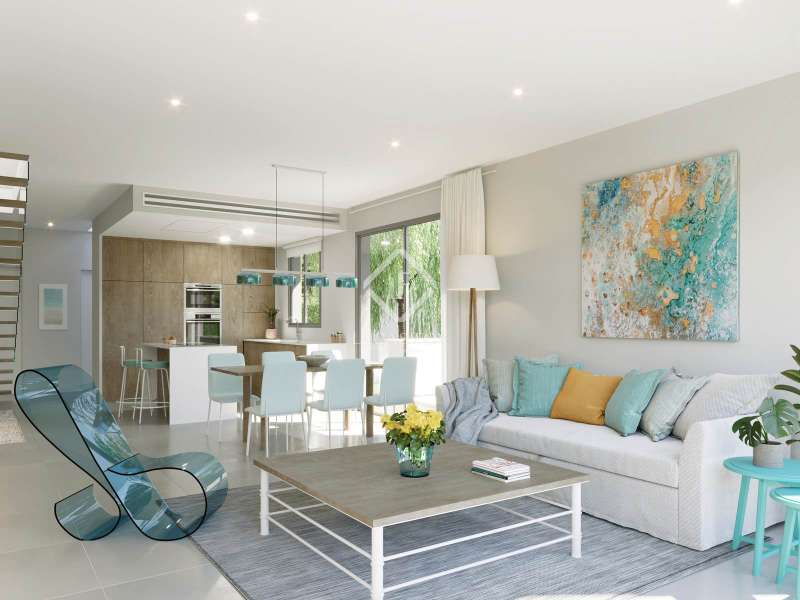 Tucked away in a secure, meticulously landscaped gated community, this newly constructed villa offers a delightful private pool. This exceptional residence spans two levels, and there is even the possibility of adding a basement if desired. The main floor presents an open-concept living space seamlessly connected to a fully-equipped kitchen and a cosy dining area. Sunlight streams through floor-to-ceiling windows, granting access to two terraces spanning 39 square metres. Additionally, a spacious main bedroom boasts its own private garden and a luxuriously appointed en-suite bathroom. For added convenience, a bathroom room is also situated on this level. Climbing the staircase to the upper level, two more inviting bedrooms and a well-appointed bathroom await. Each bathroom is designed to welcome an abundance of natural light, showcasing impeccable finishes. Outdoors, a delightful garden surrounds the property, complemented by a glistening swimming pool and ample parking space for two cars. Only the finest quality materials have been used in the construction of this property and the finishes can be tailored to your unique taste. Please contact us for further information.