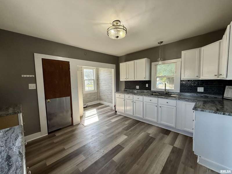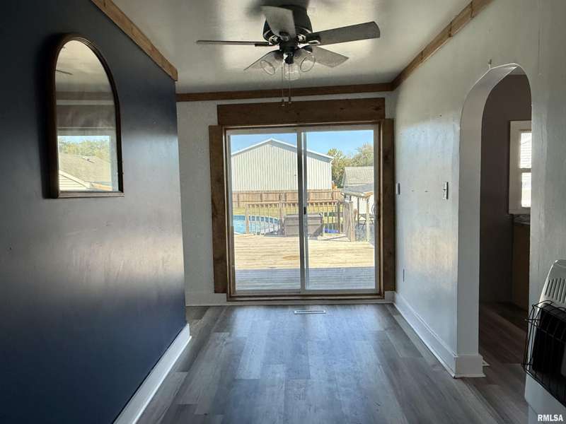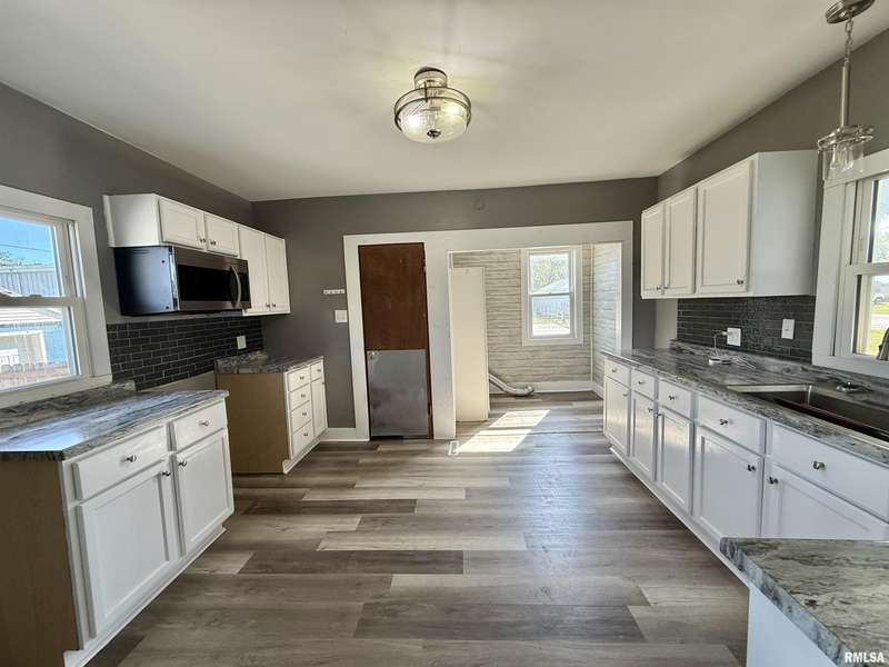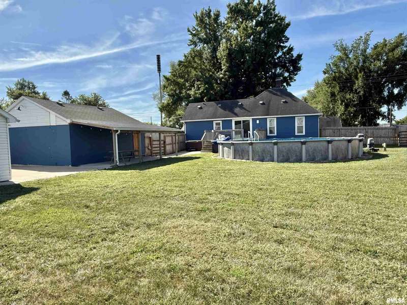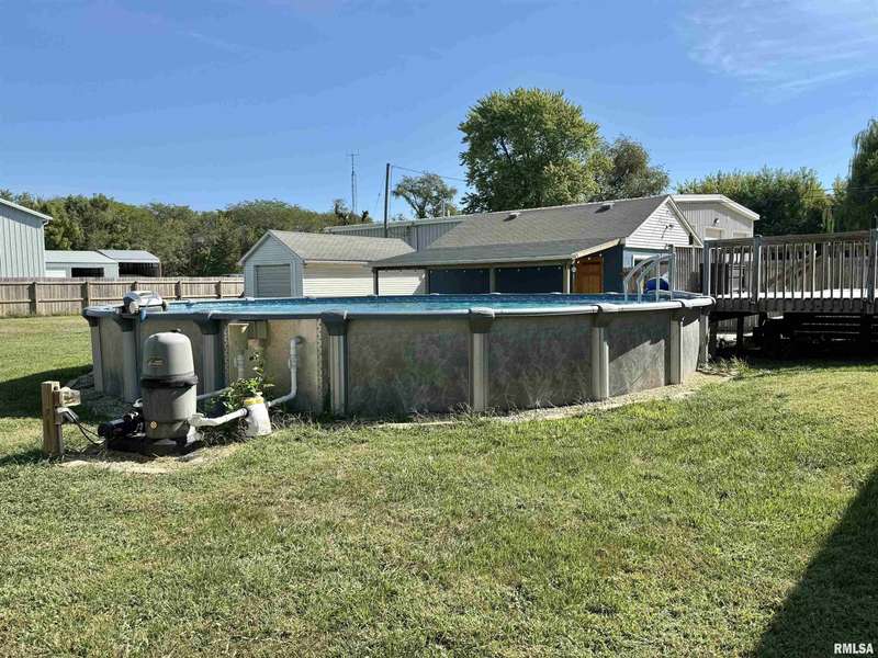 You will love the back yard with all the amenities. 30-foot round above ground pool. Hot Tub. Lot size is 100x200, .45 acre. Nice deck overlooks the yard. Two car detached garage, and a one car detached garage. Concrete patio. Privacy fence 2024. Water heater 2020. Kitchen remodeled 2023 including cabinets, countertops, and flooring, microwave stays. Flooring in home updated in 2023. Also plumbing (pex water lines) and wiring updates in 2023. Home is currently a one-bedroom home, but the wall can be added to make it back into a two-bedroom home. Main floor laundry. Bathroom on main level and a bathroom in the basement. Move in ready home!