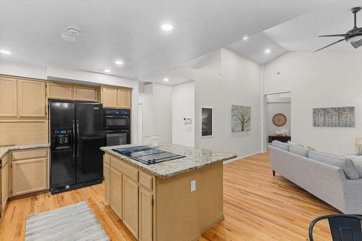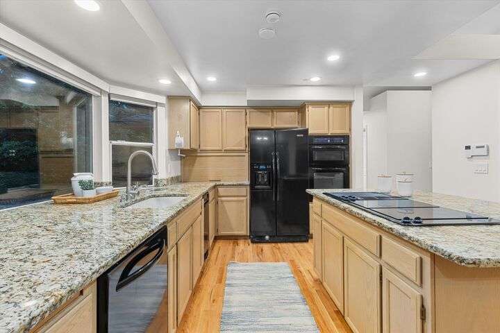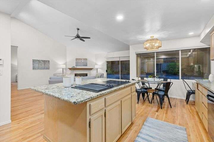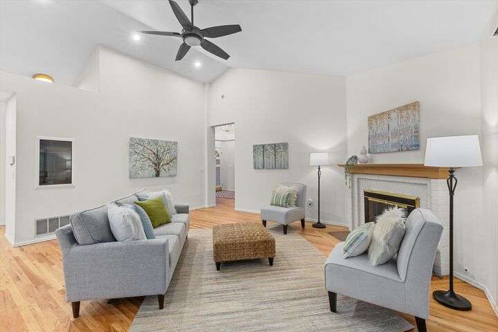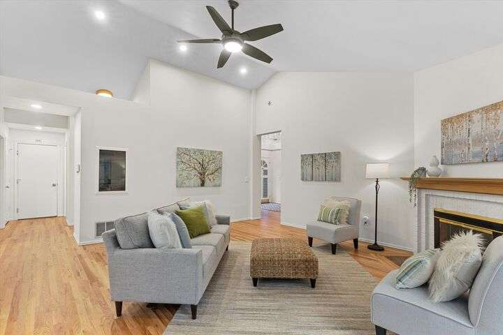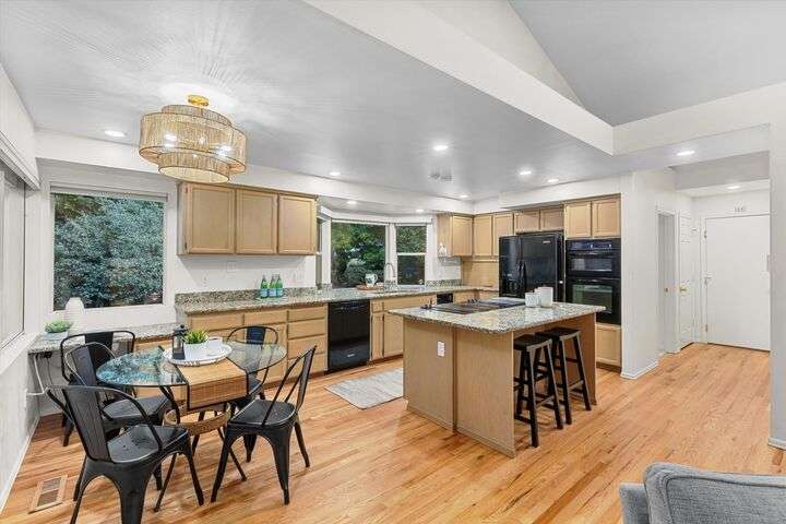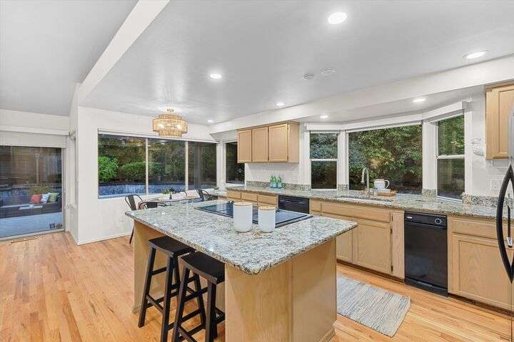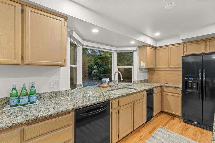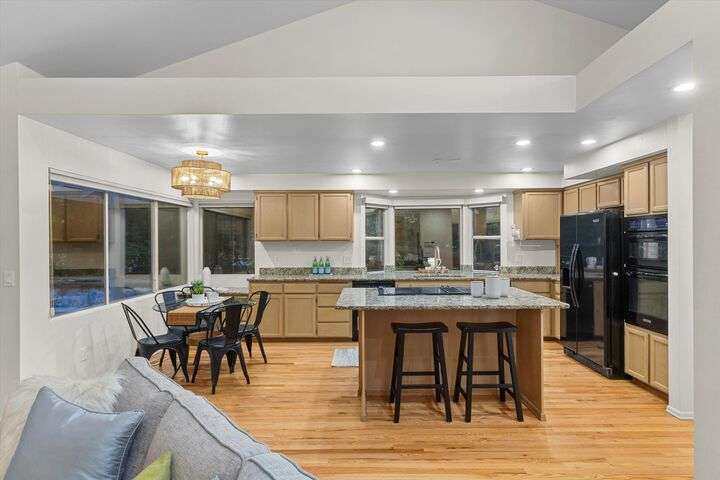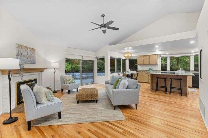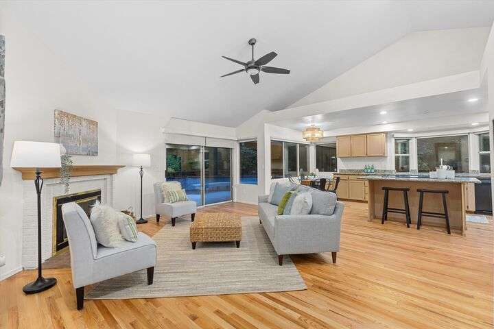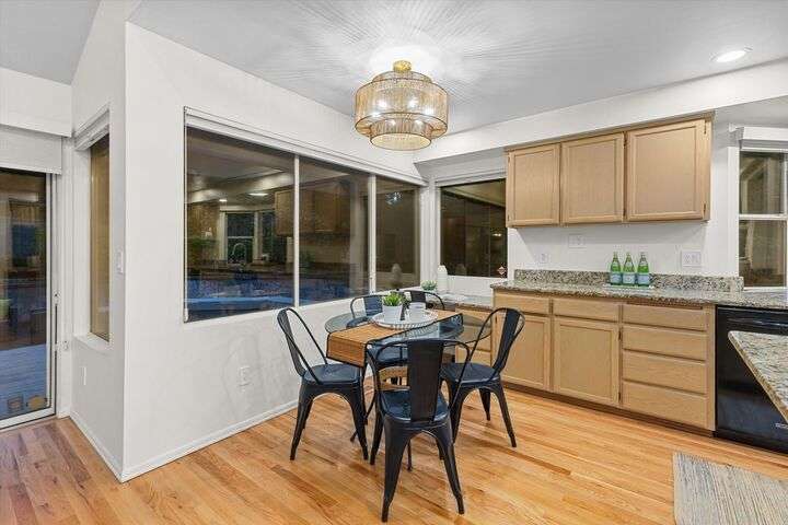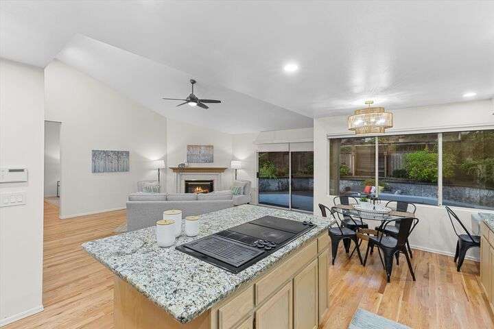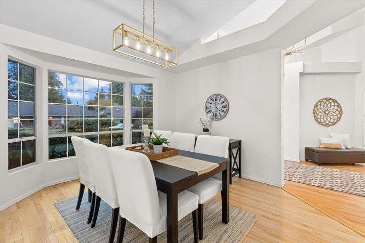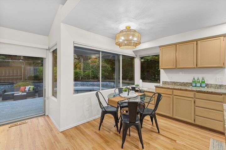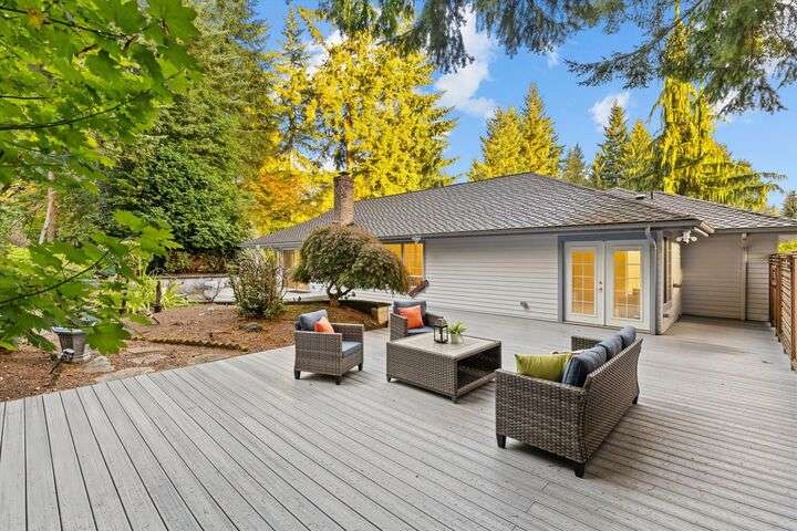 Move-in ready, stylishly updated rambler in the desirable Douglas Fir neighborhood! Recent updates include a new deck, refinished hardwoods, new carpet, updated hardware, lighting & plumbing fixtures & 1 year old furnace, A/C & water heater. Fantastic floor plan with only 1 step to the front door boasts living & dining rooms, family room with cozy gas fireplace, kitchen with pantry, island & breakfast nook, and primary suite with deck access, vaulted ceilings, walk-in closet & 5-piece bath. Beautiful backyard is ¾ fenced with permit obtained for fencing along Trillium. Ideally located near Mill Creek Town Center, schools, golf & tennis clubs, aquatic center, Arena Sports, scenic nature trails, parks, SWIFT Transit Line, Park & Ride & more.