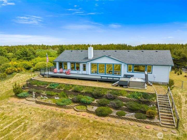Turn-Key Beachfront Estate on 3.5+ Acres on Grayland Beach Spectacular oceanfront living with 130' of frontage and gated privacy. This 3988 sq ft estate offers 3 beds, 2.5 baths on the main level with sweeping ocean views, a spacious primary suite, walk-in closet, and jacuzzi tub. New composite 3-sided deck with oceanfront hot tub. The 1,940 sq ft lower level has a separate entrance—If you add a kitchen could be perfect for an ADU or multi-gen living. Enjoy miles of pristine beach just steps away. Includes a 40' x 60' insulated and heated shop with beautiful plywood finish. Ideal for full-time living, vacation home, or short-term rental (zoning allows). A rare coastal retreat with income potential.