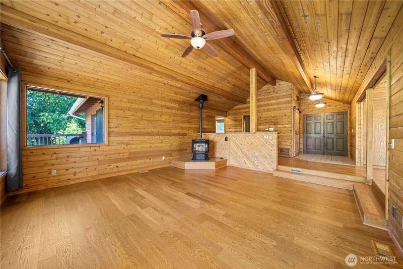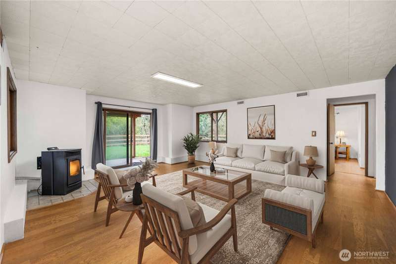A lot of homes are called one of a kind, but this one truly is! Perfectly situated overlooking 10 acres, here you have privacy, mountains, forest and acres of pastures. Whether you want peace & quiet, views, or your own farm - here you can have it all! Enter the main level of this daylight rambler to WOW factor in every direction - vaulted ceilings, huge windows and tons of natural light. 2 bedrooms & 2 baths(including primary suite w/ private deck) upstairs w/ open layout in main living area. Downstairs you have a walk-out space with huge bonus rooms, 2 more bedrooms, a full bath and kitchenette. Potential for MIL, ADU or multi-gen living! Too many good things to list here, must see in person to appreciate this special property and home!