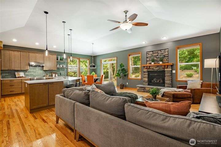 Situated on almost 2 acres with a peaceful, park-like setting, this beautifully maintained 3-bedroom, 2.5-bath single-level home blends comfort and style. Inside, the newly remodeled kitchen features modern finishes and plenty of space for cooking and gathering. Some fresh interior paint adds a bright touch. The spacious living areas are designed for both everyday living and entertaining, while the generous primary suite provides a relaxing retreat. Step outside to a covered outdoor entertainment space, ideal for hosting year-round. Surrounded by natural beauty yet offering convenience, this property is a rare find.