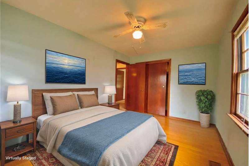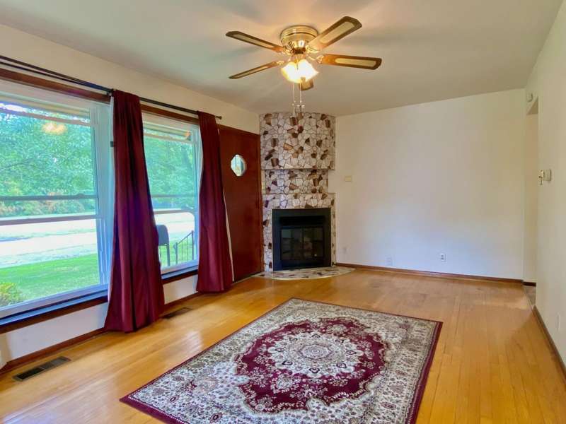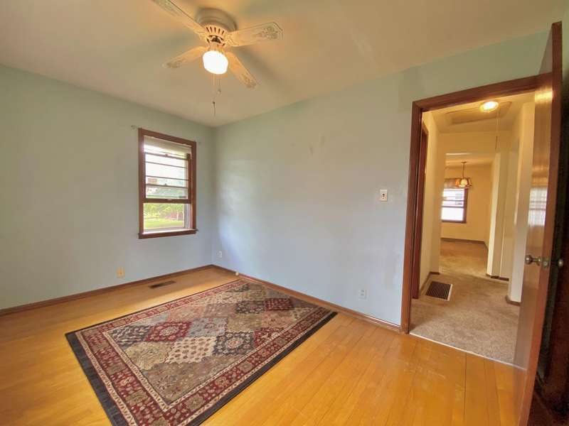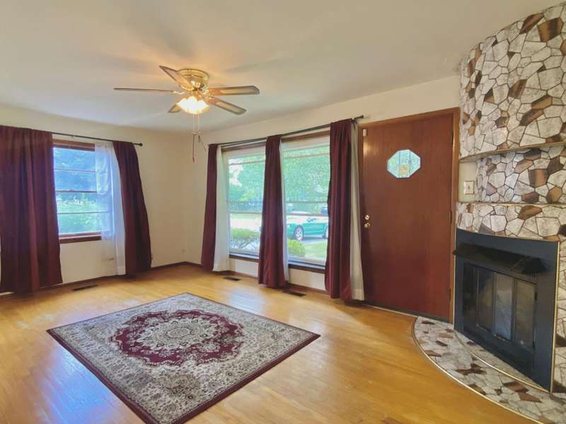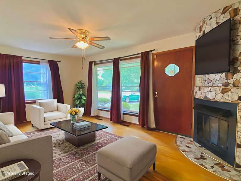Featuring over 1,450 sqft this ranch with basement & great recreation + a fantastic yard, 2 Bedrooms, gorgeous hardwood flooring, a fenced yard and oversized 20x11 one car garage. Noticed the excellent curb appeal leading to the 18 x 12 family room with gas fireplace, insulated picture window & gas fireplace. Open kitchen has smooth top range front door, refrigerator wrap around countertops plus breakfast bar overlooking the dining room. Two bedrooms access the Bathroom with classic tile and retro appeal. The basement has a huge recreation, bar, game area. Basement utility with tub, softener, washer & dryer. Utility shower and fireplace deemed not warranted. Furnace is high efficiency. Solar lease is in place $54/mo * see attachments. Covered patio with fenced yard , shed & access to covered area to garage