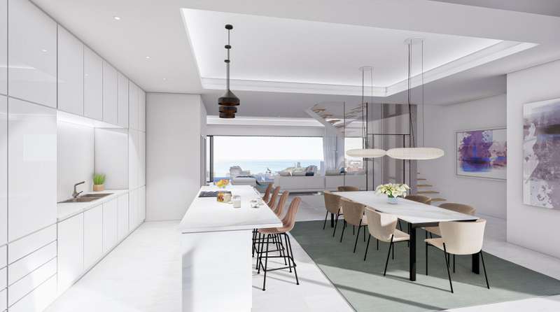 A Unique Villa That Exceeds All Expectations – Luxury Living Without Compromise When you’re looking for a home that combines top-tier design, uncompromising quality, and solutions that make everyday life easier, this luxurious new development of four villas on the hillside of Torreblanca, Fuengirola, offers all that and more. In this home, there’s no need to compromise – every detail has been meticulously planned and executed to the highest standards. A Perfect Blend of Aesthetics and Functionality These modern, light-filled villas combine elegance and practicality. The entire home is imbued with thoughtful and timeless design, realized with the finest materials: Premium finishes such as high-quality ceramic tiles by Tau and Roca bathroom fixtures bring a touch of luxury to daily life. High-tech solutions like Cortizon double-glazed windows ensure optimal sound insulation and thermal comfort. Waterborne underfloor heating, even on the terraces, provides year-round living comfort. Sp