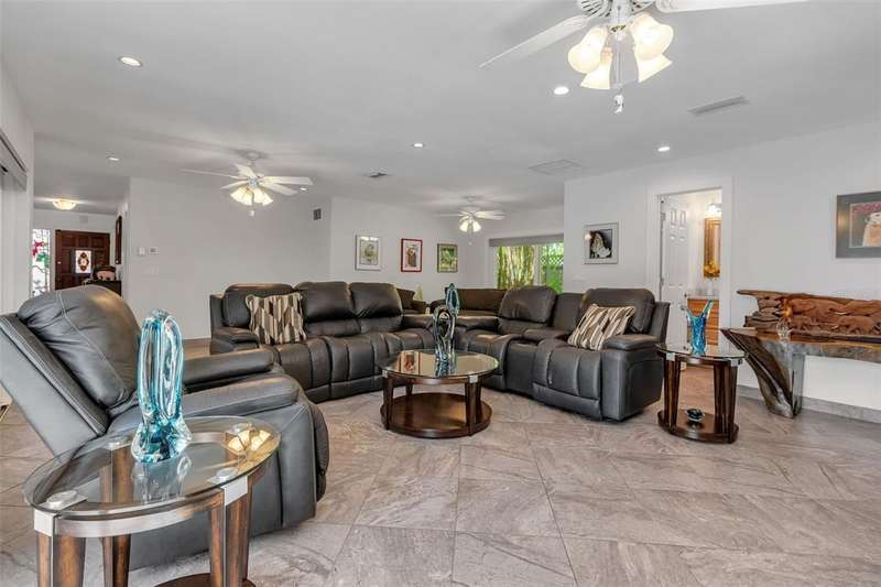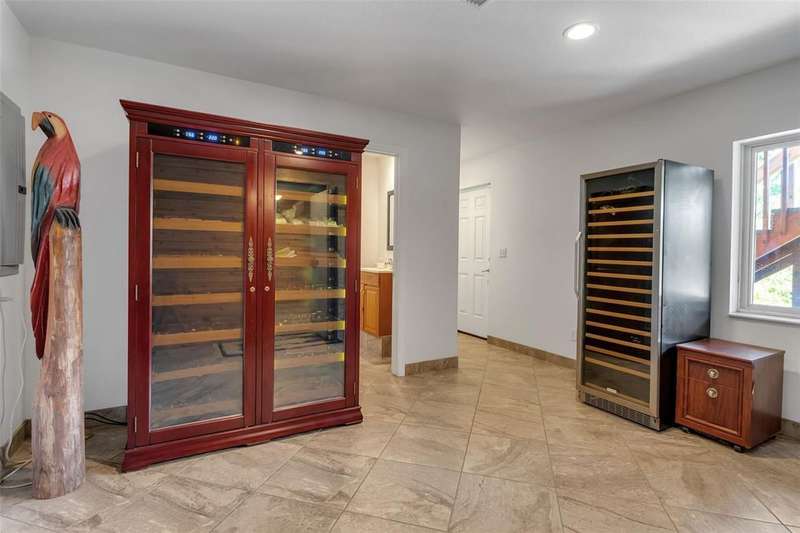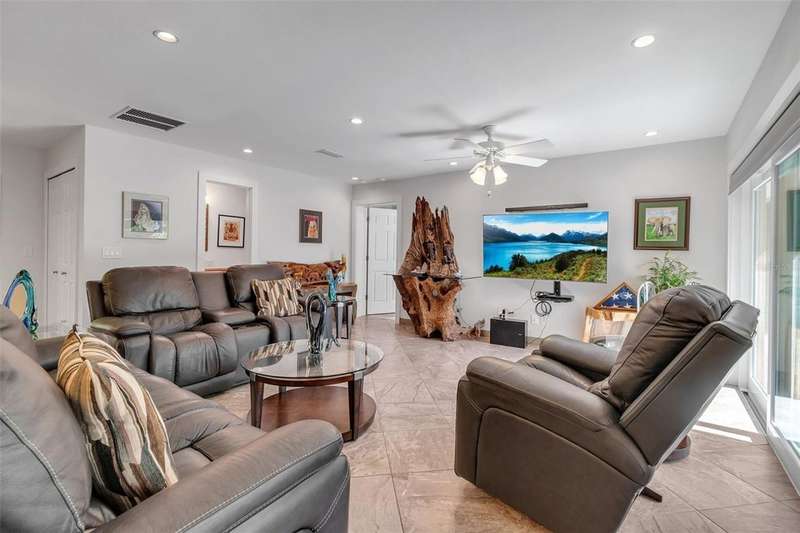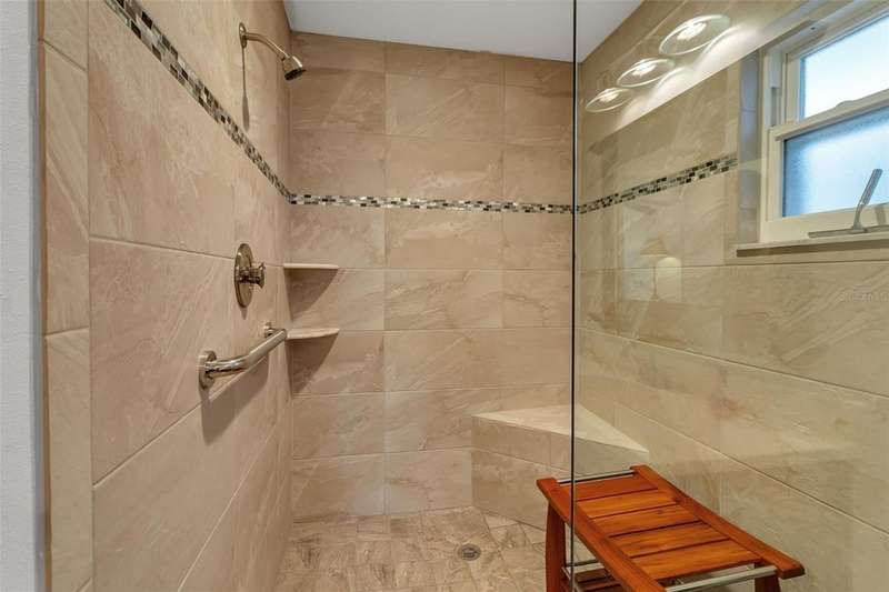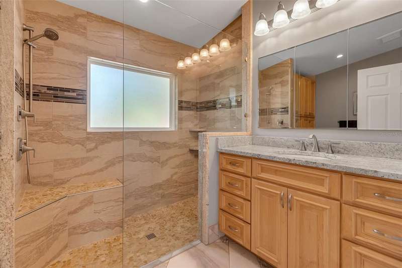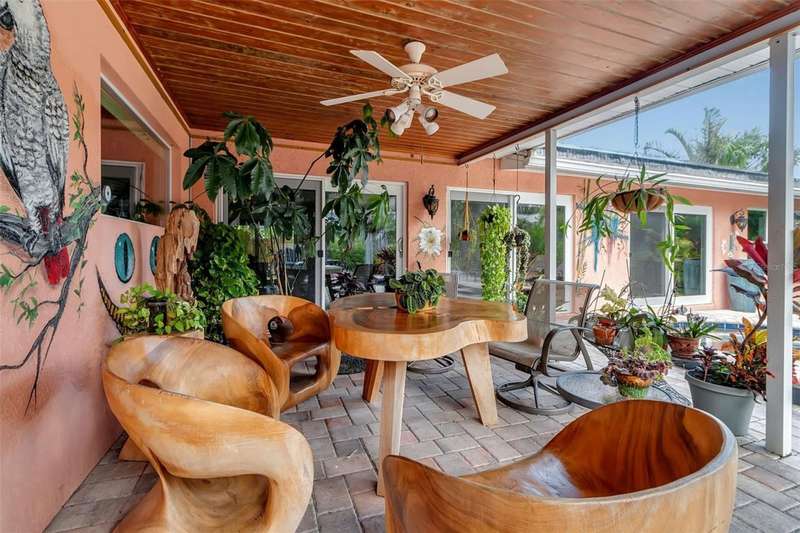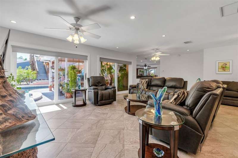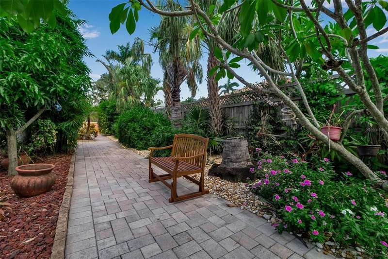 Just 800 feet from Palma Sola Bay and minutes from the white sands of Anna Maria Island, this custom 4-bedroom, 5-bathroom home offers exceptional flexibility, privacy, and indoor-outdoor living. Located on a quiet dead-end street, this property is ideal for multi-generational living, hosting guests, or simply enjoying your own private retreat near the coast.Inside, the split open-concept layout features two spacious primary suites, each with walk-in closets, tile flooring throughout, recessed can lighting, and a thoughtfully designed flow perfect for everyday living or entertaining. The paid-in-full solar system helps keep electric bills impressively low year-round.Outdoor spaces are equally impressive: relax in the screened front lanai or entertain under the covered back patio, overlooking the heated pool and spa. Both the attached and detached garages include electronic screen doors, allowing breezes while keeping bugs out.The detached 30x40 garage is a true standout-featuring 2+ car capacity, a concrete-encased 14' x 9' secure vault ideal for valuables or collectibles, a full bath downstairs, and a guest-ready upstairs with two bedrooms, another full bath, skylights, and a central living area. There's also plumbing and electrical in place to easily finish a kitchenette, making this space perfect for guests, adult children, or a potential mother-in-law suite.The exterior is as beautiful as it is unique, with paver driveways, winding garden pathways, and mature landscaping that includes a bamboo garden and cactus garden for a truly Florida-inspired setting.Located just a short bike ride to Potosueno Park and the Palma Sola Boat Basin, this one-of-a-kind home offers space, style, and location-just 4 miles from the beach.