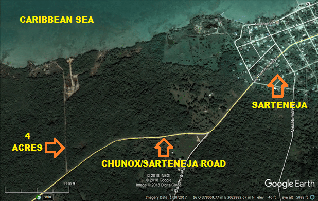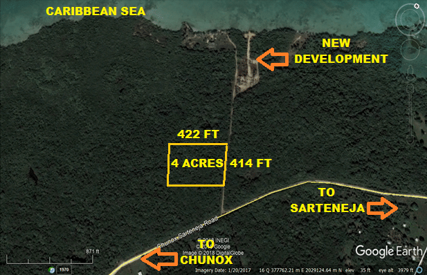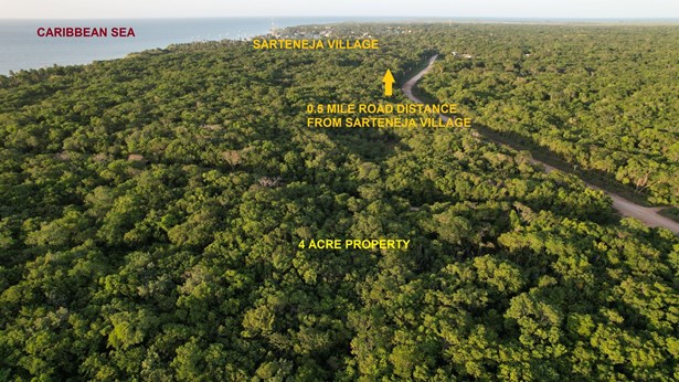 Situated half mile west of the beautiful fishing village of Sarteneja, Corozal District, Belize sits this 4 acre farmland.Acreage offers 414 ft of road frontage x 422 ft deep along an all weather road. Power line passes in front of the land. The parcel is forested with natural vegetation in rich and fertile soil.To get to the parcel it is 3 minute drive from Sarteneja. Parcel is ¼ mile south of the Caribbean Sea and 225 ft from the Chunox/Sarteneja road.The farmland is located in a quiet and peaceful neighborhood.