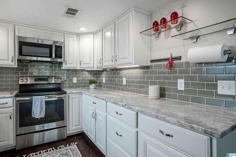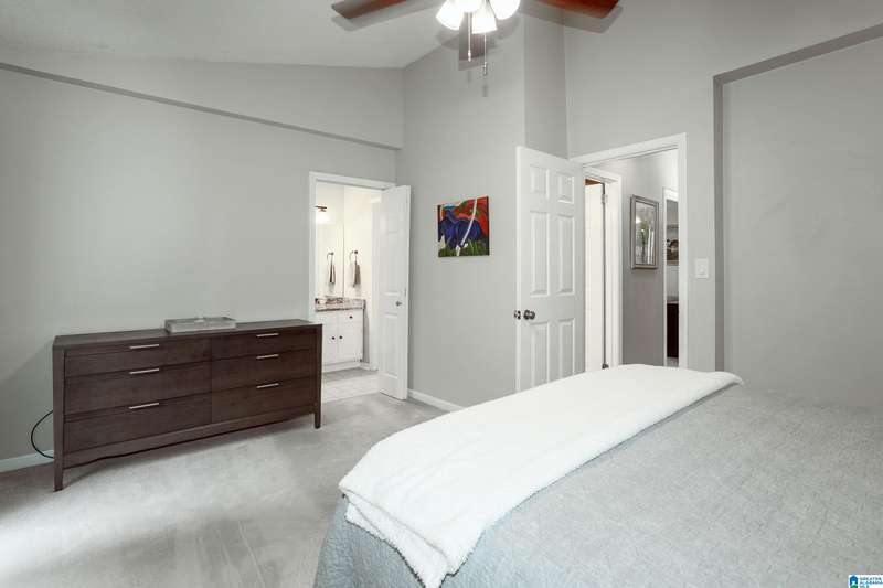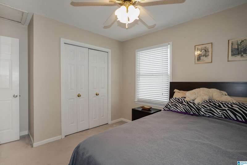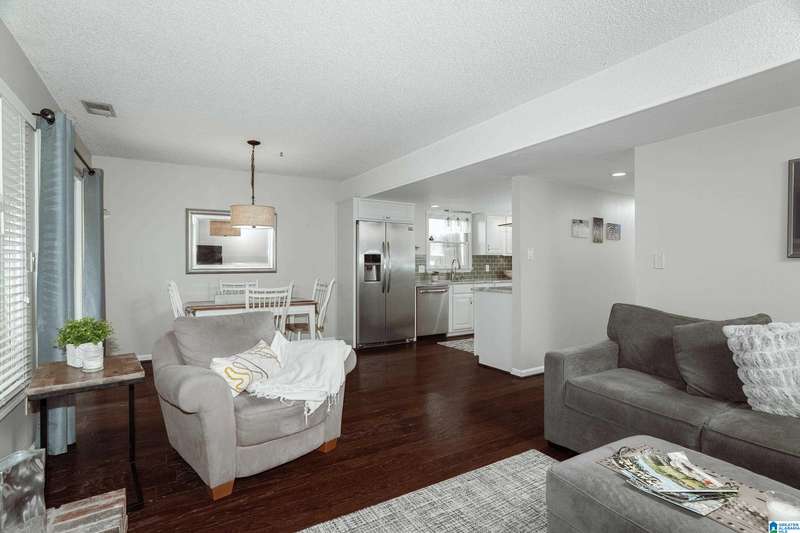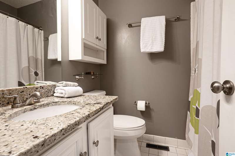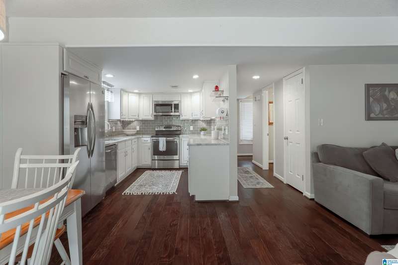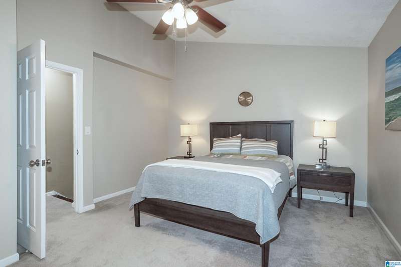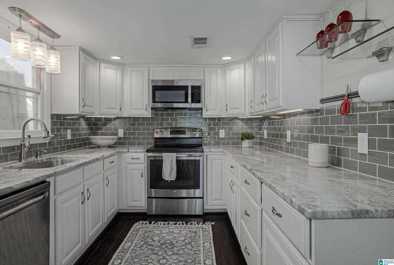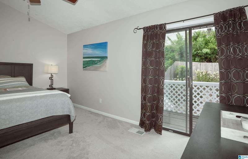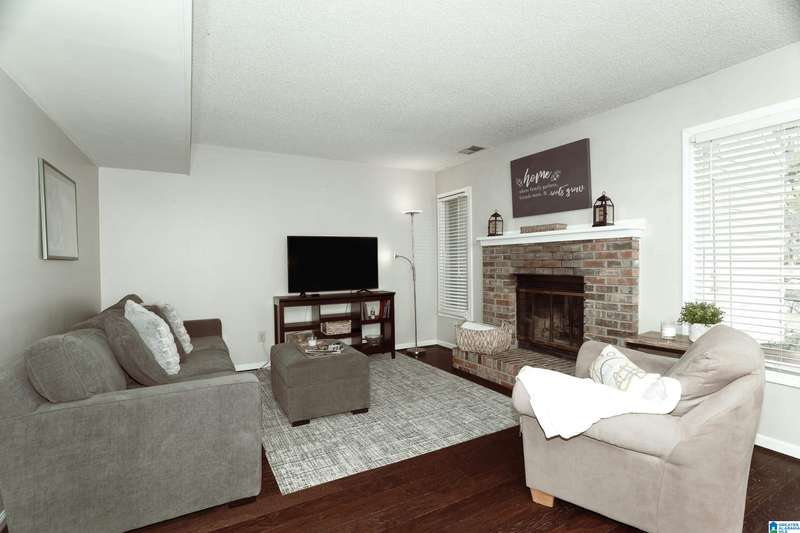 NEW LISTING! ~ THIS IS IT ~ Move in Ready with an UPDATED Kitchen (Newer soft-close White Cabinets, Decorator 'Fantasy' Granite Countertops & Tile Backsplas plus, S/S Appliances) Engineered Hardwood Floors, New Carpet in 2021, Bathrooms all have Granite. 2 Private, Relaxing Decks off 2 (of the 3) Upstairs Bedrooms PLUS a Covered Main Level Patio with PRIVATE FENCED YARD with NICE LANDSCAPING & FANTASTIC Rock garden wall accent. Main Level Garage! Skylights and High Ceilings Upstairs add to the overall volume / size and feel of the home. Quiet Location, Convenient but not high traffic. Award Winning Hoover Schools. SEE IT BEFORE IT SELLS!