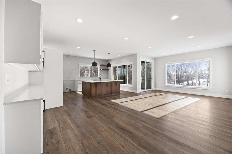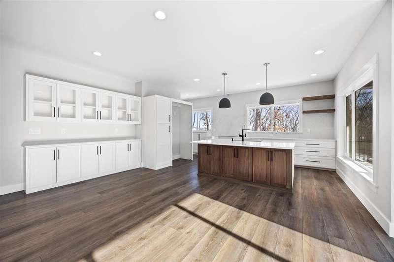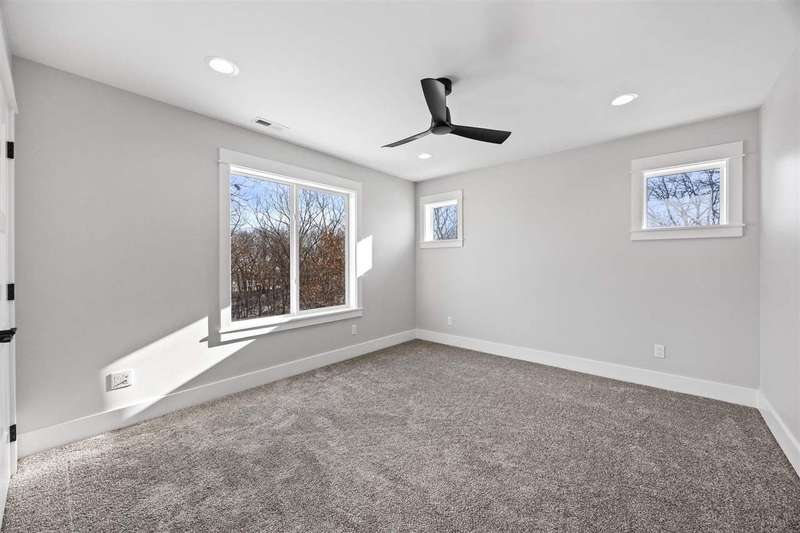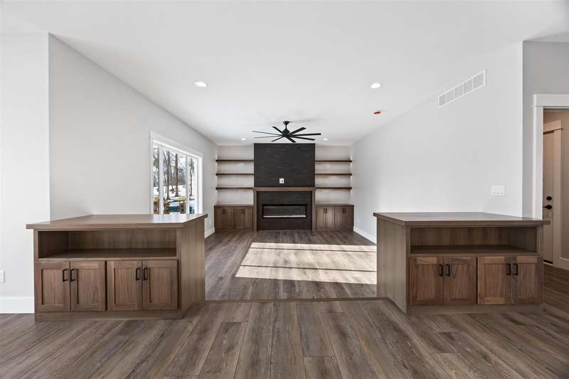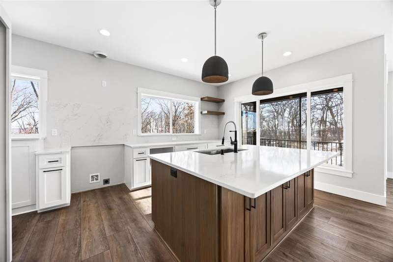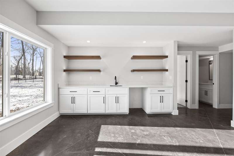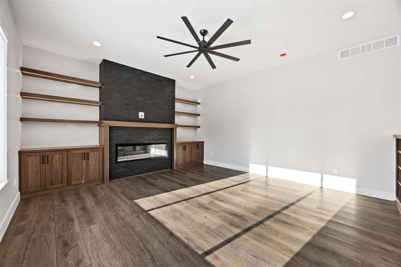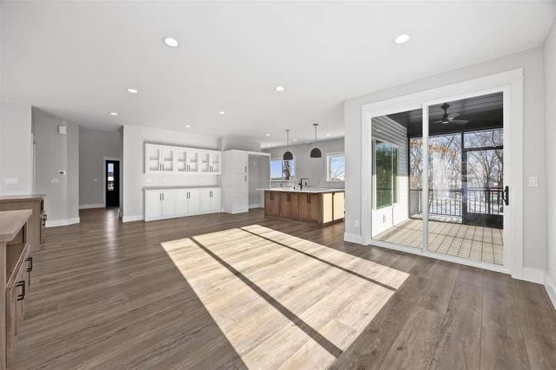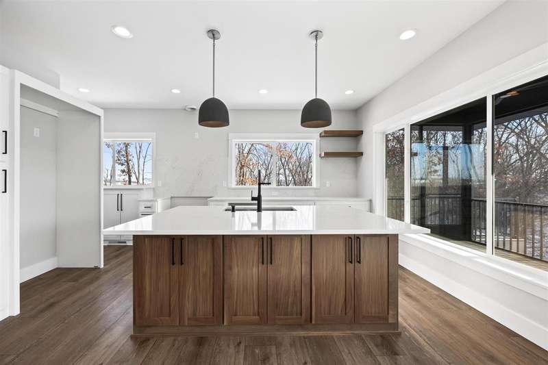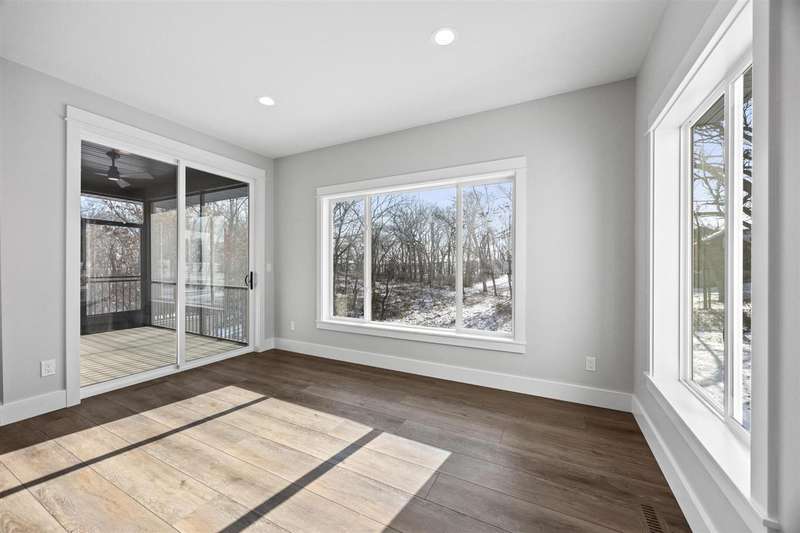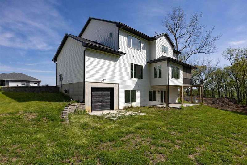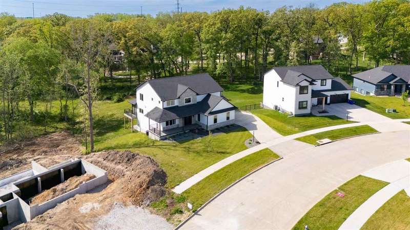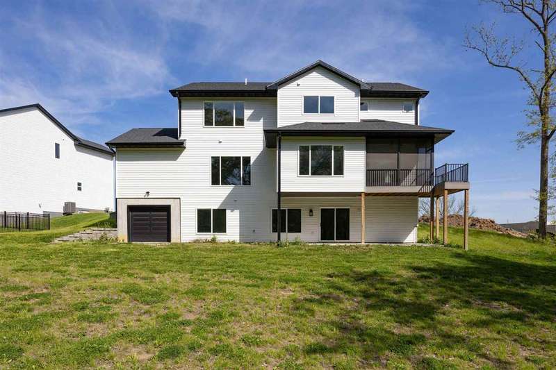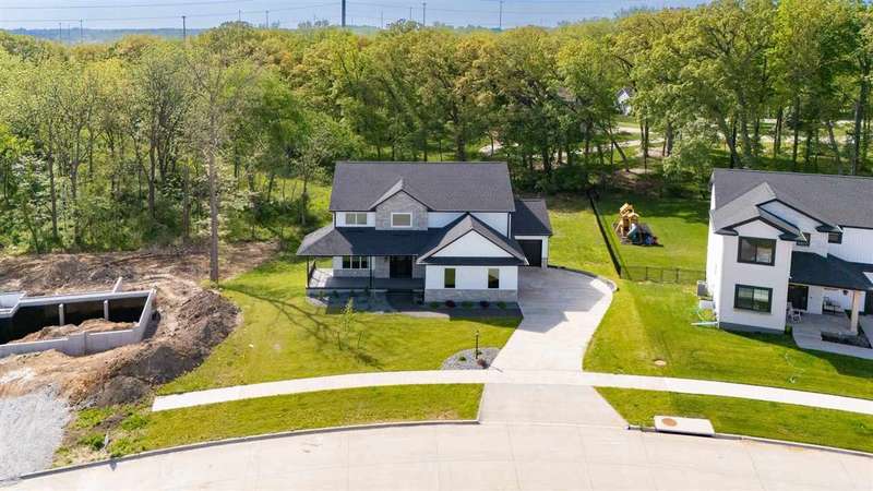 Stunning custom built two-story home on a wooded lot! Features include custom shaker cabinets and trim, a large kitchen and dining area with a nook, light colored quartz countertops, walk-in pantry and a 7 foot walnut island milled from black walnut trees on the property. The best part is buyers can choose their own appliances! Walk out to your screened-in porch to enjoy your morning coffee surrounded by nature or recharge on the expansive front porch. The kitchen overlooks the cozy sunken living room with walnut shelving and an electric fireplace. Floating stairs lead to the spacious upper-level with 4 bedrooms. The luxurious primary ensuite is an oasis with a trey ceiling, a huge soaking tub, tiled shower and heated floors. The walkout lower-level features 2 additional bedrooms, black polished concrete, a gas fireplace, wet bar, and a huge bonus room with epoxy flooring that could be used as a home gym or workshop. $18k towards appliances to be picked out and installed prior to closing. Seller will credit $3,725 towards a custom primary closet.