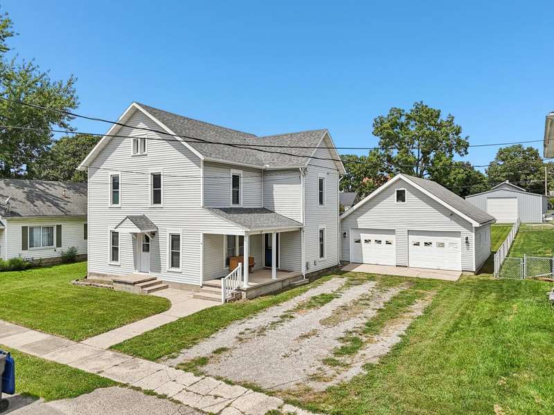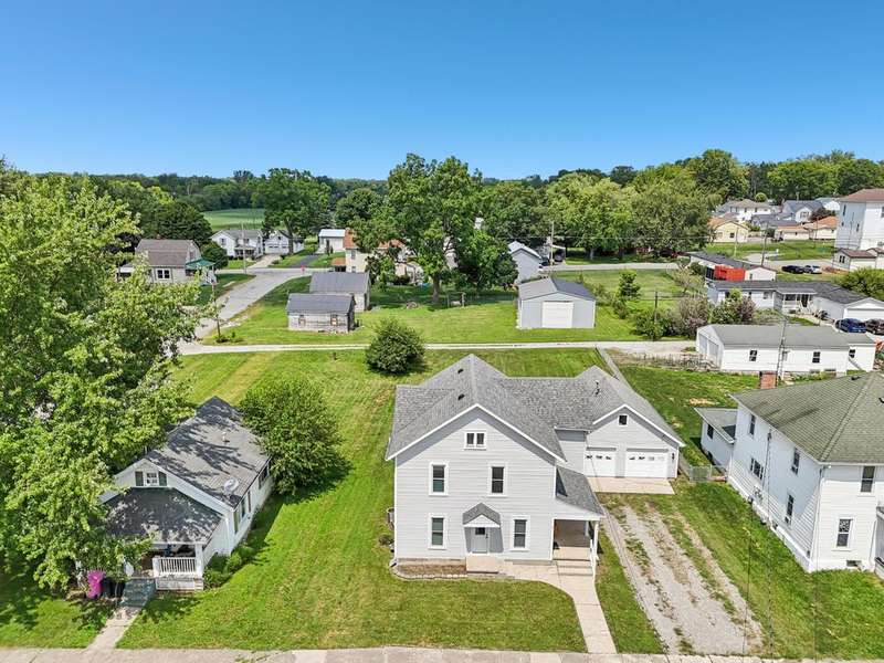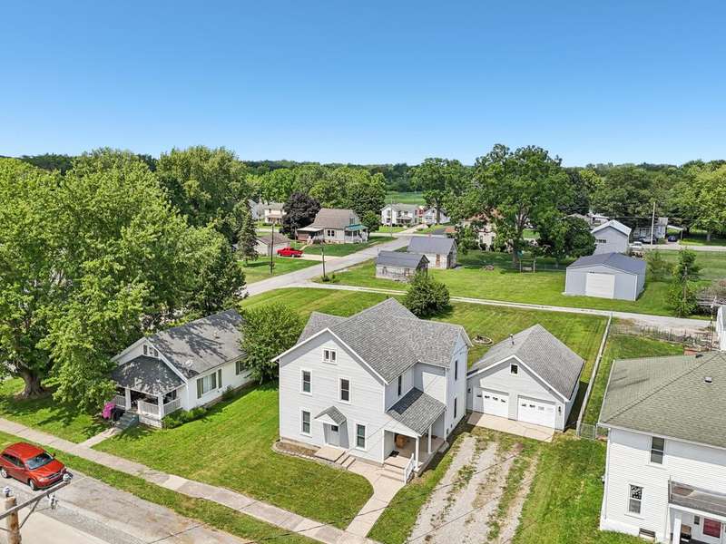 If small town living is what you are looking for; this may be your new home. Features 4 bedrooms and 2 full baths (one on each level) main level laundry and main level bedroom and a kitchen to die for. Updates include: 2015-windows, 2016-roof and within the last 3 years, full kitchen remodel, downstairs bath including plumbing. Also, in 2022, new hot water heather, softener and whole house filtration system. New carpet throughout the home in 2024. Also features outdoor entertaining space as well as green space for your pets. Oversize 2 car detached garage is heated and has plenty of space. Electrical has been updated over the last 10 years and new distribution panel and service wire will be completed prior to closing. All you have to do is move in.