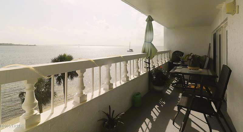 This beautifully updated 1-bedroom, 1-bath waterfront condo offers over 1,090 square feet of open, stylish living space. With a clean, modern design and breathtaking panoramic views from St. Andrews Bay to the Gulf of Mexico, this home is perfect for enjoying peaceful mornings with coffee or winding down in the evening while watching dolphins play and sunsets unfold from your private balcony.The spacious kitchen features granite countertops, ideal for both everyday living and entertaining. The primary bedroom includes a walk-in closet, an elegant en-suite bath, and sliding glass doors that open directly to the balcony, filling the space with natural light and spectacular sunrise views.Additional highlights include a reserved parking space, ample guest parking, and a secure, locked lobby for peace of mind. Community amenities offer the best of coastal living--enjoy a large pool, covered pavilion, clubhouse with kitchen and bathrooms, and a fishing and boat mooring dock equipped with electric, water, and a fish-cleaning station. Boats may tie up for up to 48 hours, and there's even an on-site car wash station for added convenience.Located just steps from the heart of Downtown Panama City, you'll be close to top restaurants, shopping, and entertainment while enjoying the comfort, beauty, and convenience of this exceptional waterfront lifestyle.