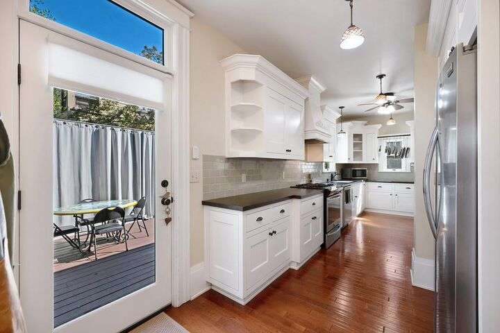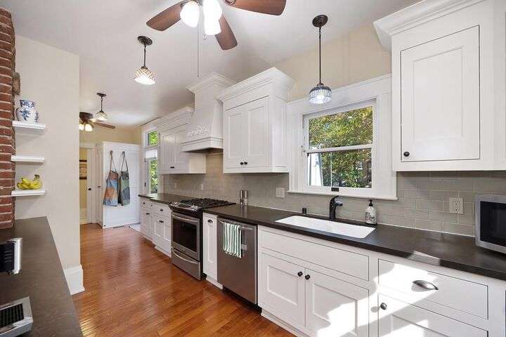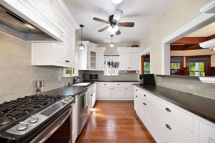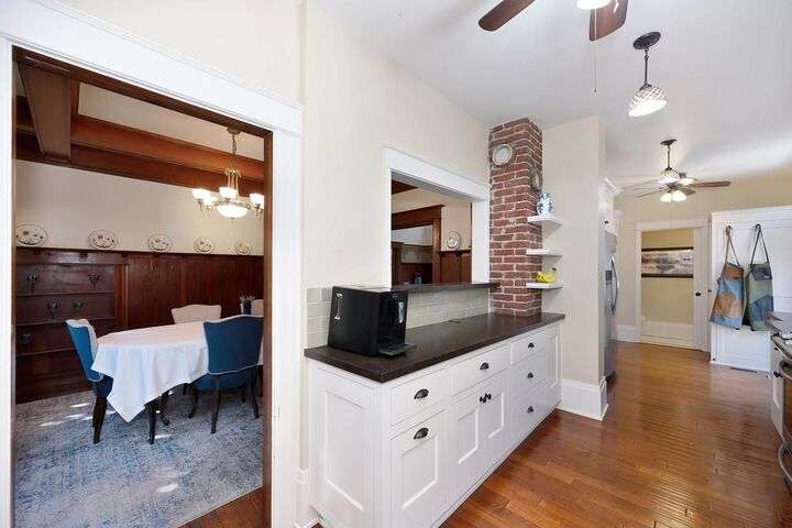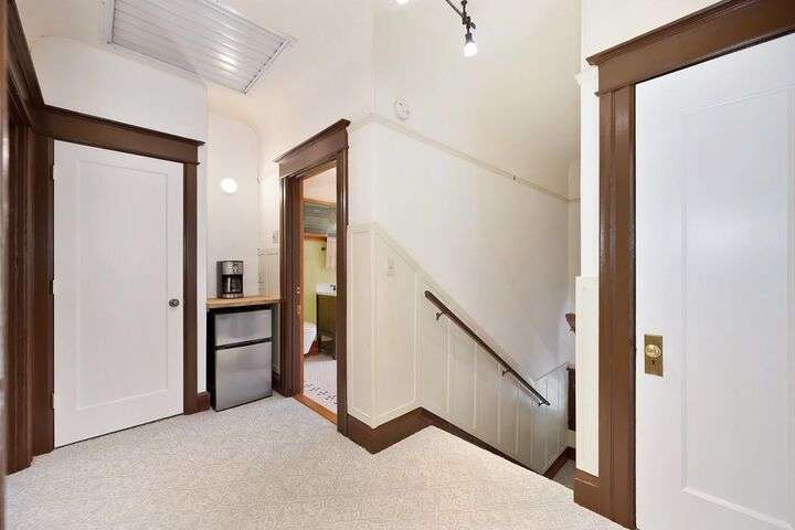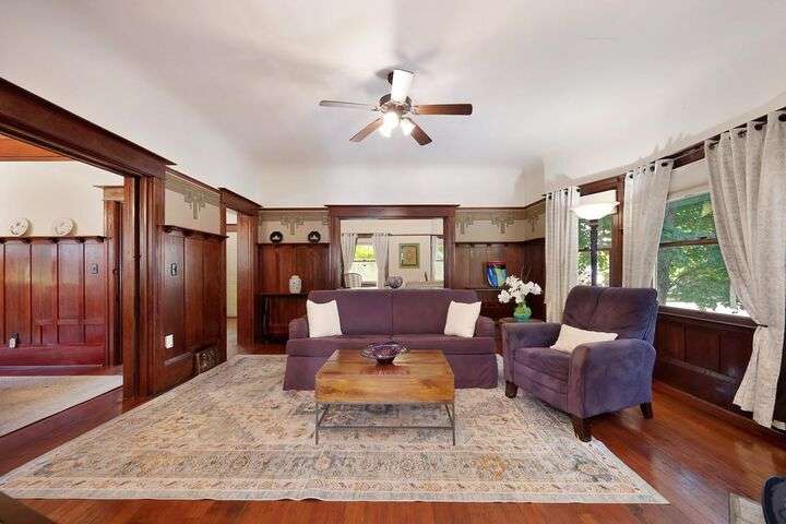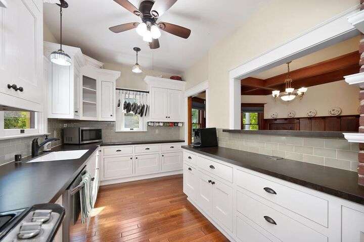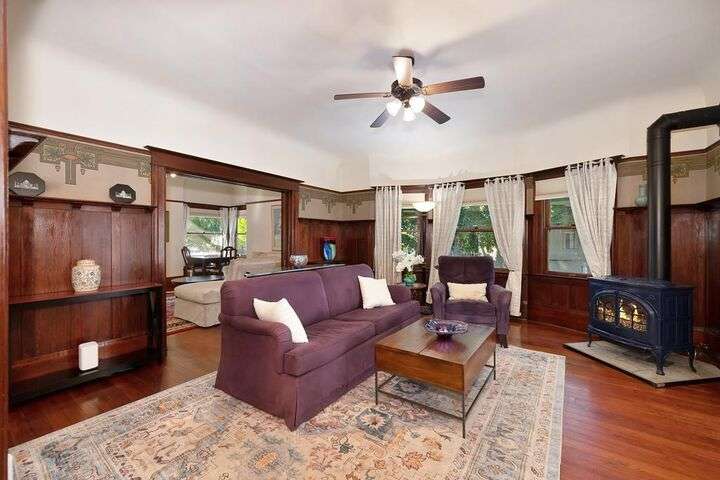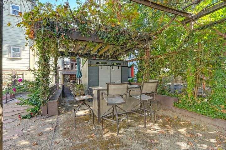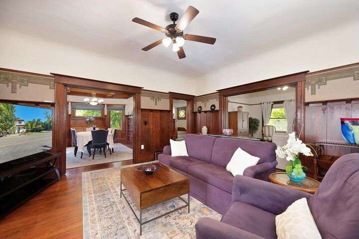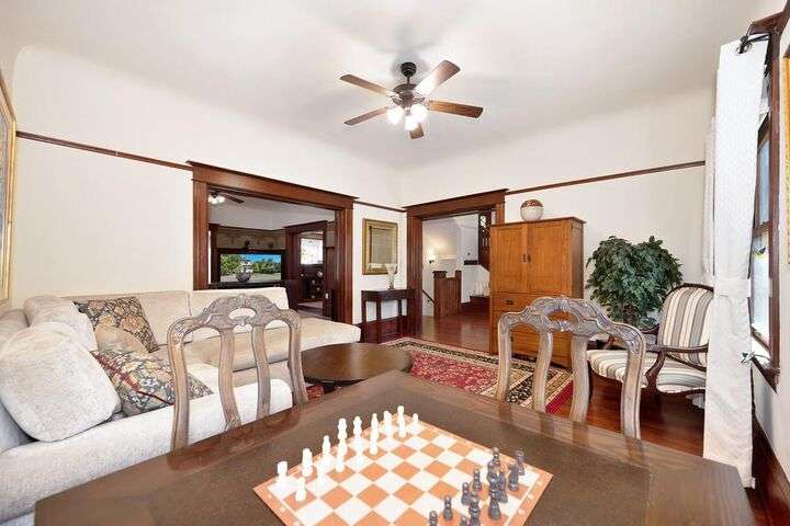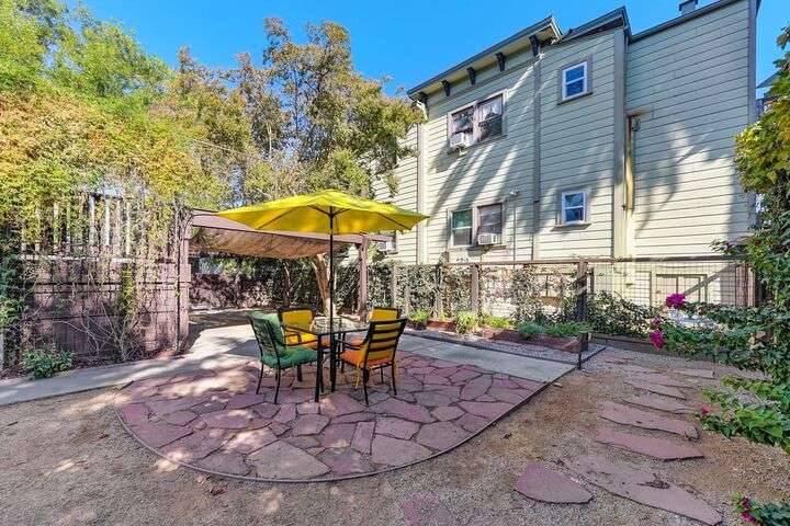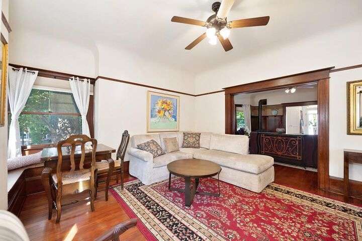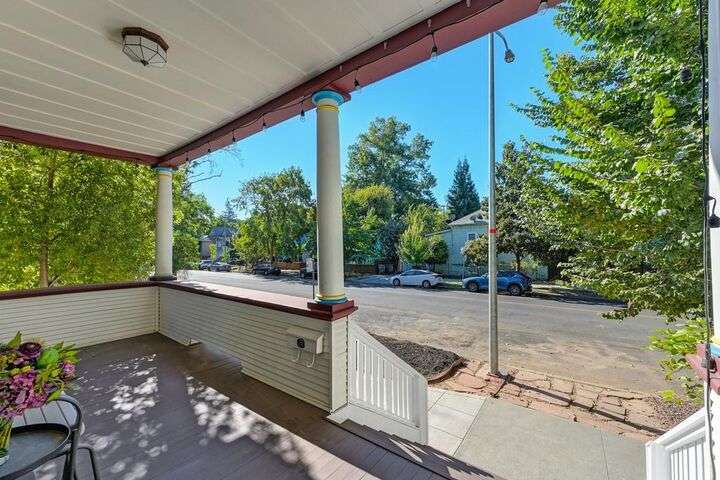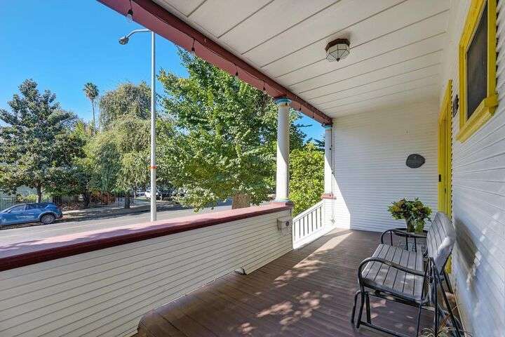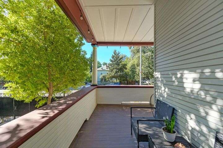 Gorgeous 1912 craftsman home in Mansion Flats w/ period details on huge corner lot updated for modern living. Gracious entry w/ wrap-around porch leads to an open floor plan w/ cove ceilings, Bradbury wallpaper, timeless wainscoting and original wood floors. The front parlor w/ corner window seat opens to a den w/ cozy gas stove and bay window. The formal dining room has wood clad beamed ceilings w/ service window into a stylish chef's kitchen w/ quartz counters, stainless steel appliances, gas range and abundant storage. Off the kitchen is an enormous deck for social gatherings. A grand stairway leads upstairs to the main bedroom w/ remodeled en-suite bath and walk in shower. Two guest bedrooms share an updated guest bath including dual vanity and claw foot tub under stained glass windows. The remodeled lower level provides a large in-law suite w/ private entry. The large side yard is a park-like setting w/ driveway and pedestrian gates, custom iron fence, storage shed, mature orange trees, raised planter bed, flagstone patio and bocce ball court under a grape vine covered pergola. Energy updates include custom dual pane windows, two zone HVAC, and a tankless water heater. Centrally located w/ walking distance to light rail, parks, shopping, restaurants and entertainment.