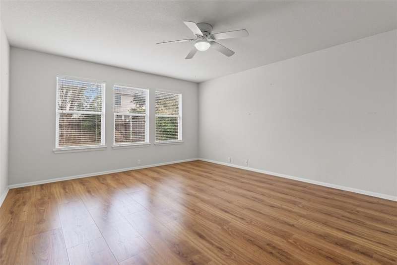 This well-maintained single-story home in Summerlyn offers a bright and open layout with three bedrooms, two full baths, hardwood floors, and no carpet. The kitchen includes plenty of cabinet storage, a walk-in pantry, and generous counter space for everyday cooking and entertaining. The primary suite overlooks the backyard and features a separate tub and shower, double vanity, and a spacious closet. Two major updates add peace of mind. The roof is less than two years old and the HVAC system was replaced in 2022. Summerlyn residents enjoy a community pool, multiple parks, a splash pad, sports areas, and walking trails. The location provides quick access to 183A, nearby shopping, and future conveniences like the new Target and Costco arriving in 2026. This is a great opportunity to get into a popular neighborhood and make this home your own!