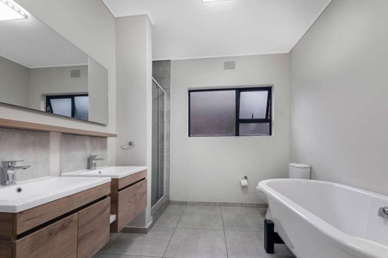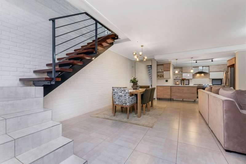 Where refined elegance and modern convenience come together flawlessly. This four-bedroom masterpiece, crafted with impeccable attention to detail, offers more than just a house?Çöit is a lifestyle upgrade. Featuring full solar power and a wealth of additional features, this home is fully prepared and move-in ready with everything you need. Throughout the property, beautiful finishes add a touch of sophistication to every space. Upstairs, the expansive main bedroom boasts a luxurious en-suite bathroom and ample cupboard space. Two additional spacious bedrooms share a full bathroom, while the fourth bedroom features its own en-suite with a shower. A versatile open study or pyjama lounge provides the perfect additional space for work, relaxation, or family time. The stylish kitchen features a gas stove and hob, and a separate scullery with space for three under-counter appliances. The living areas open seamlessly to the enclosed patio, which is fitted with stacker doors and a built-in braai, offering an ideal space for entertaining or simply relaxing. Convenience and security are ensured with an alarm system, a gas geyser, and a double, tiled, automated garage that provides direct access to the home. Discover the ideal combination of luxury and contemporary comfort in this exceptional home.