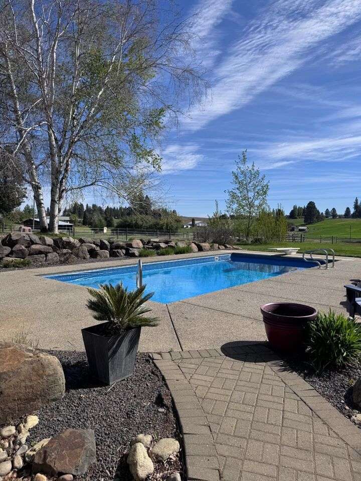 Life in the Country! No Need for a Lake Place or Summer Camp! Your Own Retreat...Pool, Horse Barn & Shop w/ Mesmerizing Views--Pasture, Woods! Lovely Mature Landscaping! Chicken Coop, Goat House, Raised Beds, Dressage Arena (Outdoor). 1983 Daylight Rancher, Totally Remodeled, 2022-2025. New Kitchen Appliances, Quartz Counters, Primary Bath, Wood Ceilings, Doors & Hardware, Flooring, Deck. Wine Room--AND! HVAC (2023), Roof (2025), Interior & Exterior Paint (2023-2024). Classic Cedar Barn--4 Stalls w/ Runs, Auto Waters, Concrete Aisle & Hay Storage, Metal Roof, Heated Tack Room. Dressage Arena, 4 Pastures, 30' X 40' Shop w/ 14' Doors. Pool W/ Views. Electric Safety Cover. 6.6 Acres $850,000. With Additional 4.6 Acres or 5.77 Acres Add $200,000 Each--$1,050,000 or $1,250,000. Short Term Owner Contract or Contingent Offer Possible. 5 Minutes to Freeman Schools, 22 Minutes to Downtown Spokane or Airport. 12 Minutes to Shopping, Gyms, Bistros and Trader Joes.