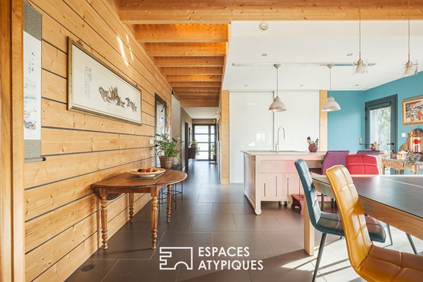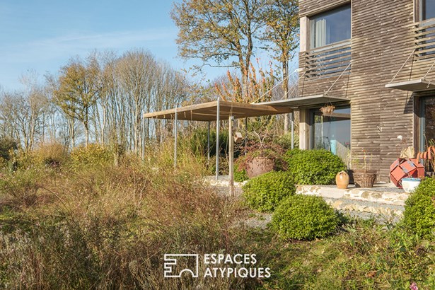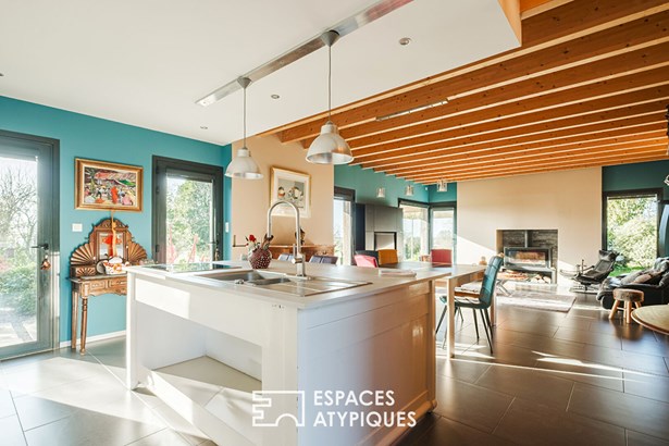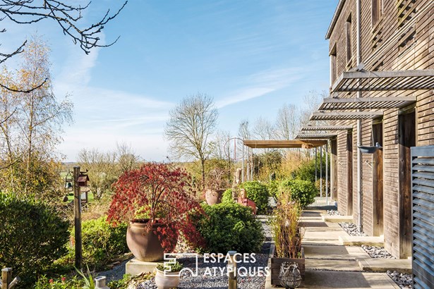 Located in La Boissiere-en-Gatine, this architect-designed, timber-framed house blends harmoniously into its unspoiled natural surroundings. Set on over four hectares of land, this property offers a rare combination of contemporary design and spacious living areas, promising a truly secluded lifestyle.