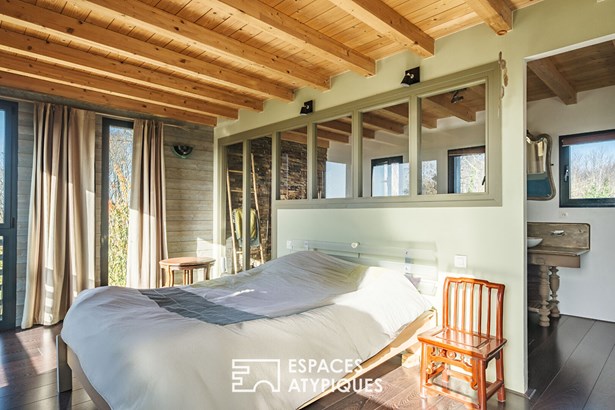 The land unfolds into various plots of farmland and an orchard, enhancing the serenity of the setting. A garage and a parking space for a campervan complete the amenities of this property. Far from the hustle and bustle of the city, this bucolic environment remains connected to everyday necessities, less than 10 minutes away by car. This property stands out for its unique architecture, its abundant natural light, and the rarity of such land, offering a true opportunity to live in harmony with nature.