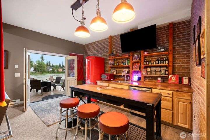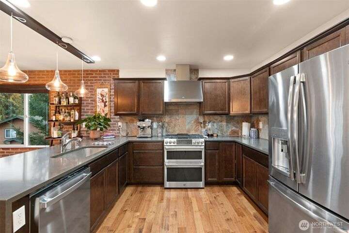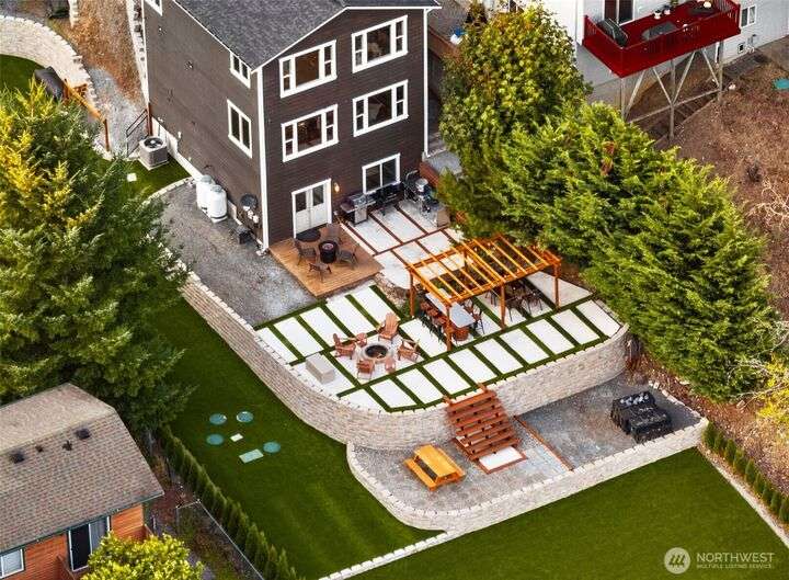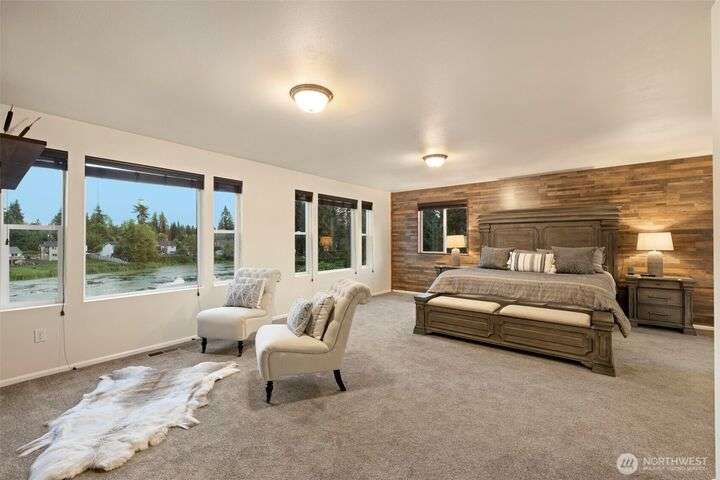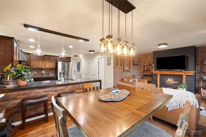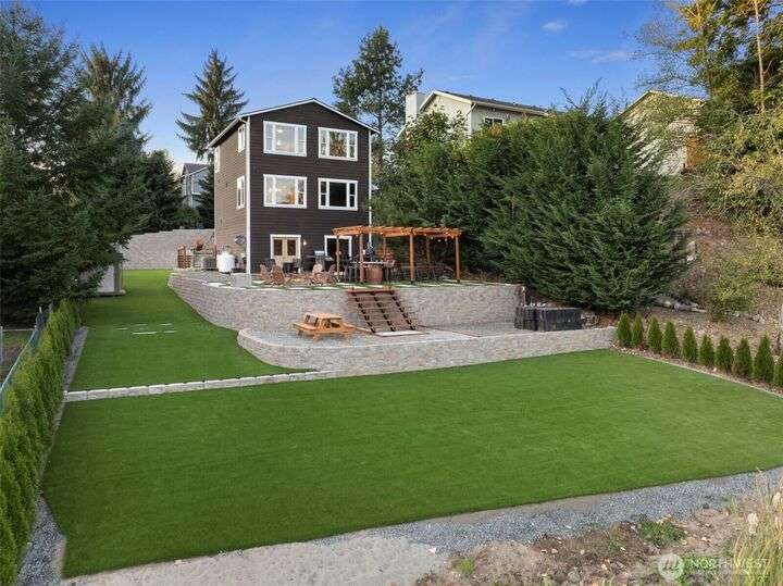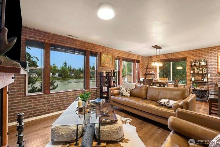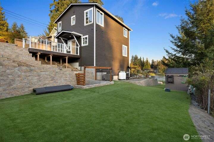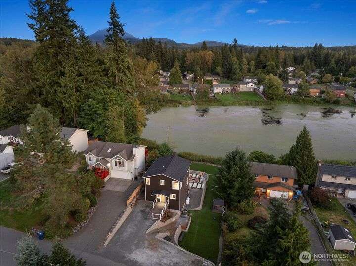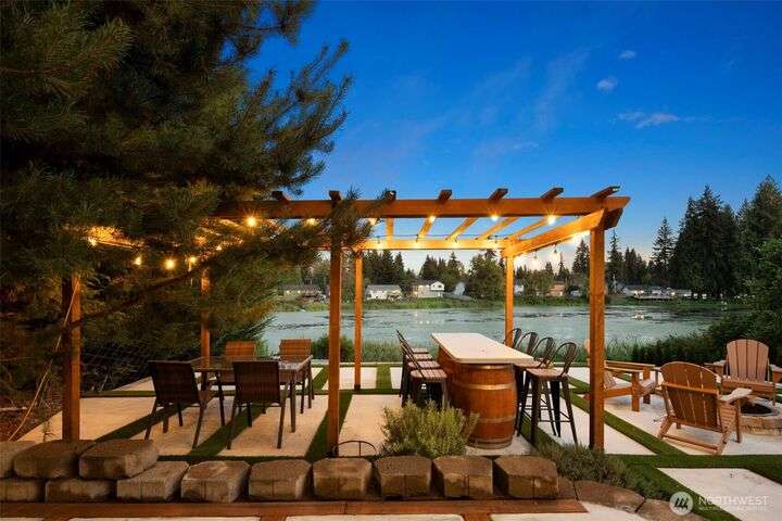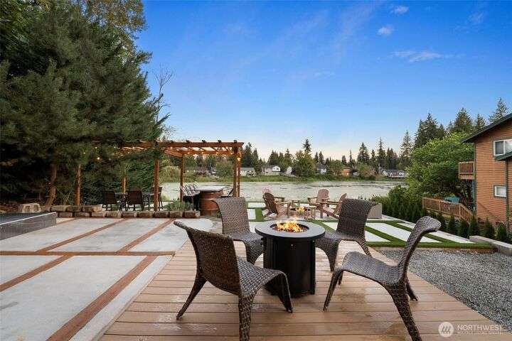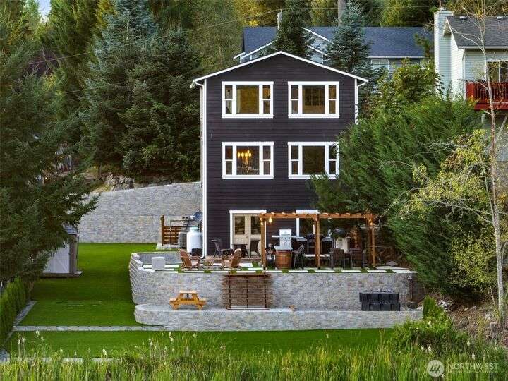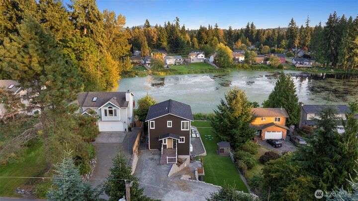 Modern custom home in gated Rainbow Springs, where sweeping lake views and refined finishes define every level. The main floor features Brazilian oak floors & a chef’s kitchen with solid-surface counters, accent tile, breakfast bar, & stainless appliances, seamlessly flowing into an inviting living area with fireplace & picture windows. The upper level is a spacious primary retreat with sitting area, spa bath, walk-in closet, & fireplace. The daylight level with separate entry access, kitchenette, bath, laundry, & flexible studio/second bedroom offers guest space or potential income. Outdoor living shines with tiered patios, composite deck, artificial turf, firepit, hot-tub-ready pad, storage shed, new pontoons, & an efficient heat pump.