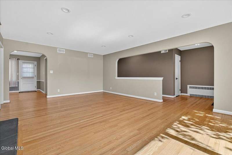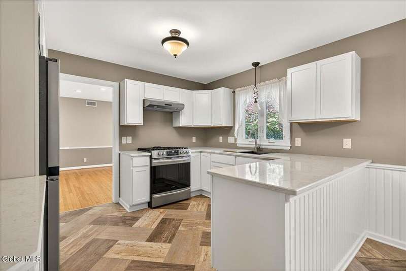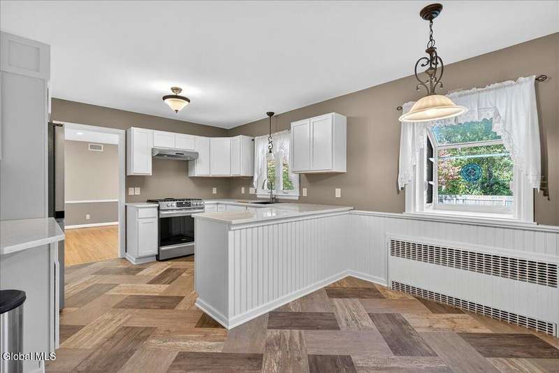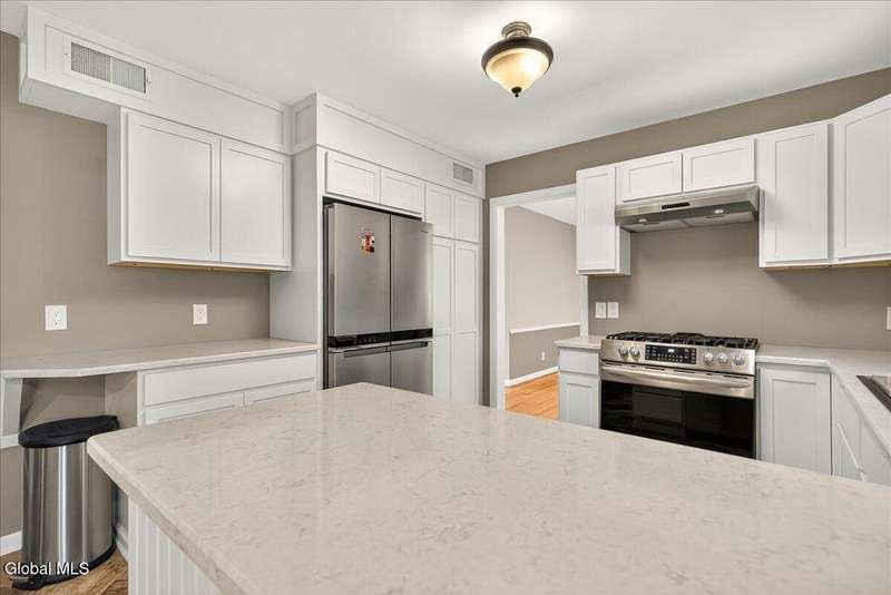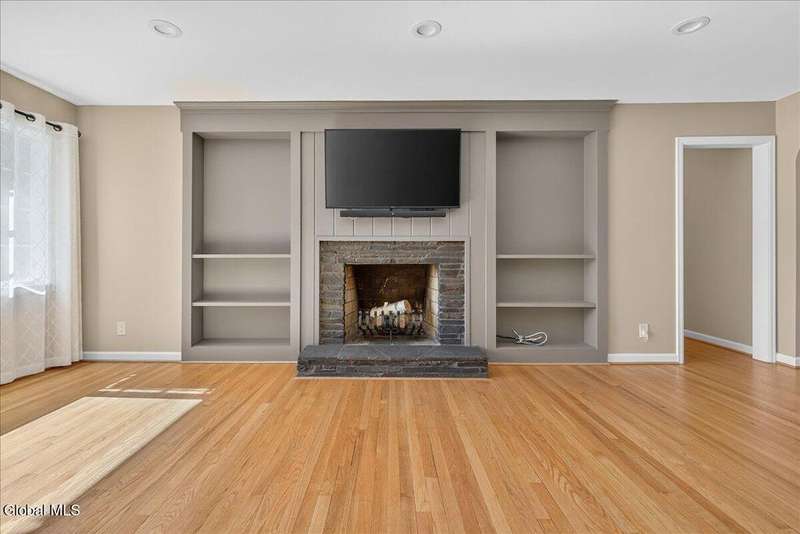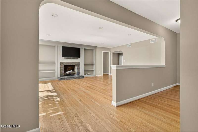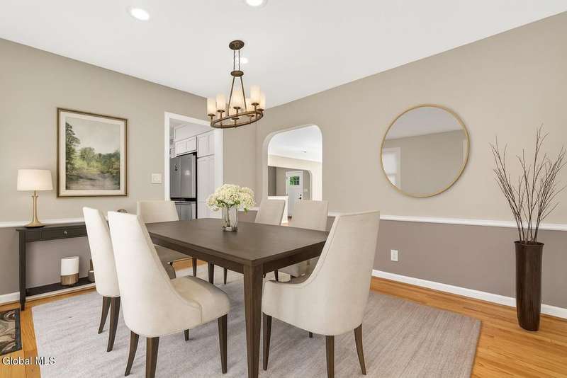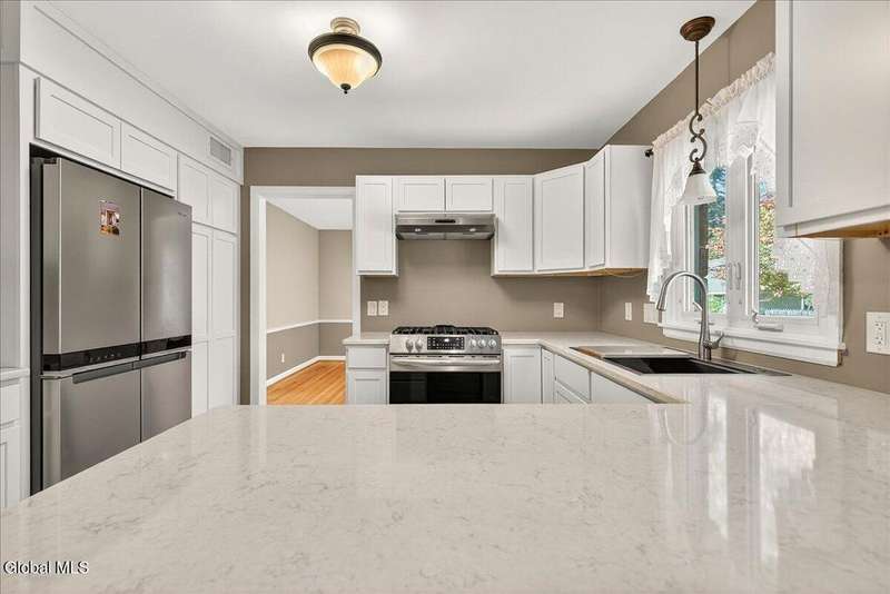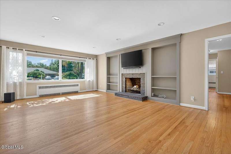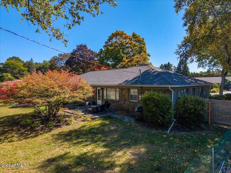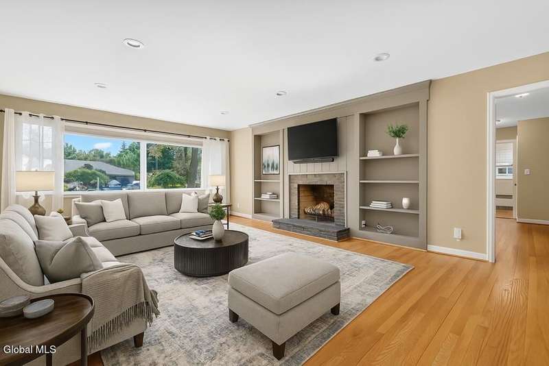 Welcome to this beautifully maintained and wonderfully updated 4-bedroom, 2-bath ranch-style home nestled on a serene 0.42-acre treed lot in the highly sought-after North Colonie School District. Step inside to discover 2100 sq ft of comfortable living space featuring a spacious living room with a wood-burning fireplace, picture window, and gleaming hardwood floors. The formal dining room and eat-in kitchen?complete with quartz countertops, gas stove, dishwasher, refrigerator, and ready-for-undercabinet lighting?offer both elegance and functionality. Enjoy year-round comfort with central air conditioning and gas boiler hot water heat delivered through classic cast iron radiators. The home boasts a 200 Amp electric service with all-new switches, outlets, and panel box. Laundry is conveniently located on the main floor and includes a new Miele stacked front load washer and dryer.Additional highlights include: *Stone exterior with a roof and chimney just 2 years old. *Full basement with untapped potential and a fireplace. *Two-car garage *Fenced backyard (installation in progress) with a stone patio. Enjoy tree lined streets and the neighborhood atmosphere. Students will attend Loudonville Elementary and Shaker High School.This home blends classic charm with modern updates and is ready for your personal touch. Schedule your showing today and envision the possibilities!