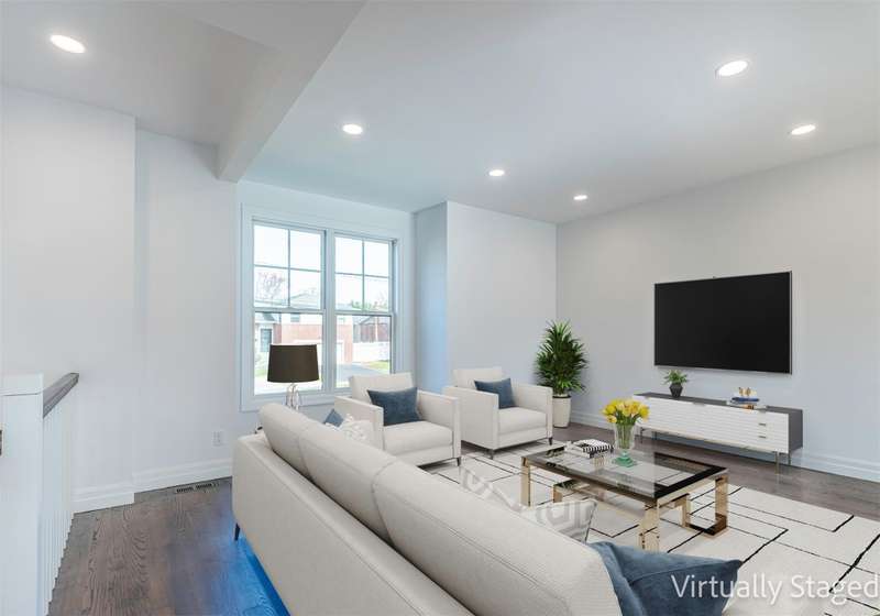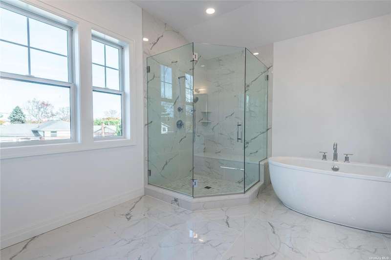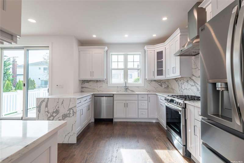 Welcome to Your Dream Home in Merrick! Located in the desirable Lindenmere section just south of Merrick Road, this brand-new Modern Farmhouse Expanded Split offers 4 bedrooms, 2.5 baths, and exceptional design across multiple levels. The open-concept layout features a gourmet kitchen with LG stainless steel appliances, quartz countertops, and sleek cabinetry, flowing seamlessly into the living and dining areas, perfect for entertaining. The private top-level primary suite includes a custom walk-in closet and spa-like bath with dual vanities, soaking tub, and separate shower. Additional highlights include a home office that can serve as a fifth bedroom, a finished basement with natural light, three-zone HVAC, oak floors, Andersen windows, spray foam insulation, and a one-car garage with a car charging outlet. Enjoy outdoor living with a TimberTech deck, PVC-fenced yard, and professional landscaping. Conveniently located near schools, parks, golf, shopping, and transportation with optional neighborhood pool club access. This is the lifestyle you have been waiting for!