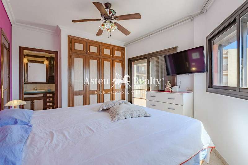 Upstairs, you will find three bedrooms with fitted closets and two bathrooms. The master bedroom has an en suite bathroom, with access to a large terrace that occupies the entire front of the house with sea views and three different accesses to this terrace.