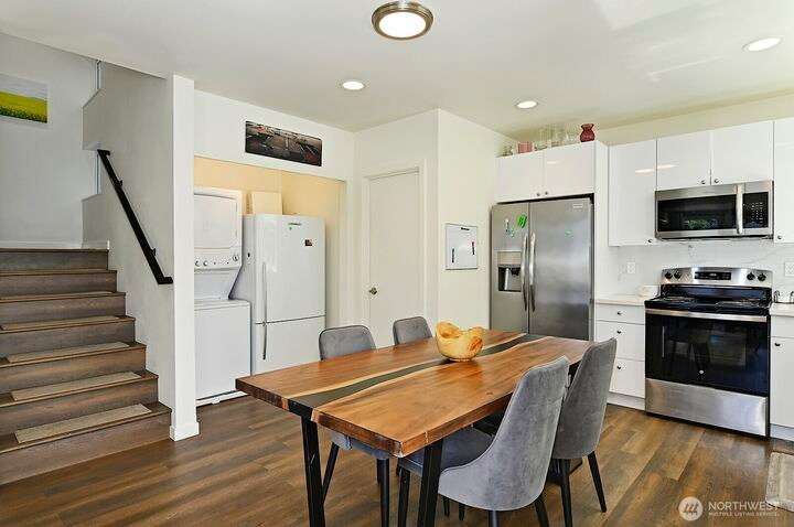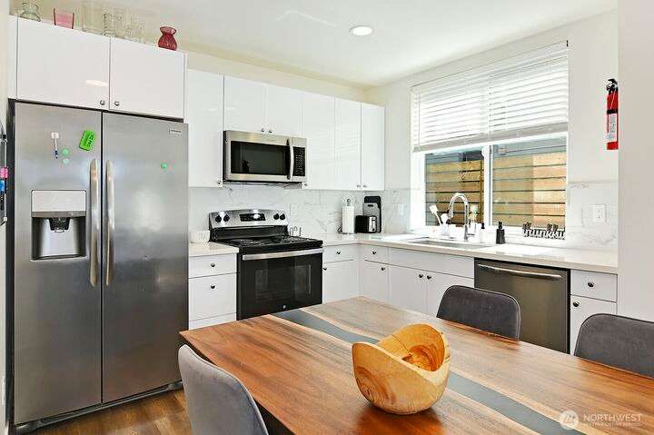 Prime UW 9-Bedroom built 2019. This one is fully furnished: sharp living room & dining room set, big kitchen all stocked & ready to cook & serve, quality beds & linens, 10 mounted TV screens, etc. White & chrome, quartz & steel kitchen w/ faux marble backsplash, handsome LVP floors, three full baths, nice AC & more. Thoughtful design for highly efficient floor plan, all bedrooms have big windows & tall ceilings. University Area Income w/ uber low upkeep + peace of mind: structure, systems & safety all to the latest codes. Very long term tenants just moved, now vacant & ready to see, available for your UW Kids, short term rental uses, etc. Excellent UW location, see fun dining spots + Ravenna Cowen Park and Boulevard bike trail to Greenlake.