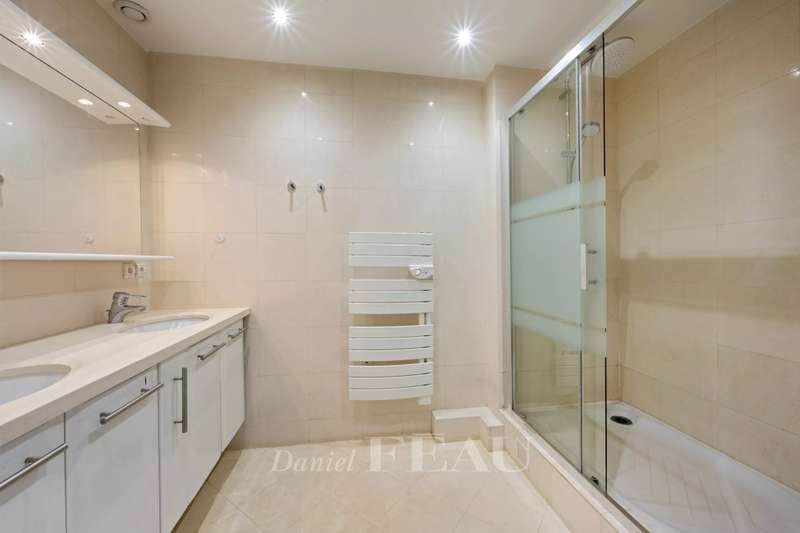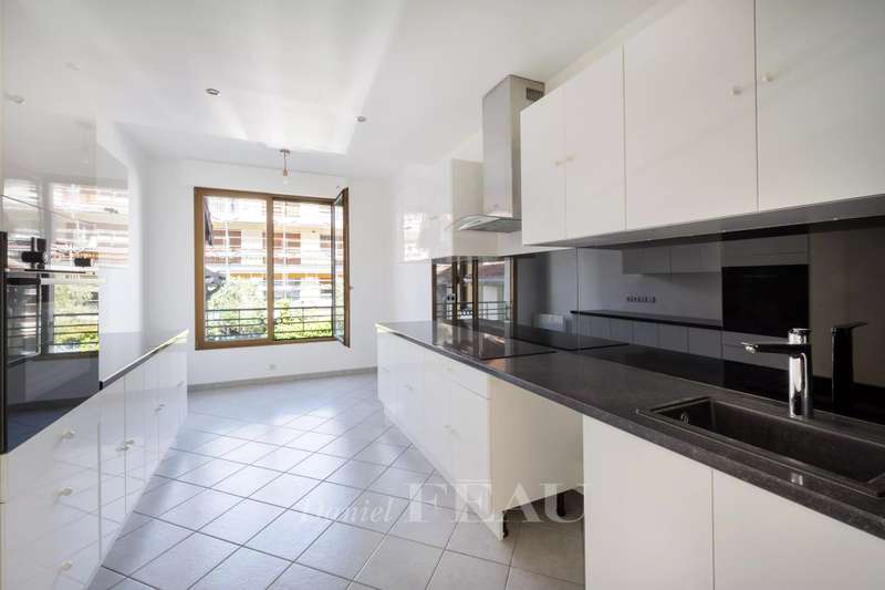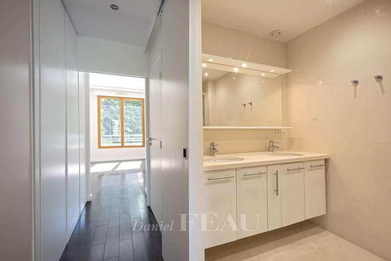 Saint James neighbourhood. This bright and peaceful 189 sqm dual-aspect apartment is on the 1st floor of a well-maintained and refaced co-ownership dating from 2005. It includes a 78 sqm double living/reception room opening onto an east-facing terrace, a kitchen with dining facilities, a master suite with a shower room/wc, a dressing room and a study, two further bedrooms, a shower room and a separate wc. With a parking space and a cellar. In a convenient location near the woods, the shops and transport networks. A second parking space may be acquired at extra cost.