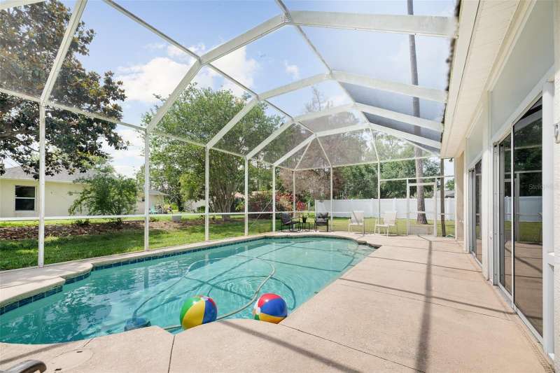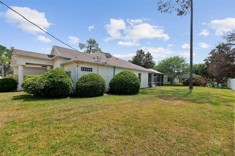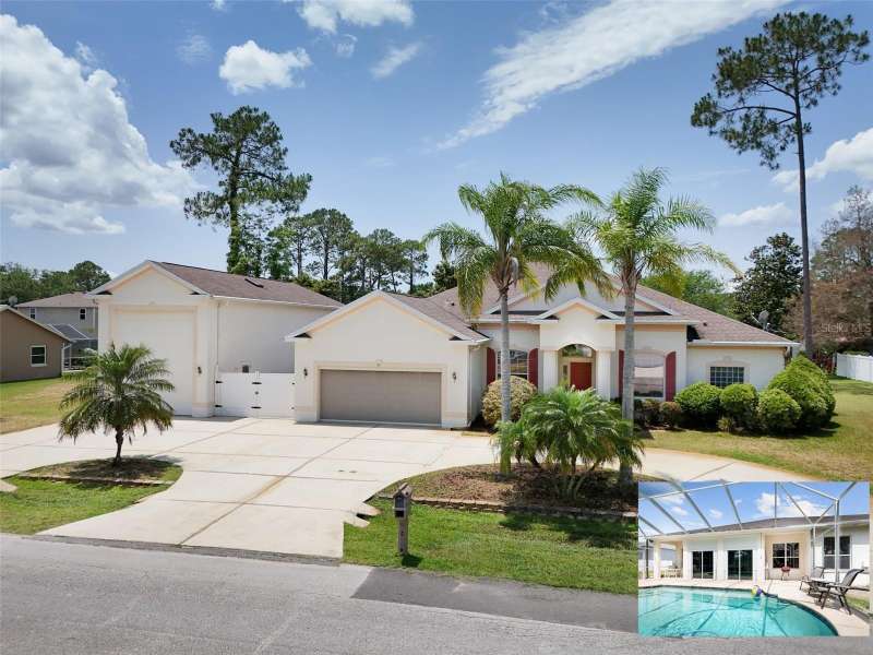 This home has it all—space, style, and smart design! Built across two standard lots, this beautifully maintained 2,726 sq. ft. residence offers over 3,600 sq. ft. of total lot space and exceptional room for both indoor and outdoor living. With two circular driveways and ample parking, it's ideal for hosting family and guests—or storing your RV, boat, camper, motorcycle, or golf cart. There's even a dedicated open garage bay next to the two-car garage just for your golf cart or additional storage. Inside, the thoughtfully designed split floor plan features a spacious master suite, two guest bedrooms, three full baths, a laundry, and a versatile office/den perfect for hobbies, musical instruments, or space for a pool table. Bedrooms include ceiling fans and carpet. A bright sunroom with two sliding glass doors opens up to the fresh air and your pool—the perfect space to relax or entertain. The pool bath includes a tub, shower, and vanity for added convenience. The master suite offers dual walk-in closets, dual vanities with mirrors, and a separate shower and tub with block-glass windows that provide both privacy and natural light. The open kitchen comes fully equipped and flows seamlessly into the family room on end and the laundry room on the other. With granite countertops, ample cabinetry, and a pantry, the kitchen is both functional and inviting. This is more than a home—it’s a lifestyle upgrade just minutes from the beach. This home includes central air, termite bond, hot water heater, sprinkler system for your lawn. Call the agent today for your private showing.