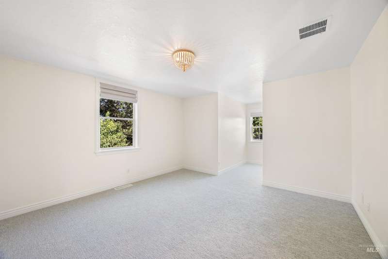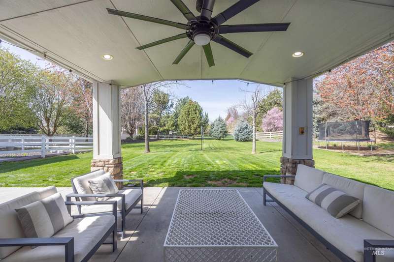 Stunning custom estate in The Colony. Set on a private, manicured 1 acre lot, this beautifully updated home makes a bold impression with a stunning, newly painted interior & exterior, new luxury carpet, wraparound porch, mature trees & lush landscaping. The Colony is known for estate living on 1-plus acre lots with beautiful trees, gorgeous homes, and exquisite surroundings near top schools, fine dining, and all that Eagle offers. Inside, enjoy soaring ceilings, designer fixtures, crisp white tones & LVP flooring throughout the first level. The great room features a sleek gas fireplace, custom built-ins & opens to a kitchen w/ luxury quartz countertops, island, and spacious dining. The main level primary suite offers a freestanding tub, dual vanities & walk in shower. Barn doors open to a front den. Upstairs, large bedrooms w/ charming dormers, walk in closets & private ensuite. Bonus room/office has private entrance. Main level guest suite ensures privacy. Covered back patio, large backyard, RV/boat parking!