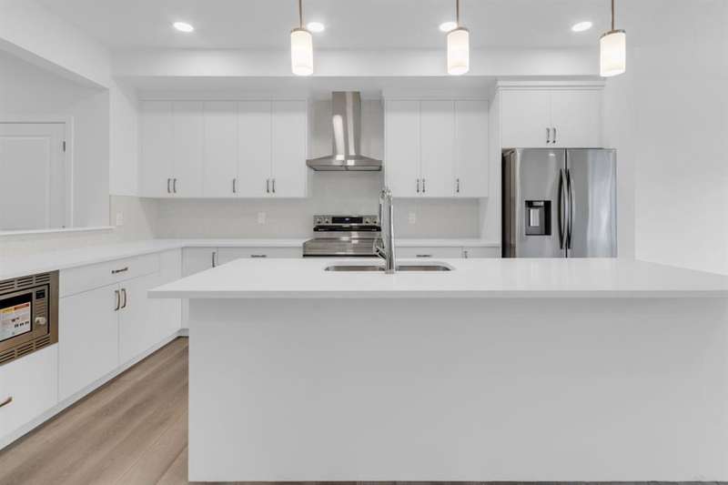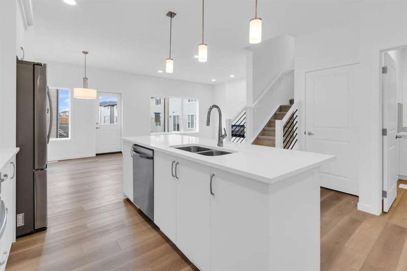 Nestled in the vibrant NE community of Savanna, where Stoney Trail, Deerfoot Trail & the Saddletown LRT Station connect residents to the rest of the city!. Enjoy the benefits of living in an established neighborhood that brings a plethora of amenities right to your doorstep, along with swift access to major highways. Welcome to the COLLINGWOOD – a BRAND-NEW home built by Excel homes. This amazing family home has it all!!! Location, location, location - facing the pond, pathway system & green spaces, literally across the street. This home offers 2241 sf & is delivered in an open plan, designed for families & entertaining. This impressive home offers FIVE BEDROOMS...FOUR of the bedrooms on the upper level with an ADDITIONAL bedroom and FULL BATH on the main floor. The kitchen is a show stopper with a large island, built in SS appliances & offers loads of gorgeous white cabinets and drawers for storage. In addition, the main floor boasts a spice / summer kitchen that offers storage cabinets, gas stove/hood fan and sink! You’ll notice the back of the house is almost entirely windows, flooding this home w/natural daylight. Exit to your WEST FACING backyard thru the oversized patio doors! The family room & dining area are connected & offer huge family / entertaining potential. 9’ ceilings & gorgeous luxury vinyl plank flooring make this space airy & bright. Upstairs you’ll find FOUR spacious bedrooms! The primary suite is separated from the 3 others by a huge bonus room that offers vaulted ceilings. The primary suite also features an amazing spa like ensuite w/dual sinks, beautiful tile skirted soaker tub & separate shower. Your laundry room & family bathroom complete this level. THE BASEMENT has a PRIVATE / SEPARATE side entry that leads to the lower level that is roughed in for a future 2 bedroom suite (subject to city permits and approvals). Whether you're a growing family, savvy investor, or multi-generational household, this is the home you've been waiting for. With over 35 years of experience, over 15,000 homes built & 75 awards for design & industry excellence, Excel Homes is a wise choice!