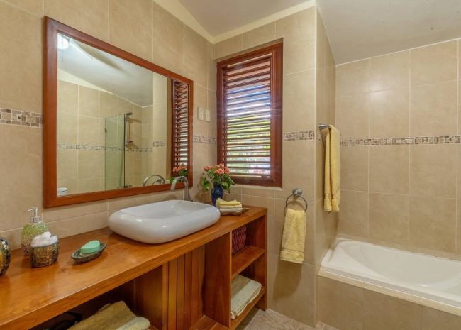 The villa has a wonderful landscaped garden and a two-level pool area with a guest cottage at the bottom of the grounds. With 4 bedrooms and 5 bathrooms, the villa is quite spacious and can entertain a nice amount of friends and visitors. One bedroom is designed as a large fully equipped gymnasium and the other one is in the guest cottage in the garden.