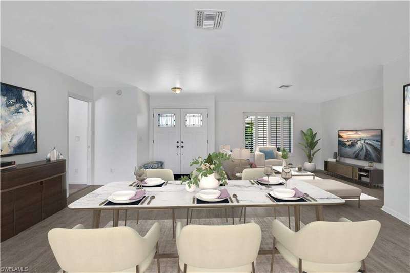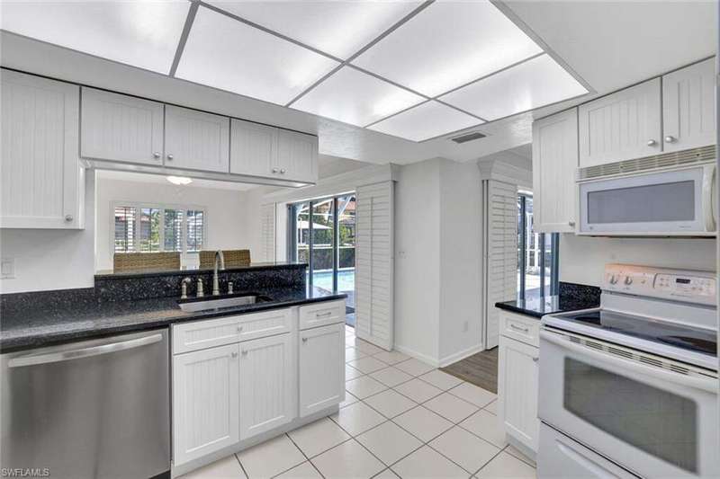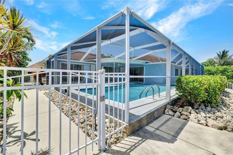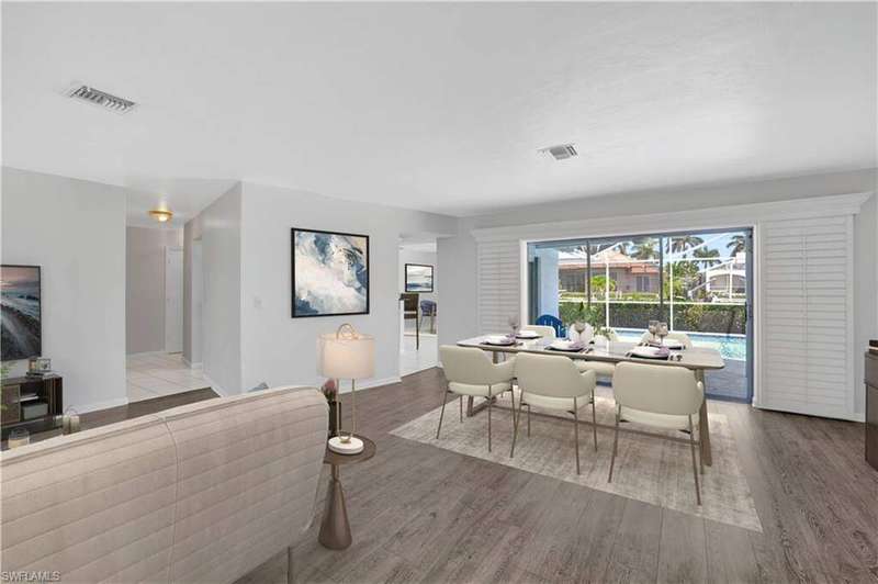 Exceptional value on this beautifully maintained waterfront pool home located on a quiet cul-de-sac with desirable southeast exposure for all-day natural light. This 3-bedroom, 2-bath home offers a bright and open layout with plantation shutters, tile plank and carpet flooring, and a welcoming double-door entry. The kitchen features white cabinets, granite countertops, stainless steel appliances, and a pantry. The spacious primary suite includes private outdoor access, while two guest bedrooms share a full bath. Enjoy outdoor living on the screened lanai (2019) overlooking the retiled and resurfaced pool (2017). Additional upgrades include new HVAC (2023), water heater (2023), roof (2017), and garage door (2018). A new seawall is scheduled for 2025 or 2026. The low-maintenance yard is a tropical retreat with a mature avocado tree, plumeria, and hurricane shutters for added protection. This move-in ready home offers comfort, peace of mind, and true Florida living-ideal for full-time or seasonal enjoyment.